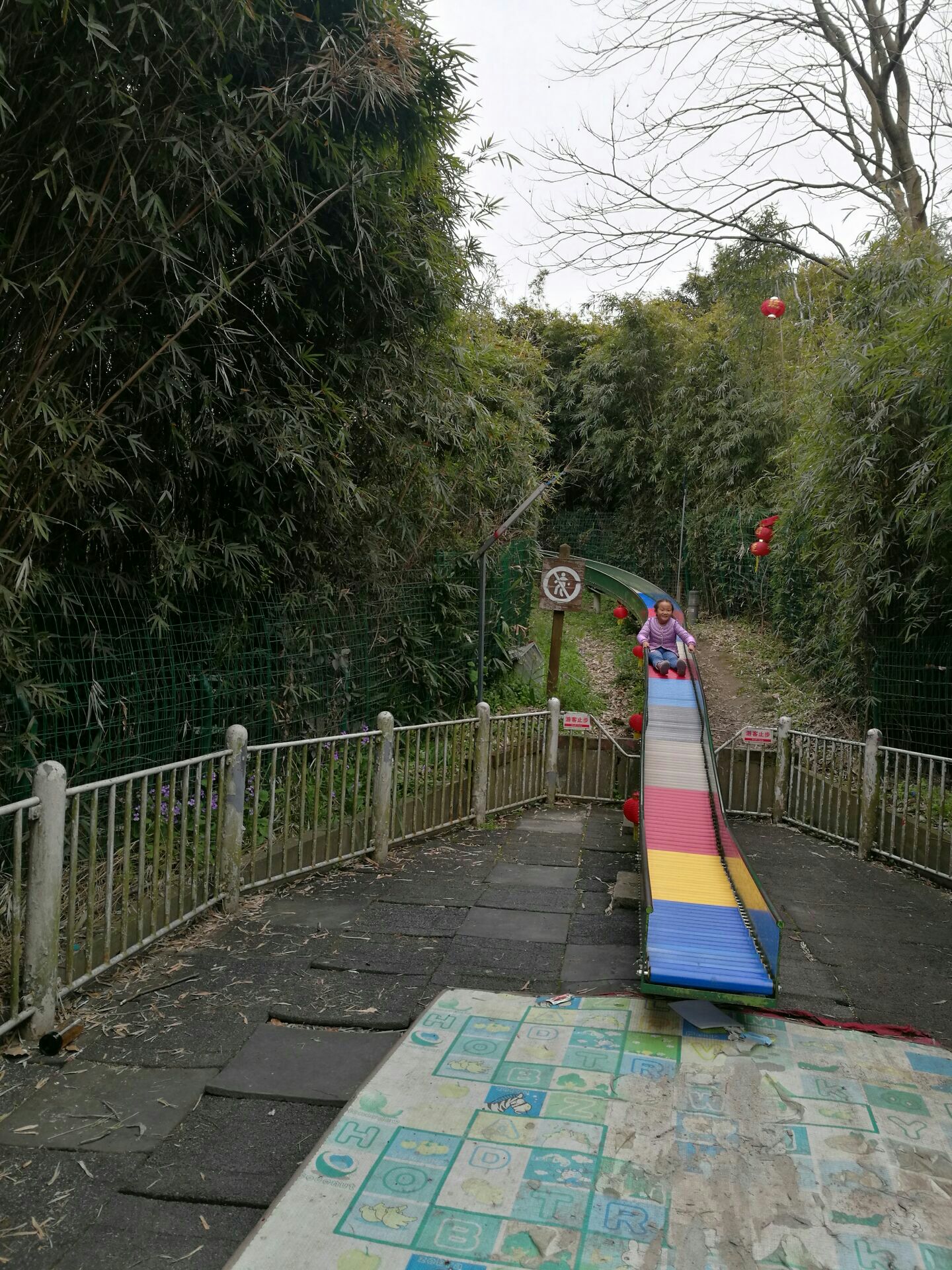 网友2019-04-03五彩滑道位于闵行体育公园的翡翠山上,是最近热门的网红景点,需要自行爬上山坡并购票乘坐,十元一位...五彩滑道位于闵行体育公园的翡翠山上,是最近热门的网红景点,需要自行爬上山坡并购票乘坐,十元一位无任何优惠。整个坡度并不大,宽度也很窄,速度完全可控,所以小朋友可以放心玩乐,滚一滚,酸痛麻。