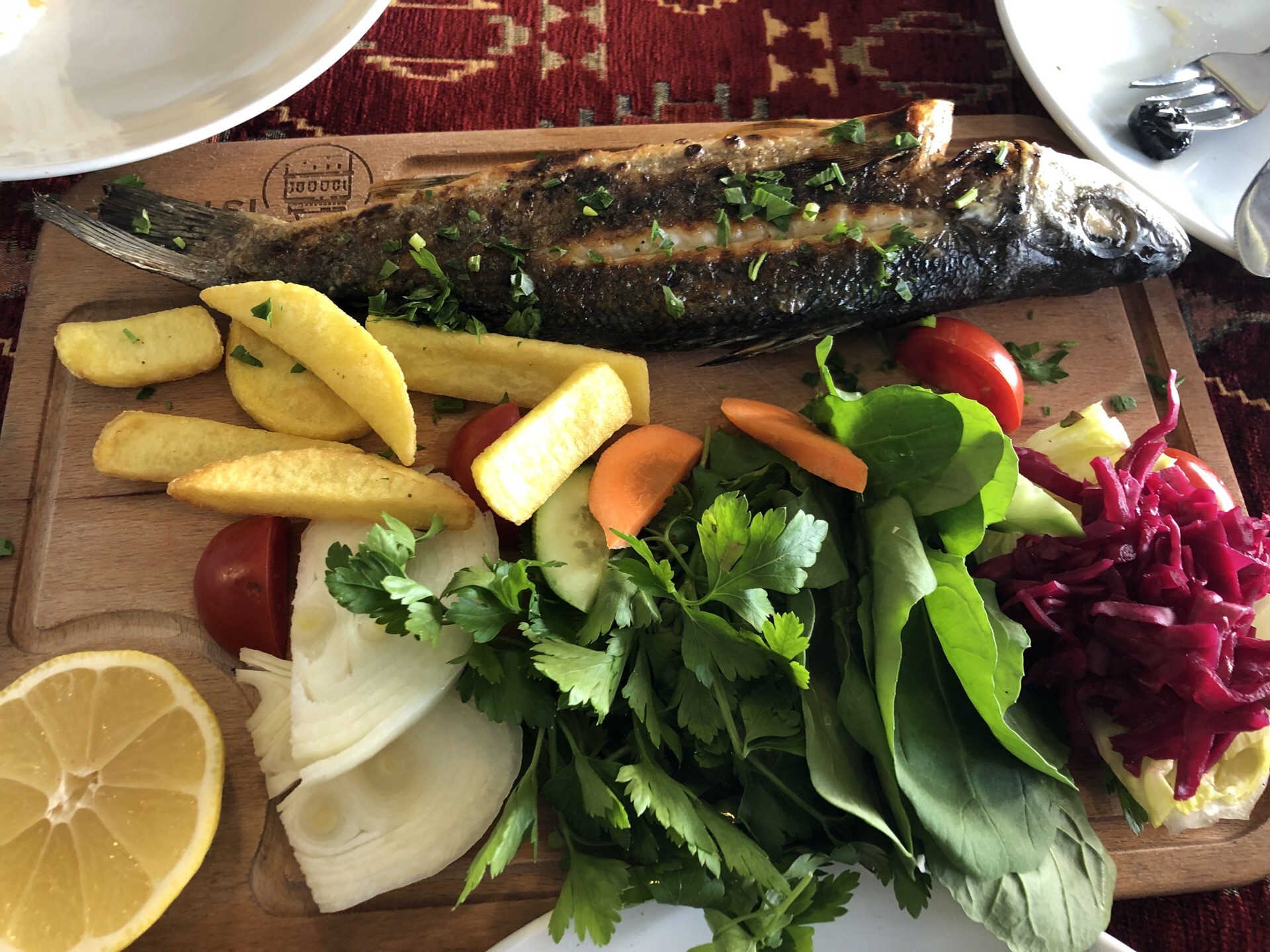为这家餐厅疯狂打call 这家餐厅地理位置相当优越,离蓝色清真寺还有大教堂非常近,步行三四分钟这家餐厅真的满足了我的中国胃,比较符合中国人的饮食习惯,来之前我还担心土耳其买什么好吃的,结果随便走家这家餐厅就意外的好吃 瓦罐感觉是桌桌必点,制作过程相当炫酷,羊肉软烂可口,但是菜量不大,老板说够两人吃,我觉得也就一个人的量 奶酪羊肉也相当不错,稍微有些腻 烤鱼烤的外酥里嫩,一种带酱汁另外一种不带的我们选择的不带酱汁的也很好吃,还是唯一的缺点就是量比较小 土耳其物价不高,我们四个人吃了350里拉 最后老板人超好,还送了我们红茶和小点心