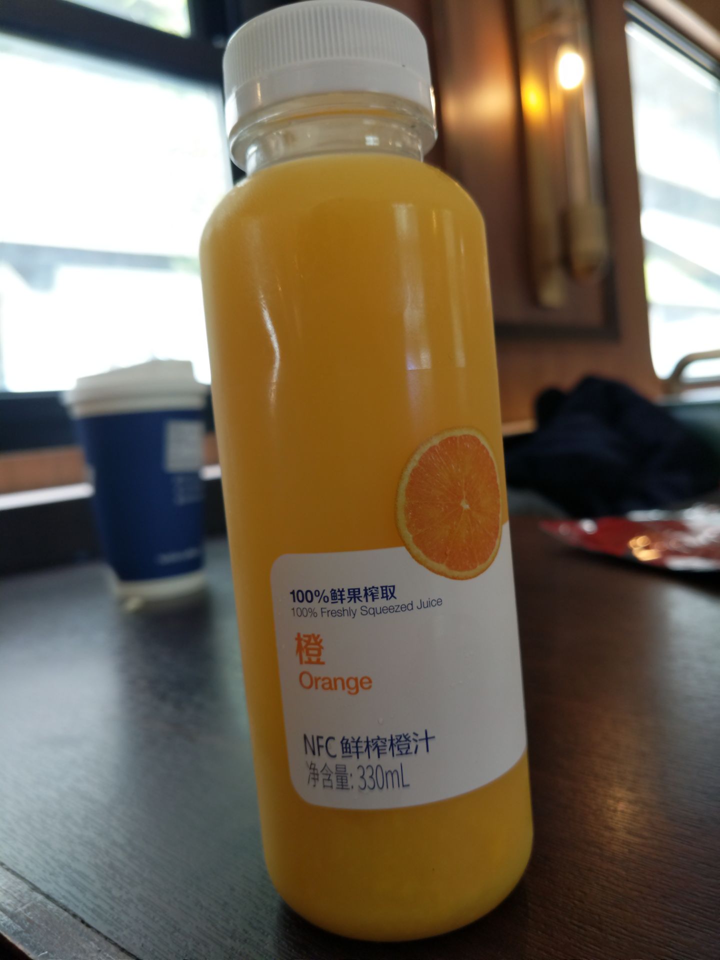 ...为要写稿子,买了日常我最喜欢的NFC橙汁,用优惠券后果汁价格实惠的,口感纯正的原汁,非浓缩还原