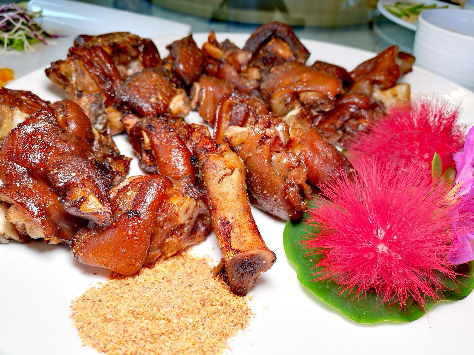 闲时蜗居在朋友圈刷屏有很长一段时间了, 我还是头一回来,位置有些隐蔽,跟着度娘的指引,还是很容易就找到了。 这是一个水上花园式餐厅,餐厅设有卡座,更多的是花园包房,就餐环境雅致,私密性极佳,最适合宴请和中小型聚会。 菜品以滇菜为主,甲鱼炖鸡、雕梅小排、烧猪蹄、芝士烤红薯、生焖鲈鱼、云腿破酥包等味道都很好!