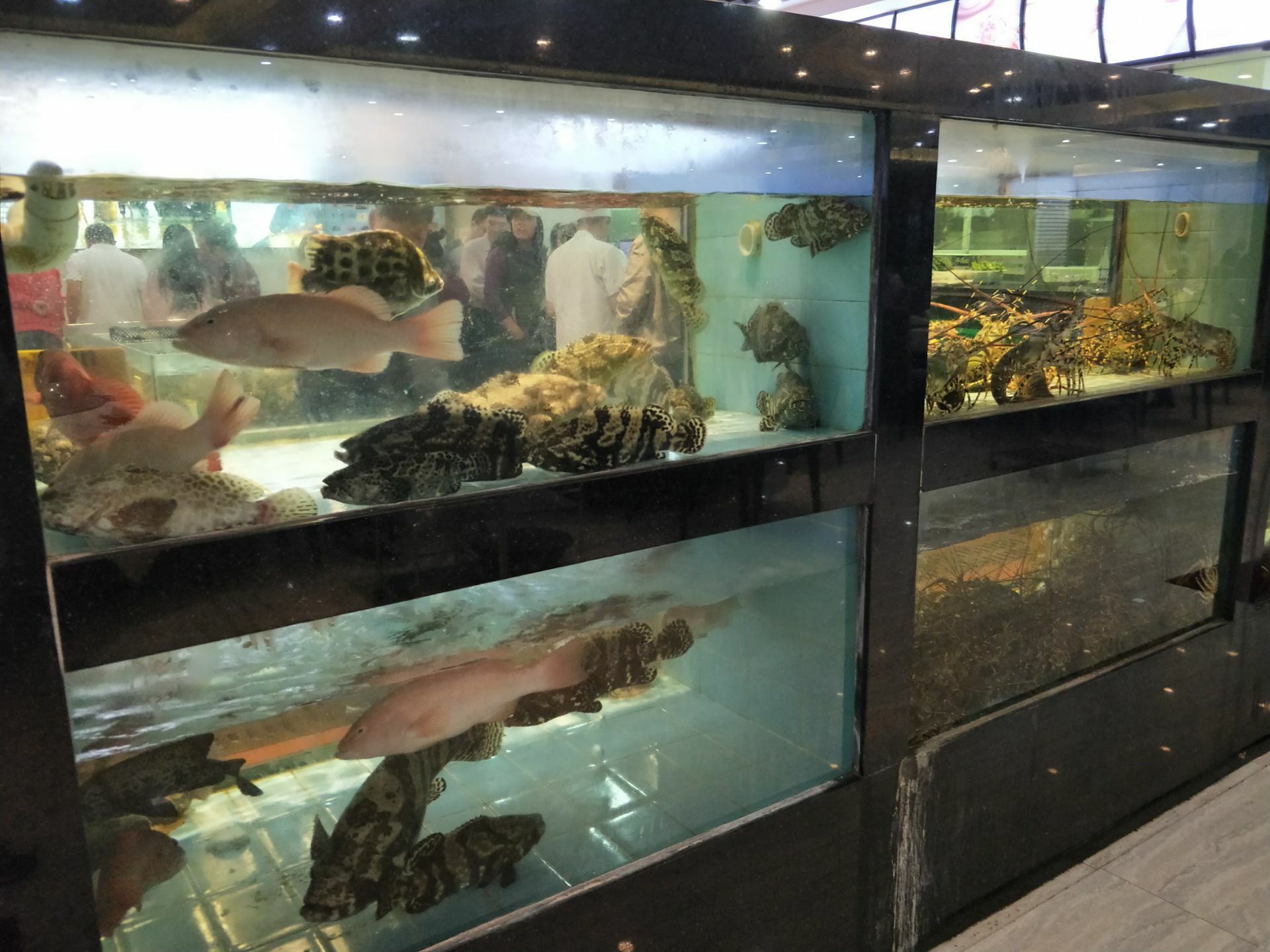 越百海海鲜蒸锅在湛江有好几家分店,很受欢迎,这家海湾店位于金沙湾附近,在西泰润国际大酒店3楼。店面挺大的,环境比较舒服。 这里当然是以吃蒸海鲜为主,食客要到海鲜区去现点现称,海鲜区生猛海鲜琳琅满目,龙趸、东星斑,还有鲍鱼龙虾,各种螃蟹贝类等,很丰富。 海鲜价格不算特别便宜,但是的确很新鲜。 除了海鲜,这里还可以点点心,并且有不少传统粤菜,例如烧鸭,白切鸡等等,感觉都不错。
