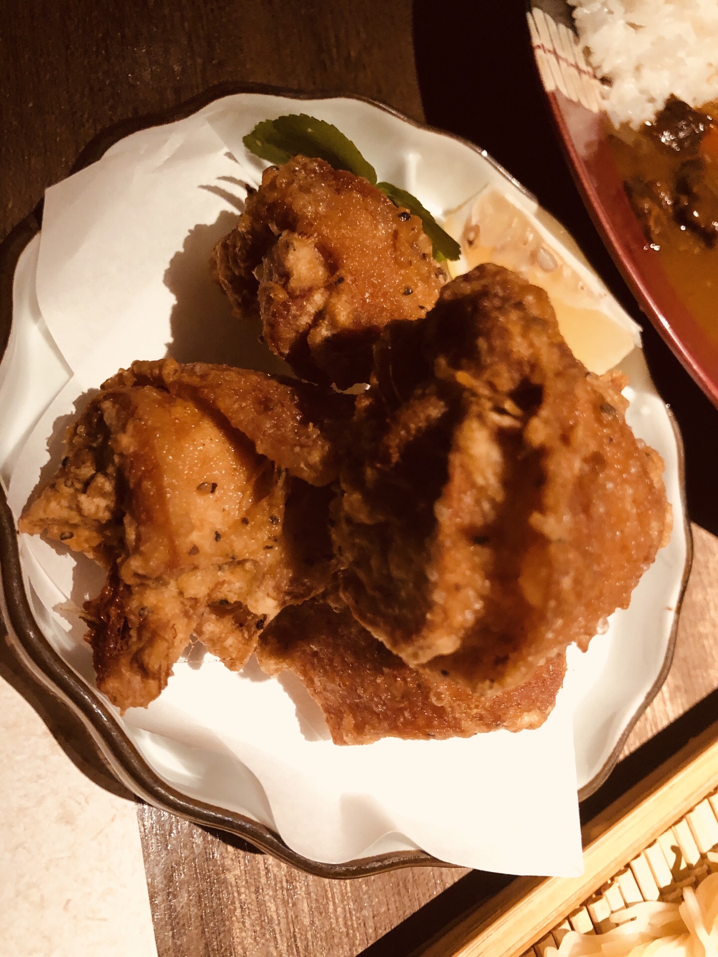 然后有榻榻米可以选择脱鞋坐上去。 工作日的中午要早点去, 我们去的时候人不是很多, 走的时候就坐的挺满了。 服务态度很好, 灯光昏暗风, 让人感觉比较私密舒适。 上菜的速度挺快的。 我们点了五个菜, 吃的很满足。 食材都挺新鲜的, 味道老fat她也是相当满意, 最后也是吃的饱饱。 「炸鸡块」炸鸡块觉得很赞, 比什么谁家的妈妈的韩国炸鸡什么好吃了不止几个层次。