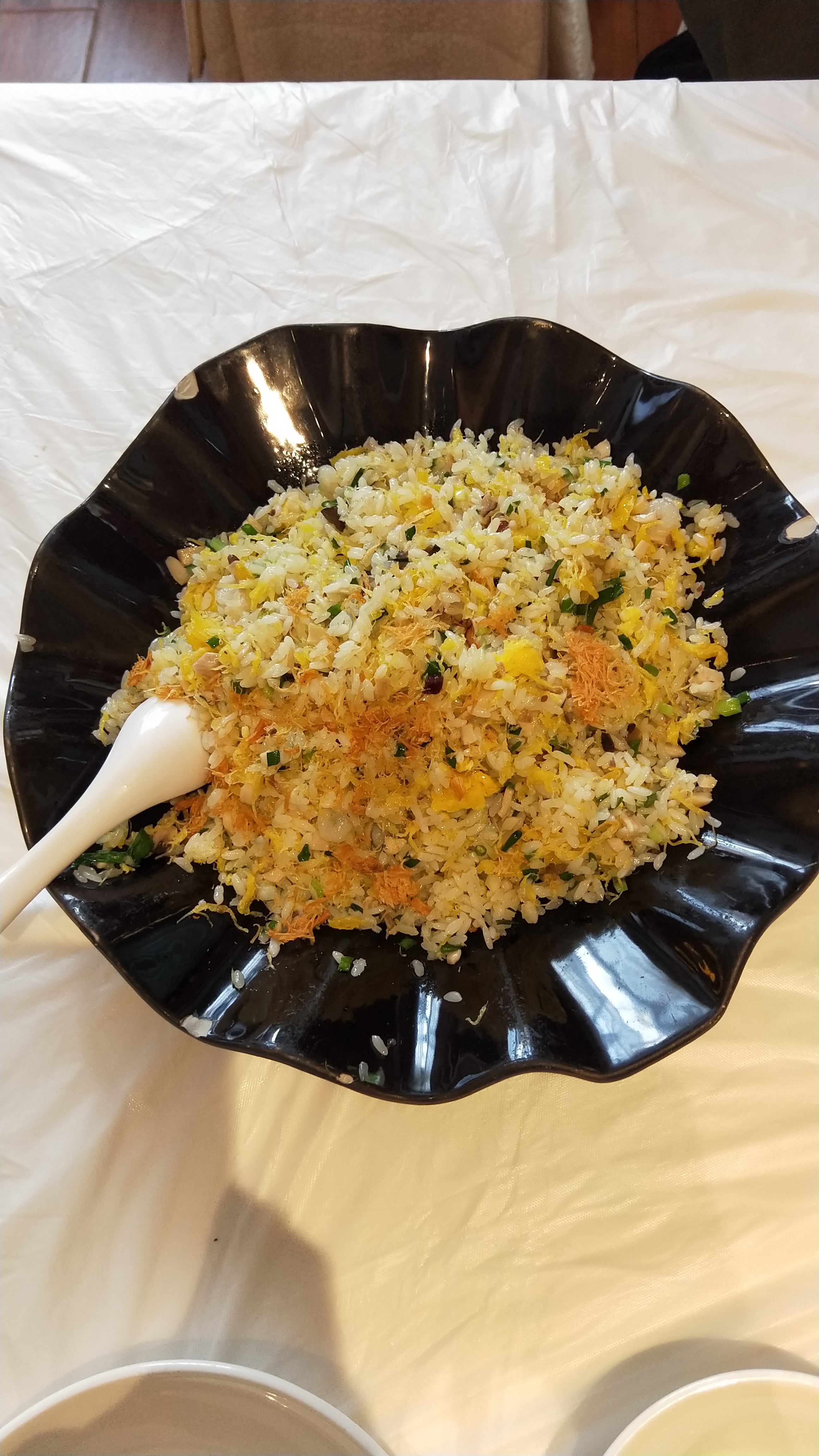来扬州必须吃狮子头啊,中午去瘦西湖游玩,在扬州大学校区内的这家扬州狮子楼快1点了,还排队排到餐厅外,等了20多分钟吧,到了我们,因为两个人用餐,点了扬州炒饭,狮子头,鳝鱼还有文思豆腐羹,淮扬炒软兜,每道菜都有精品,豆腐羹豆腐细如发丝,刀功了得。鳝鱼比北方的响油鳝糊好吃,芡汁勾的刚刚好,微甜。扬州炒饭里边的料太丰富了,米粒粒粒沾蛋黄,色香味,俱全。狮子头肥而不腻,香气扑鼻。要是人多就可以多点几道菜了,留几个下次再吃