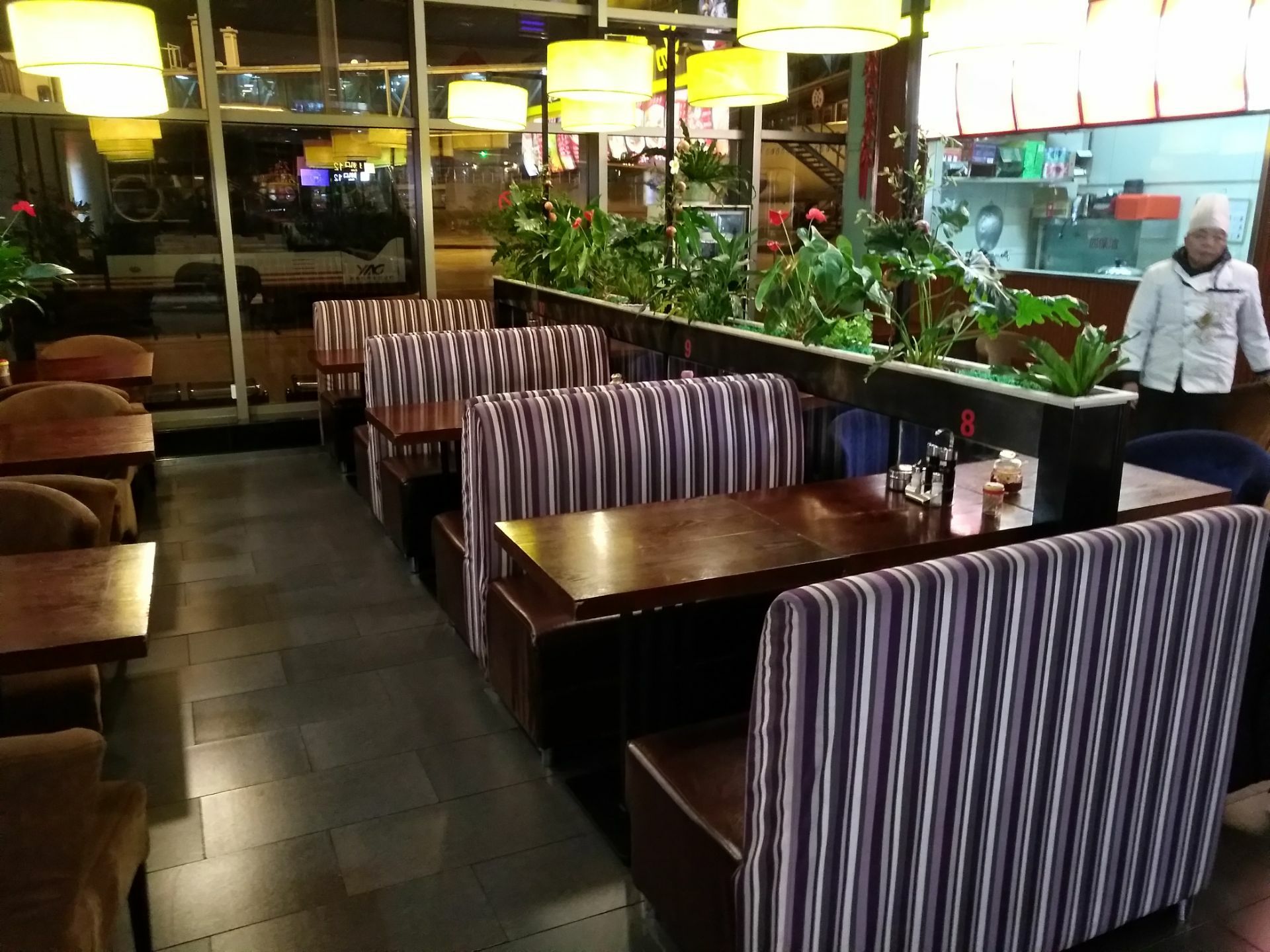 餐厅在机场候机厅,开放式就餐环境,营业时间开门比较早,满足旅客的就餐时间需求餐厅在机场候机厅,开放式就餐环境,营业时间开门比较早,满足旅客的就餐时间需求。饭菜种类比较多,以快餐为主,有套餐米饭,面条,米粉,包子等。