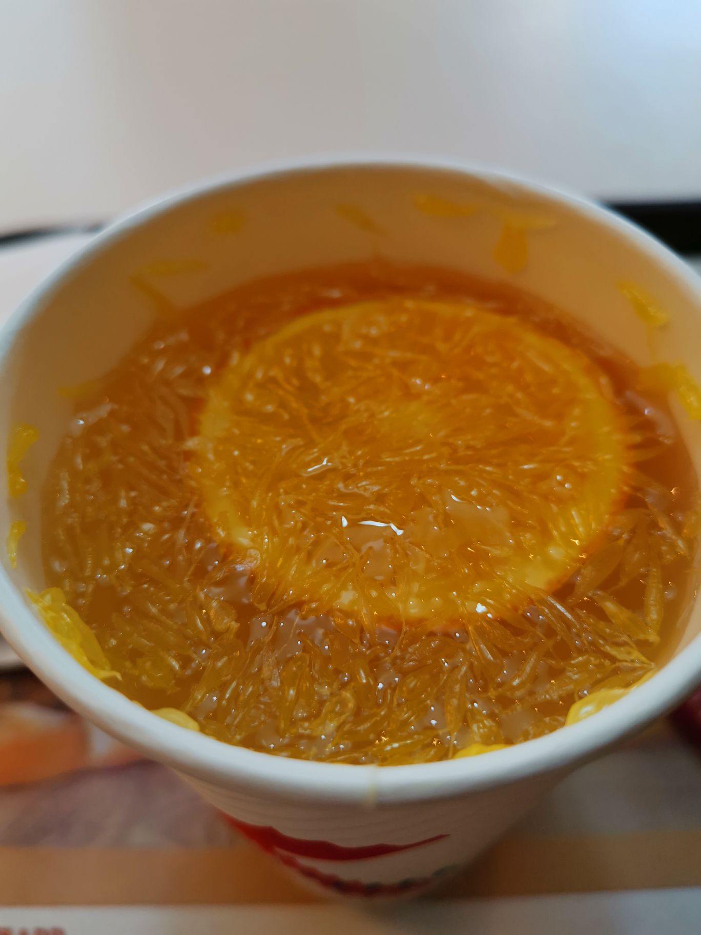 蛋挞还是一如既往的香甜,再搭配一杯类似果粒橙的茶饮,最后打包一大盒黄金鸡块,满足