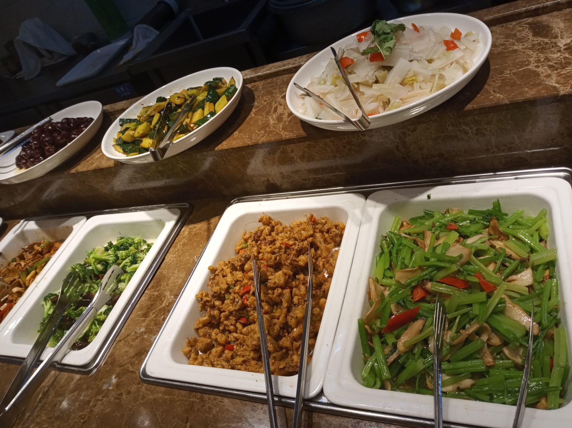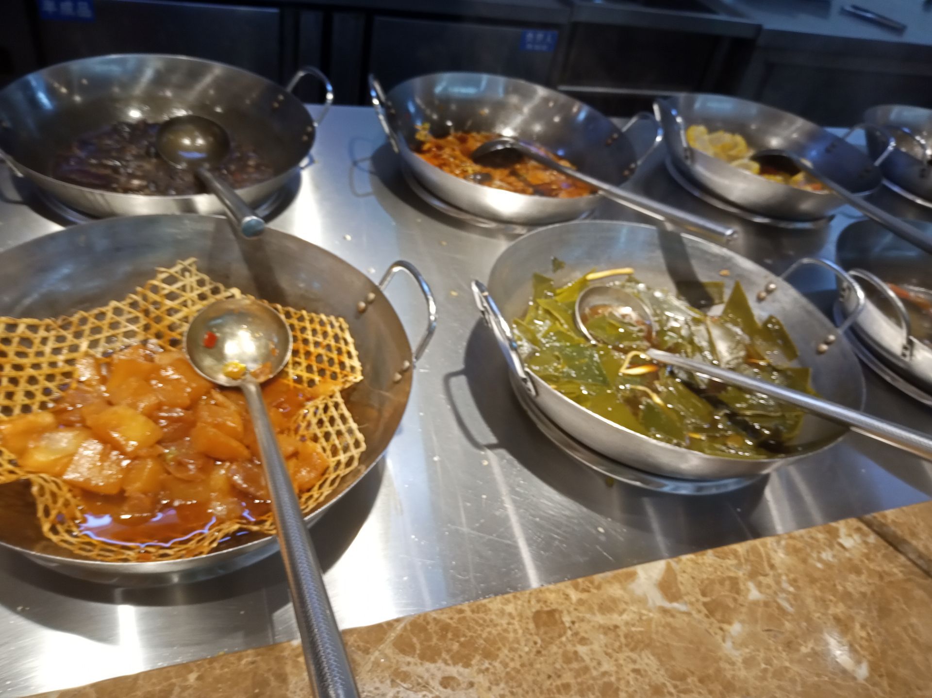 这家店的地段还是不错的,店在路边,能一眼看到。里面东西非常多,居然还有汉堡包,不过我没吃。终于遇到糖醋土豆,一开始还以为是糖醋排骨,但是这家店是素菜店呀,试试看结果发现是土豆,味道还是很不错的。包子之类的糕点也不少。