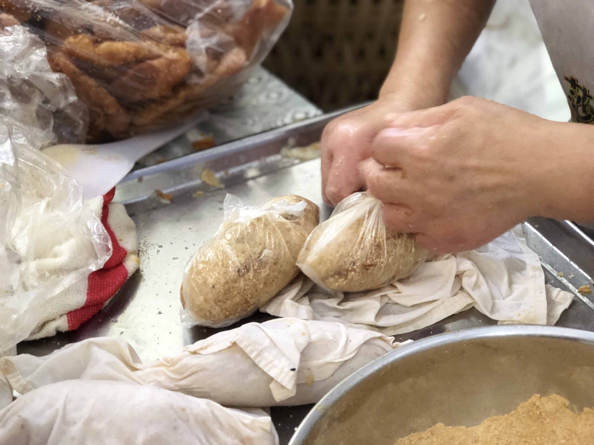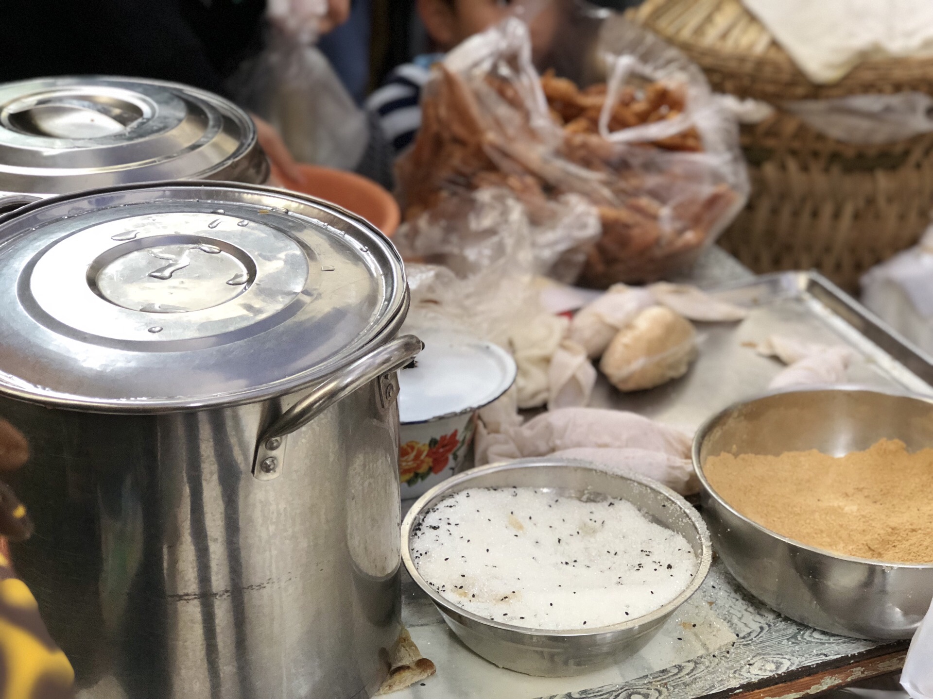 一座城,一种情怀 我的重庆站,因为你而觉得温暖 和父母带着葡萄走在不熟悉的街口 感谢热情的重庆人民给予的帮助 感谢树哥和小白,小胖,小雨给我的美食指导 春森路的糯米团,因为阿姨的坚持,全年只休息两天。阿姨人很好,葡萄饿的不的了的时候,我没有选择掐位让前面的食客让我们一个,毕竟不想教育葡萄有任何的特殊待遇。 买了一碗八宝粥安抚葡萄 八宝粥2.5一碗 价格真心便宜,粥自己舀 粥熬的很稠,不是外面那种,是真正熬了很长时间 爸爸也在夸阿姨的八宝粥用的米好,才能熬制出这么好吃的粥。不用怀疑葡萄吃了大半碗。 糯米团,终于在我排队1个小时后等到了 阿姨在制作过程中,看到葡萄浮躁的想吃后,两次给葡萄弄了没有黄豆面的糯米蘸白糖,我的天 葡萄的待遇太好了! 阿姨制作糯米团的速度非常快 舀糯米在纱布上,放入榨的很干的油田,白糖,在包裹糯米团,你会惊讶的发现,制作过程真的超级简单,我甚至有点怀疑这种是不是真的好吃! 结果咬了一口发现我错了! 平凡的食材,这样的搭配居然好好吃! 糯米本身的粘性很高,柔韧度和食材的贴合度很强,里面的油田脆的很合适,外面的黄豆面细腻化渣,进入口中不会觉得很粗,黄豆味清香。 一口下去,已经感觉有点饱腹感了 其实也有人问阿姨为什么你做的比别家的好吃 阿姨给的结论,盖盖很喜欢:良心 我想春森变成网红店,真心不是过度营销和价格很便宜,真正走红的原因是阿姨十几年不变的初心。 良心经营,善待他人!