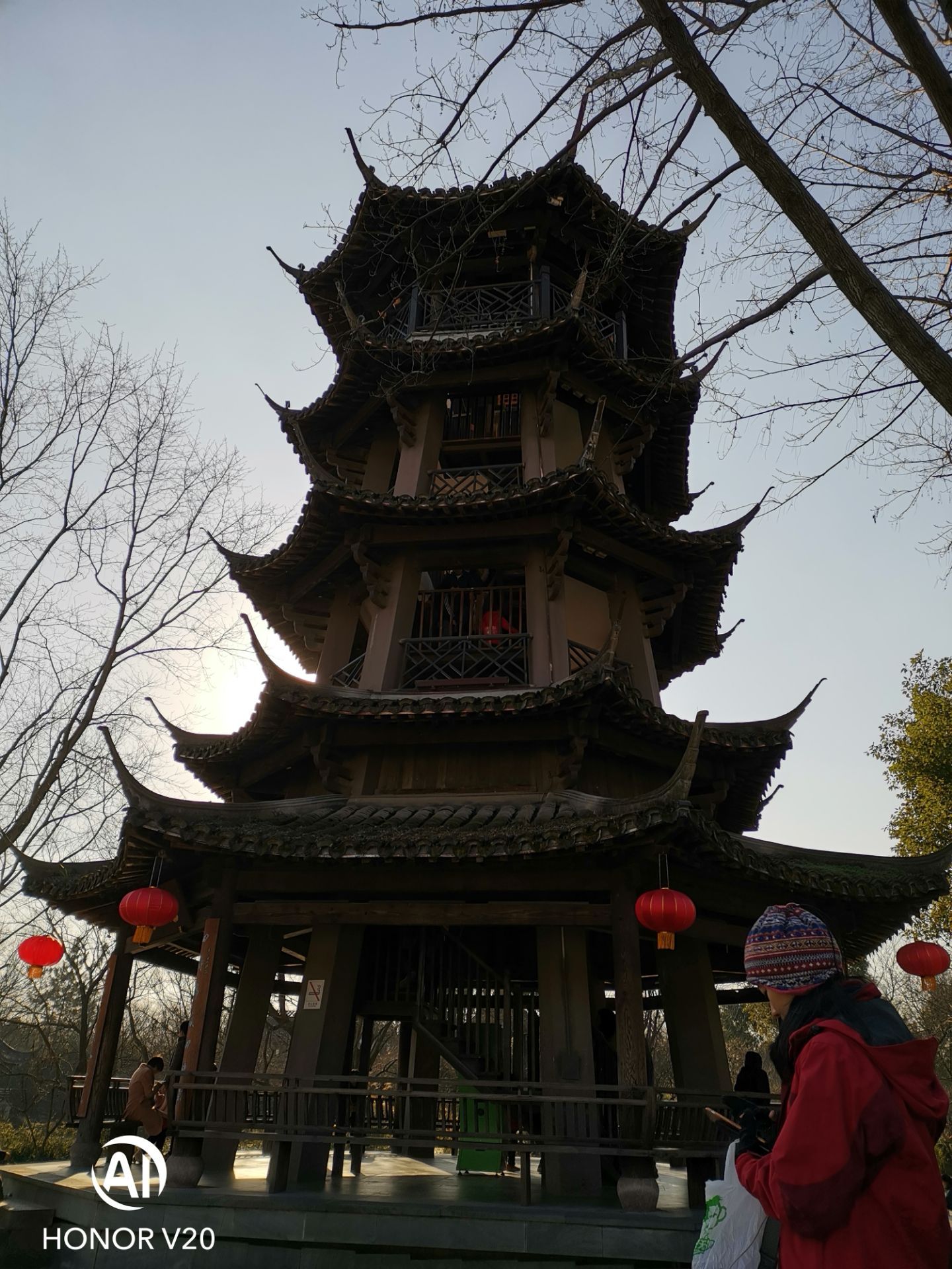 西溪湿地里面,登上塔顶可以看到湿地全景。 从一层开始,越往上走,楼梯越窄,最后只能容纳我的半个身位。。。可能是比较胖吧!