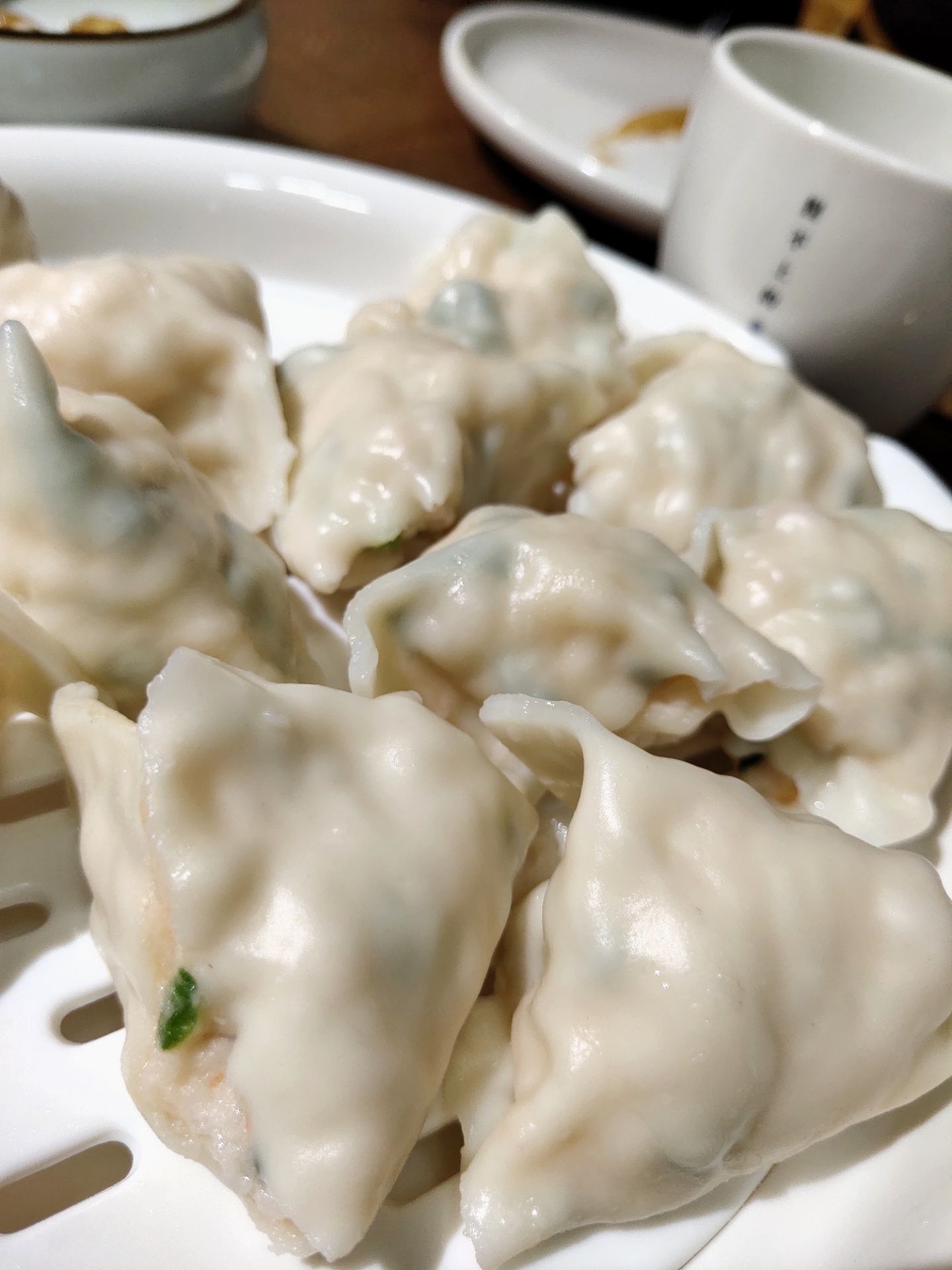 『王慧洁开口笑海鲜水饺』 ⭐新装修后首次过来,迎面是明亮通透的包饺子间明档,走过路过都被吸引看上一眼。 ⭐小份饺子每份12个,大都20几块钱一份,皮薄馅足,招牌的鲜虾开口笑老妈最爱,我则点了应季的茴香猪肉[奸笑] ⭐菜品里面的蟹黄豆花很鸡肋,不要点了,爽口点儿的点个大拌菜,爱吃肉的点份脊骨,锅包肉好久没吃不知道还正经不正经啦[吐舌] ⭐一家人简单吃个午饭,人均5、60就搞定啦 ⭐[服务]特别好!
