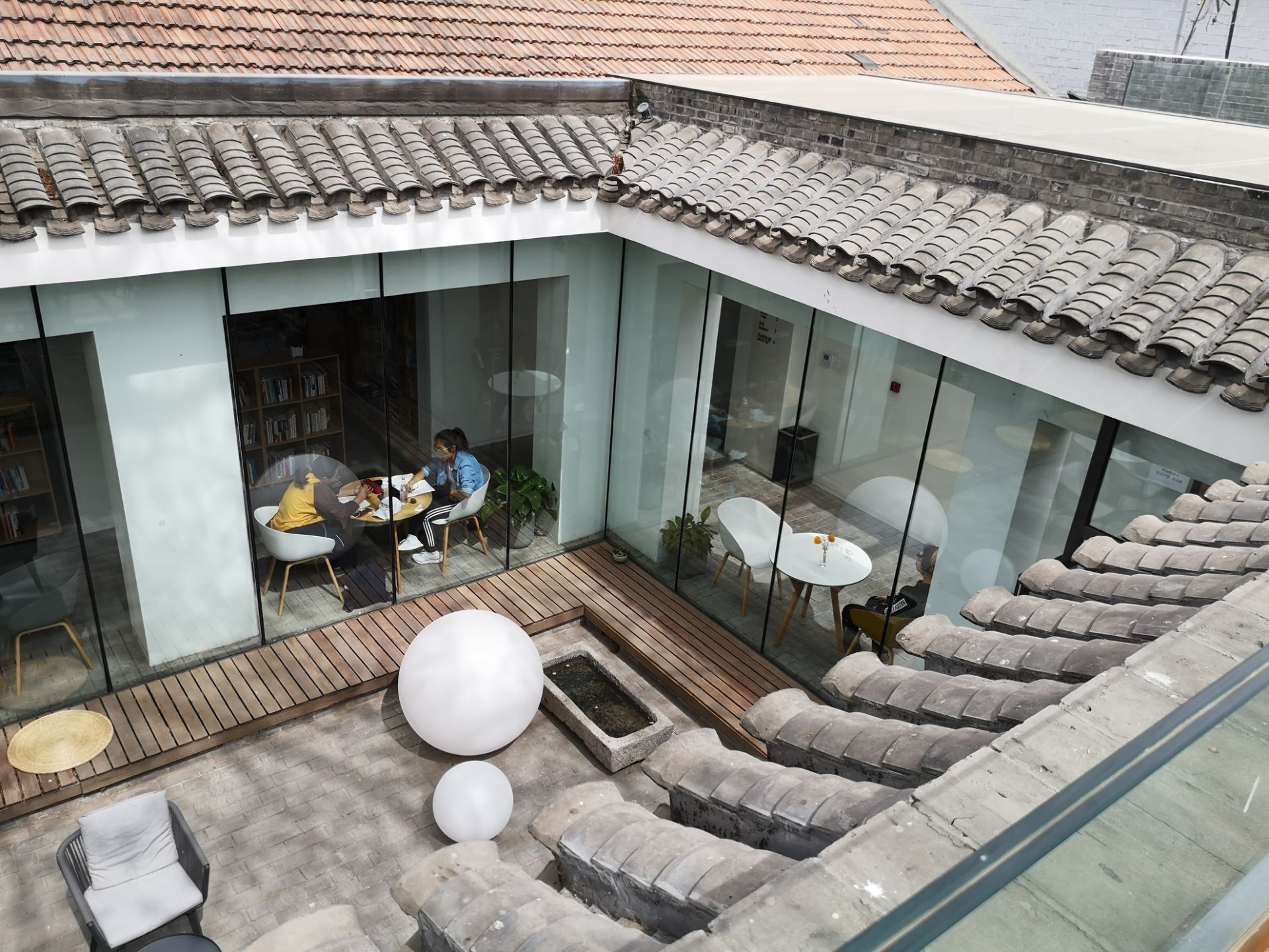 在收藏夹里收藏了很久的一家店,卖点是可以上屋顶拍照。 然而,当我中午骑着自行车,拔草这家心心念念良久的店,却发现,屋顶并不给爬。 一路骑行在胡同中,感觉很好。 协作胡同40号,绝对闹中取静了。 他们家场地很大,分了很多空间有的地方只提供给预订者。 服务员都很友善很礼貌。 我想进去先看一看坐在哪里合适,也没人催着我点单消费。 直奔两楼,上面有不少人,更多的是在拍照的。 虽然不能上屋顶,但是以屋顶为背景,拍出来的照片还是很美的。