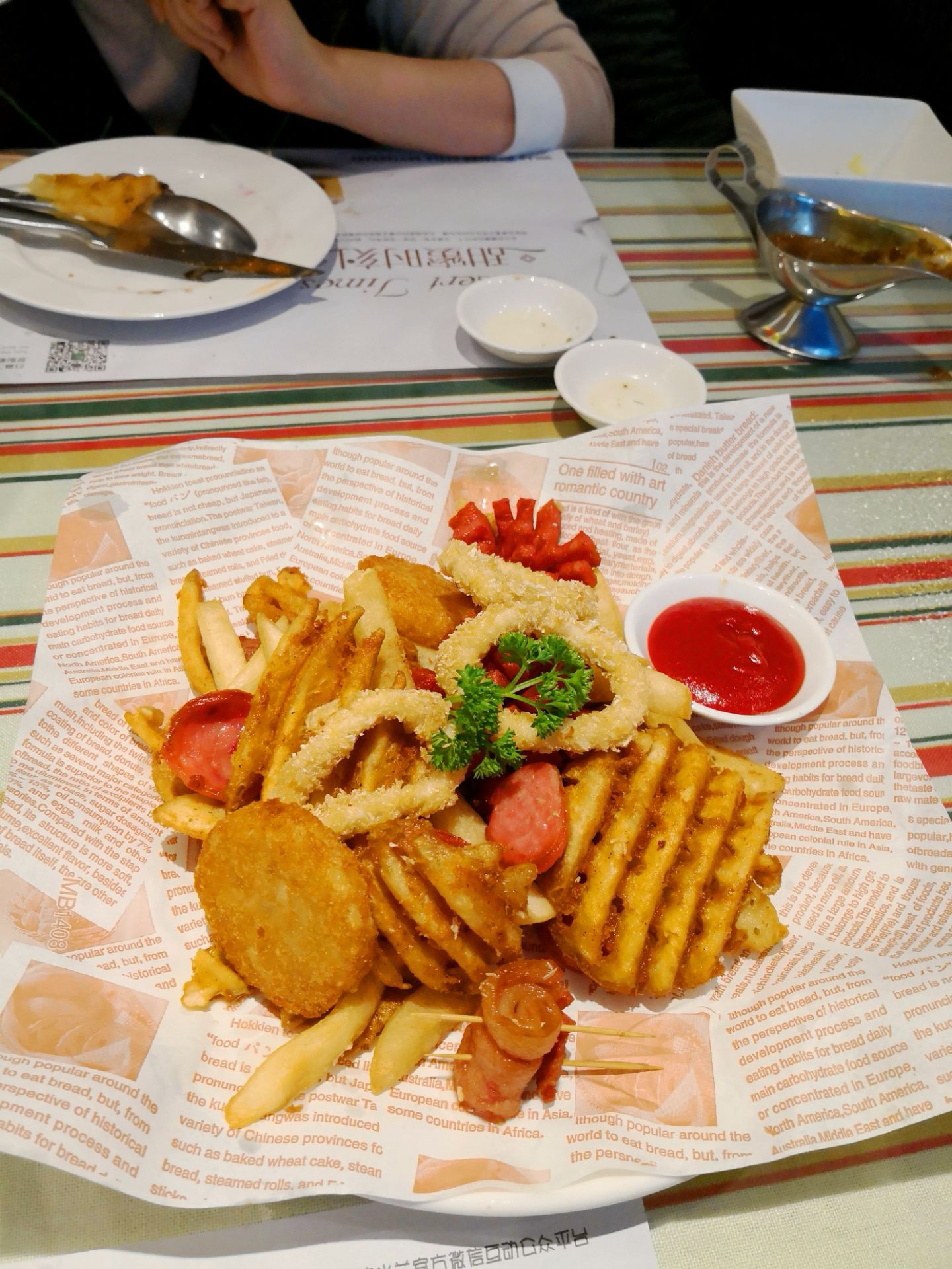 环境非常好的一家西餐厅,主要闻名于烤面包,pizza和牛排,面点类做的真是一绝,劲道有味道,奶香和甜度刚刚好,牛排类稍逊色,主要是肉质和一流牛排店有差距,炸虾什么的就完全不推荐点啦,但是好在性价比非常高。