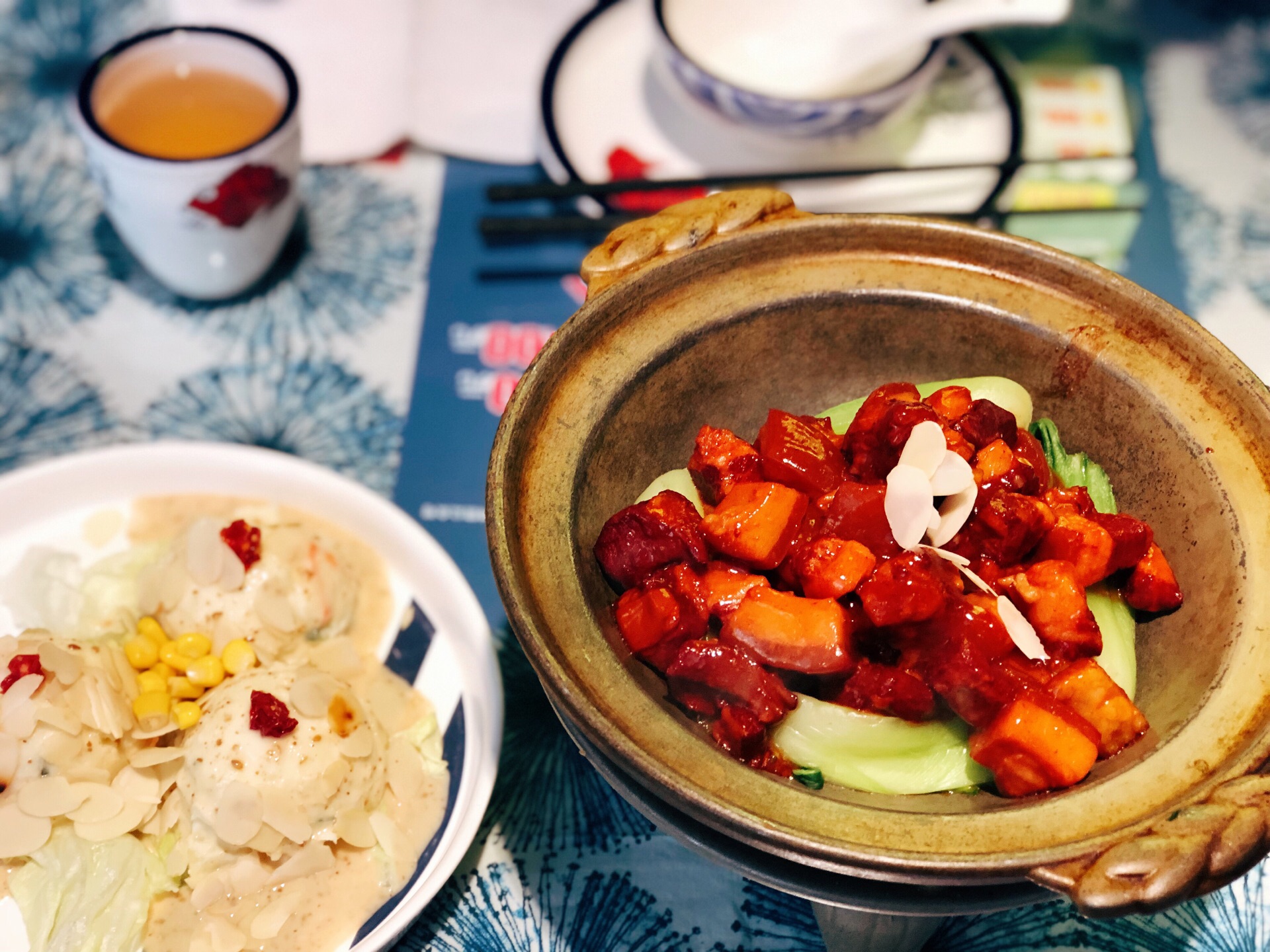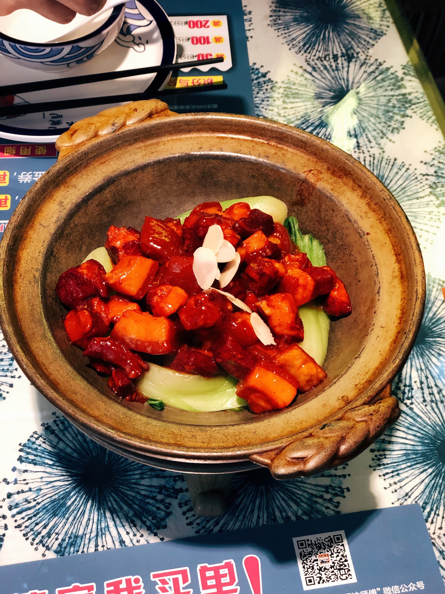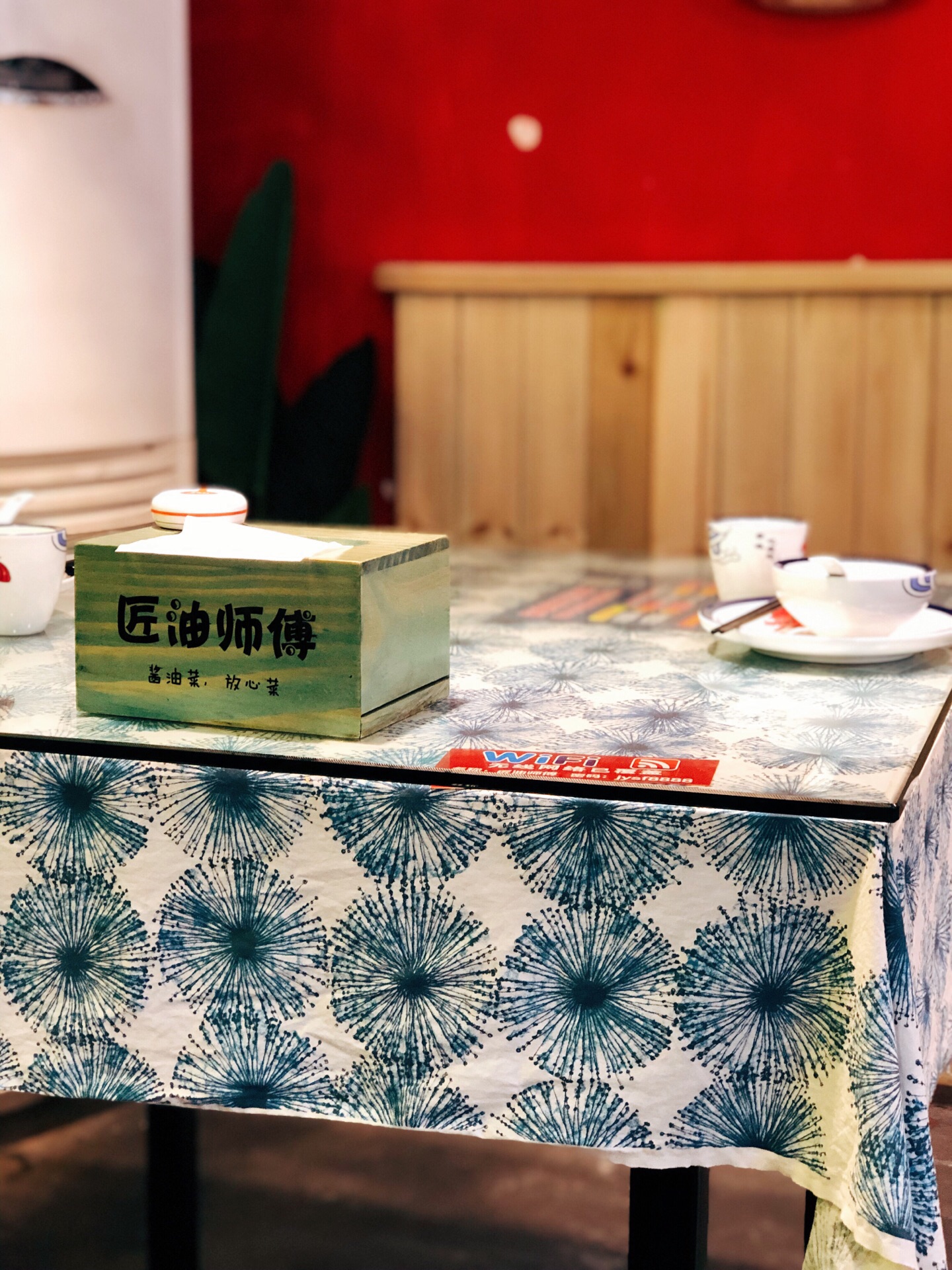 今日打卡匠油师傅,节假日中午生意还有点好 他家是自助点餐,微信扫码,加菜也是扫码加菜 很方便 服务有点跟不上,反正倒水自理 感觉店员的作用不是很大,就是上菜所需 服务一般 「土豆泥沙拉」 我看了菜单就很想点的,但是不怎么好吃 首先沙拉酱不多,土豆沙拉本身不细滑,还能吃到没有打碎的土豆,口感受了影响 「酱油红烧肉」 味道还不错,不甜腻,肥肉不油腻 「豆腐脑花」 我个人很喜欢的一道菜,可能是因为是脑花的忠实粉丝,所以这道菜我肯定会点。 将脑花和豆腐用麻婆豆腐的制作工艺制作 脑花没有腥味,但是脑花口感稍微有点老 豆腐也是。 「腊味双拼」 香肠口感比较香,腊肉不肥腻 他家的菜品味道中规中矩,部分菜品还有改进的空间,还是可以二刷的店儿。 适合家庭聚餐,环境有点小花园的感觉。