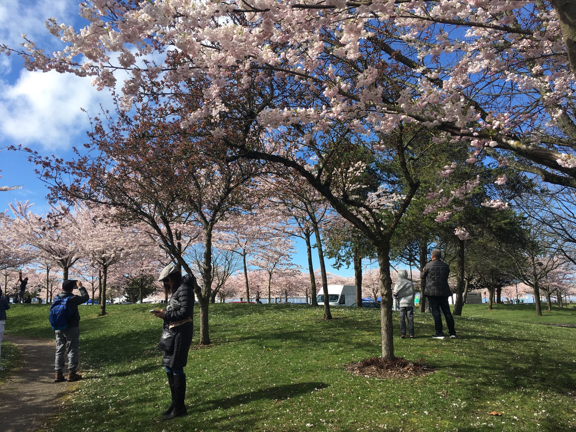 灿烂的樱花、辽阔的海面、公园中的日式庭园、几辆提供日本食品的food truck……温煦和谐