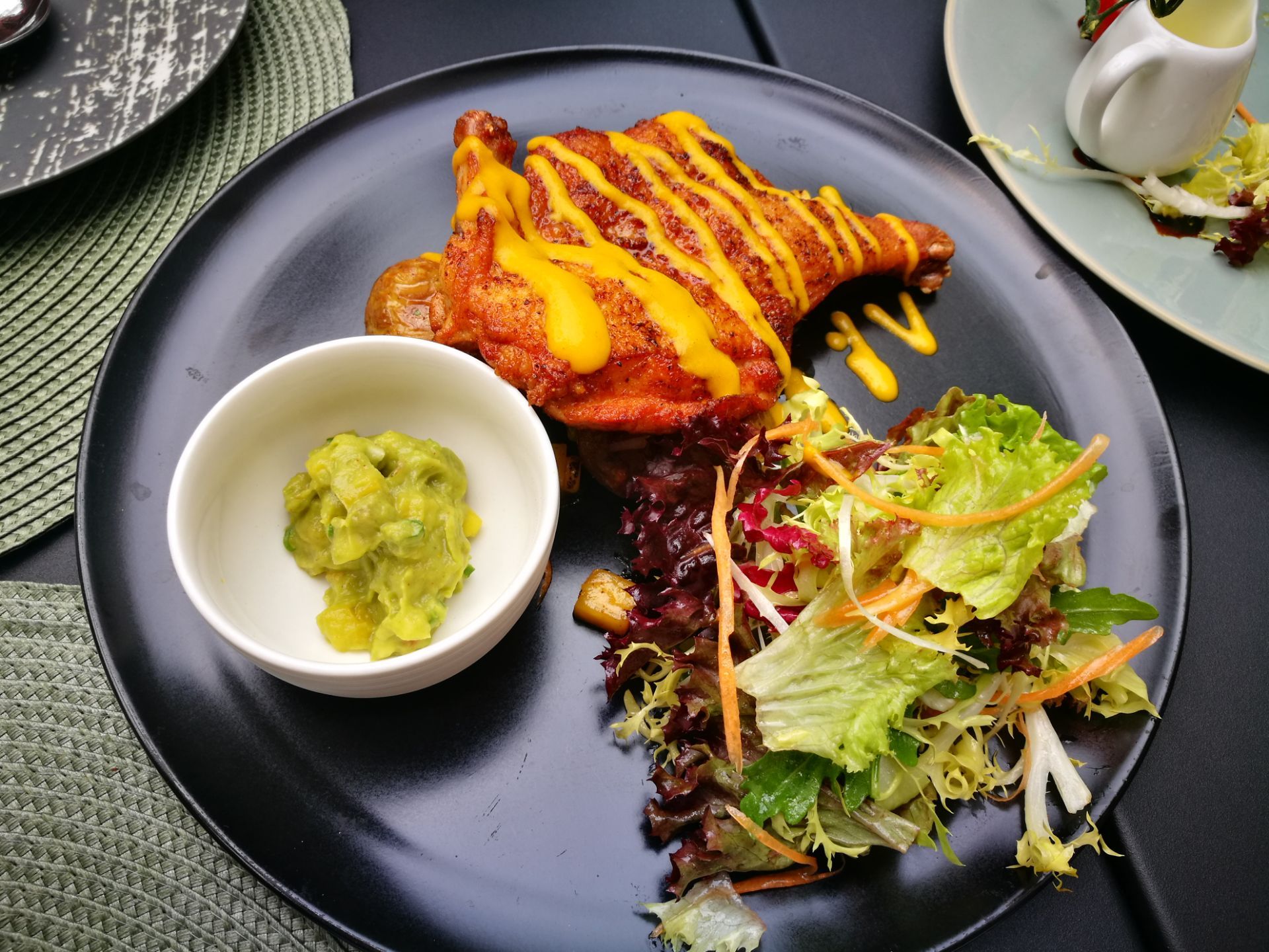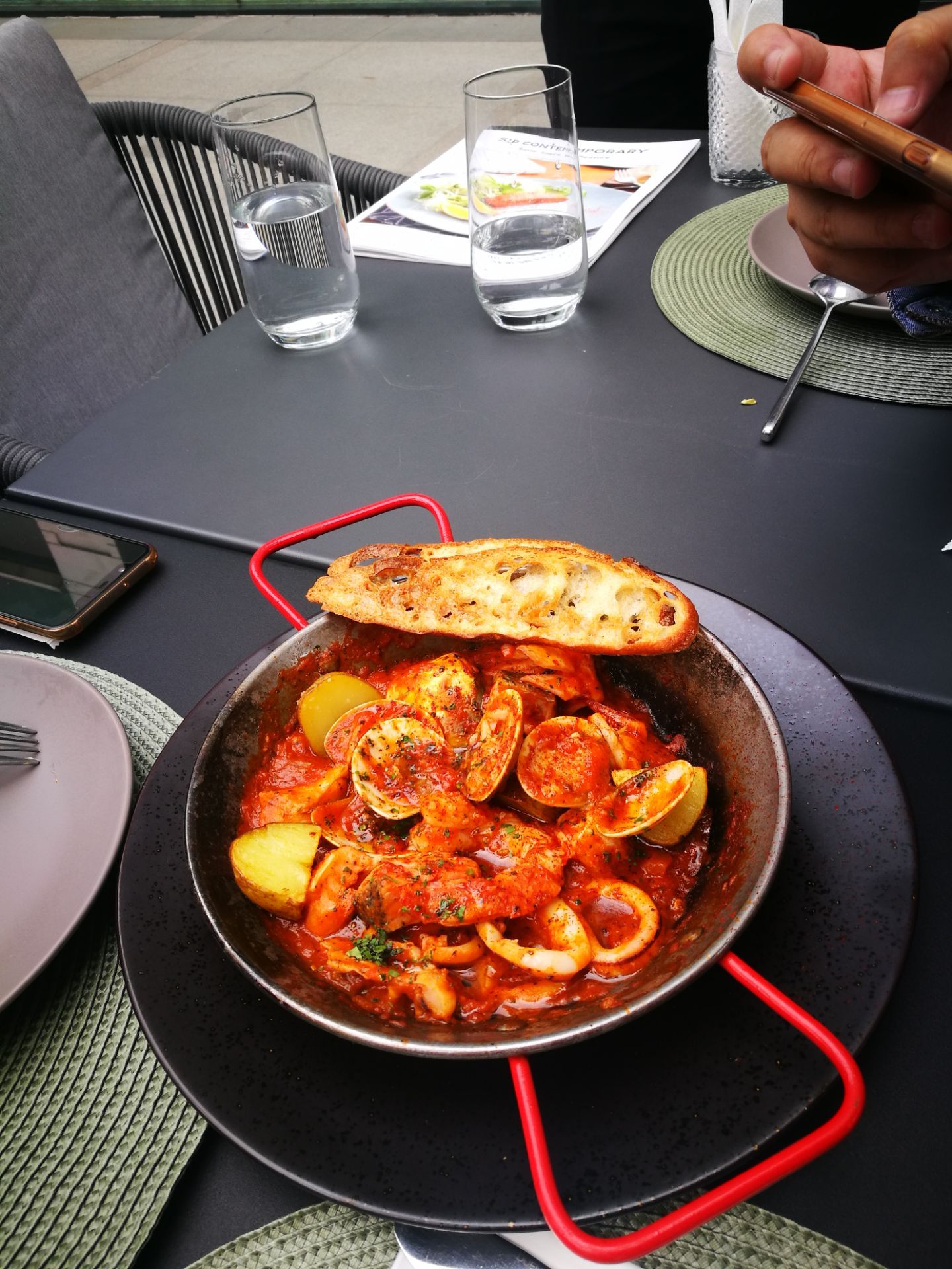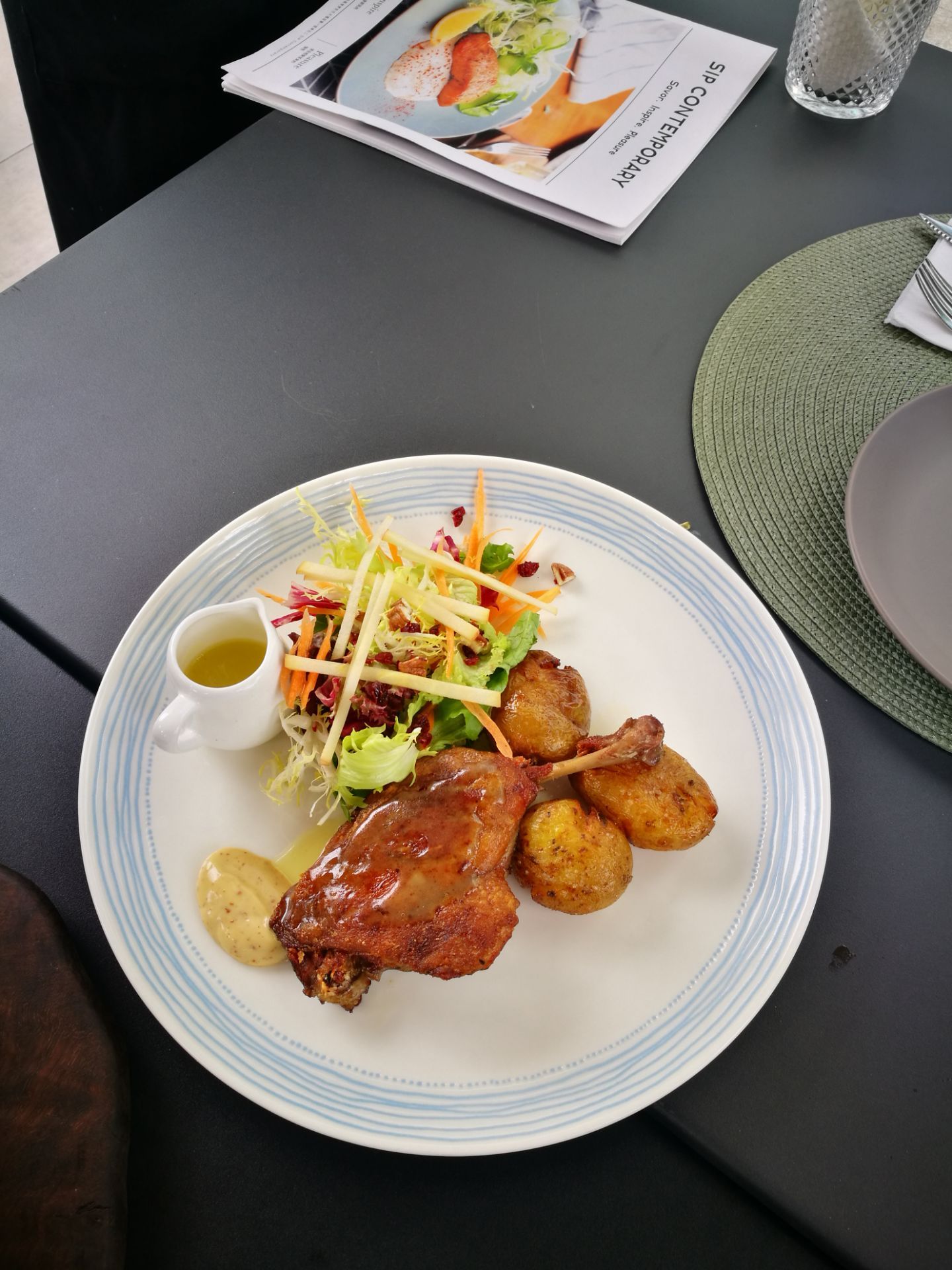 明天就是清明小长假,总觉得应该有个小小的庆祝以表开心。恰好朋友约吃SIP法式西餐,想到该店坐落在咖啡一条街的官仁路上,就对这邀约充满期待,一顿有口福耳福眼福的午饭,让我的四月多了抹色彩。介绍一下点的菜吧。 疯狂牛油果:一直以来都比较喜欢有牛油果搭的食物,这次看到,自然不能放过。它家是把牛油果切成丁混合果酱涂抹在烤制过的面包上。因这款有点酸,导致其他味都被我忽略了。 烤伊比利亞猪肋排:这款对我这肉食动物是最好的安慰,烤得恰到好处,汁水被锁在肉里,吃起来只感到它的鲜嫩多汁了。 法式油封鸭,第一次吃到低温煎制12小时的食物,刚听到介绍时,我们都不相信,但不同于以往的肉香肉嫩,哪还顾得上考究其做法。 碳烧挪威三文鱼,我还是喜欢吃生的,所以对其较无感。 法式烩海鮮 ,又是到酸性食物,搭配面包中和一下更好吃。 sIP手工牛肉汉堡,配菜丰富,有沙拉有薯条。 康沃尔式鸡,这道菜,好看还好吃,口感接近中式味道。 西葫芦核桃拌面,本这尝试的想法,点的它,这道菜验出来我是中国胃,其搭配出来的味道与中餐太大一样,不太适应,形容不了那种感觉。