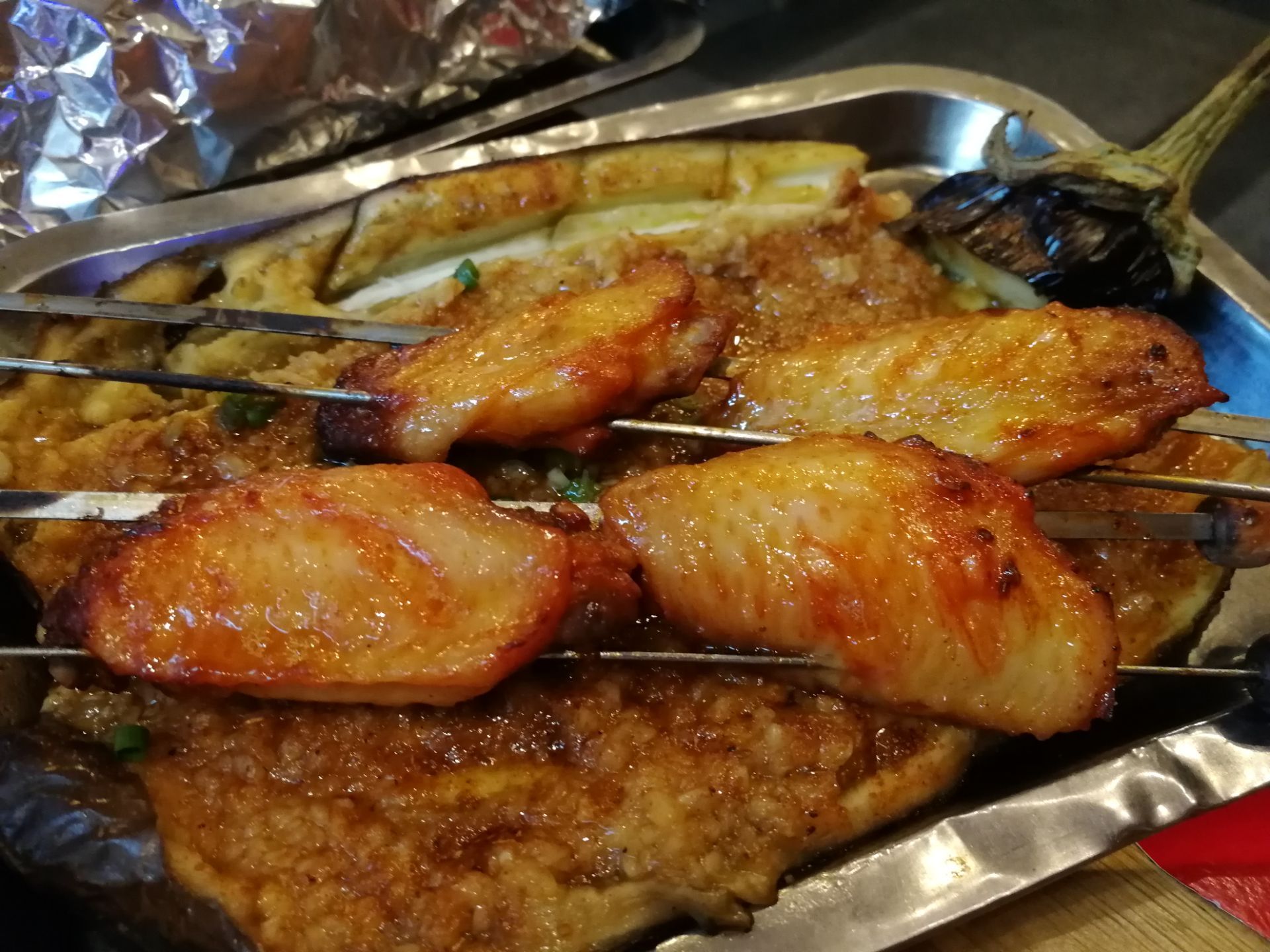 食材比较新鲜,烤的技术不错,不会觉得很热气,但口味偏咸了。主打烧烤和砂锅粥,前者较实惠,后者不便宜