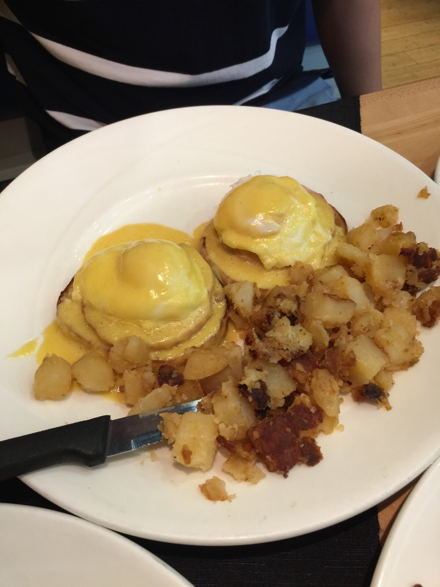 很有名的一个早午餐的地方,就在说住的公寓旁边。黄黄的招牌很显眼。8:00左右去的时候还是有空位置的但是半个小时开始就已经排队了。小甜品比较油腻一个完整的太多了,烤土豆真心好吃,煎蛋也是一绝。水果那盘不好吃。