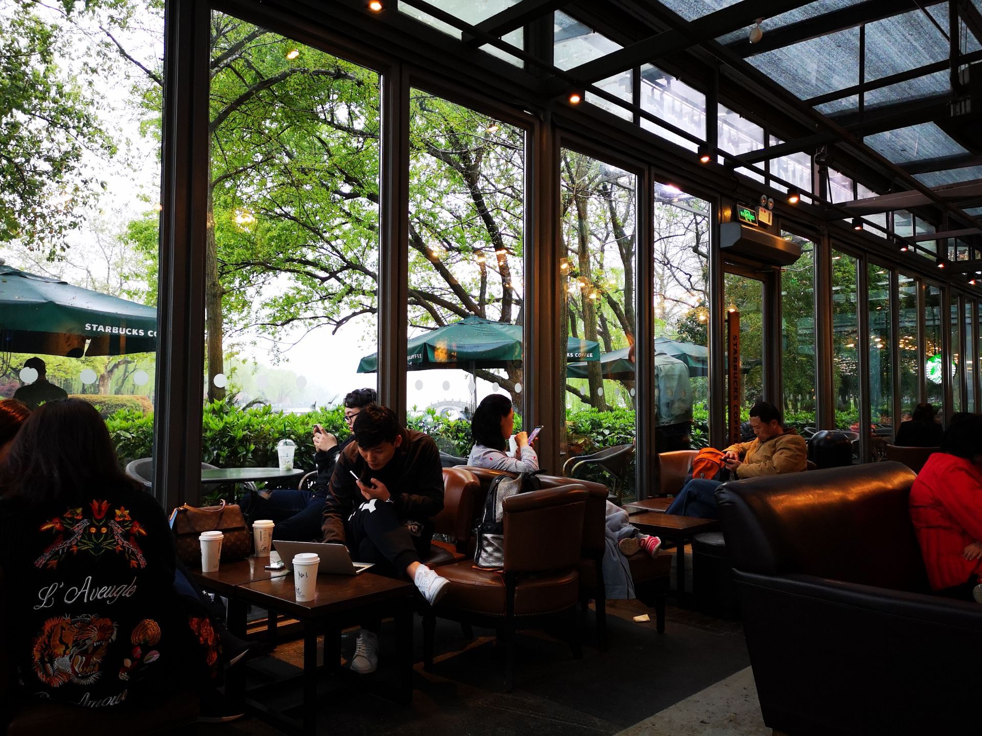 西湖天地的星巴克,在杭州的几日里,光顾了好几次。地理位置超级赞[强],户外紧挨着西湖,阳伞下喝着咖啡☕️,欣赏着西湖,不要太快活[色]。 或许因为是在西湖边,所以玻璃房子显得格外好看,拍照也很有文艺范。 西湖边的好去处。