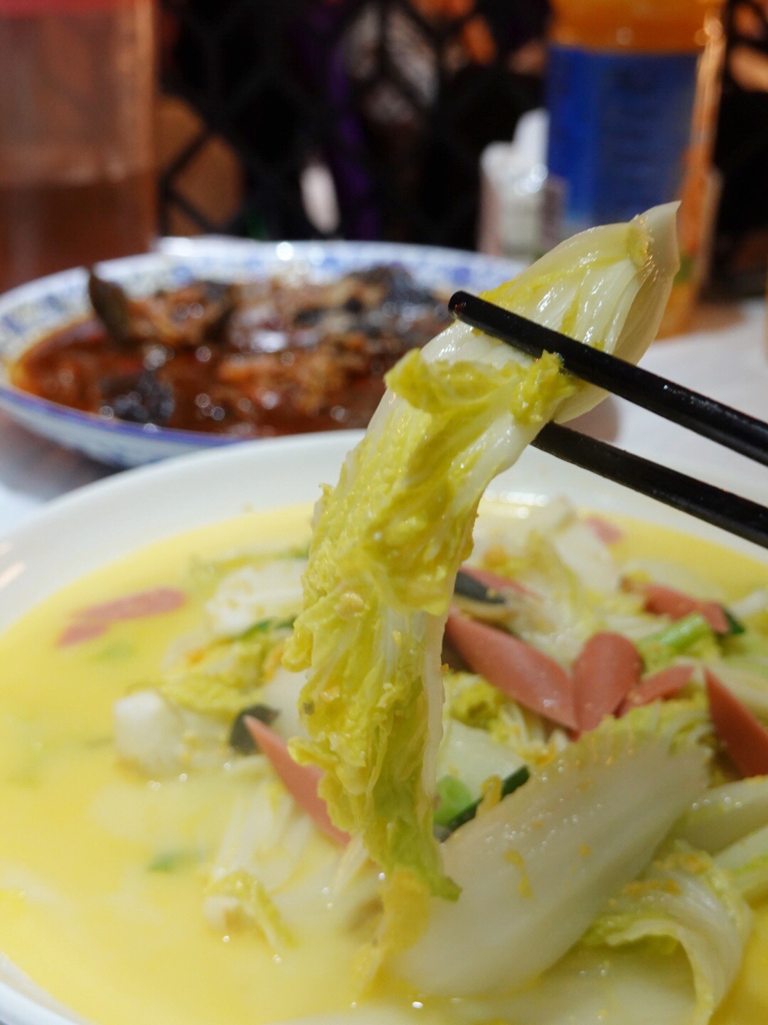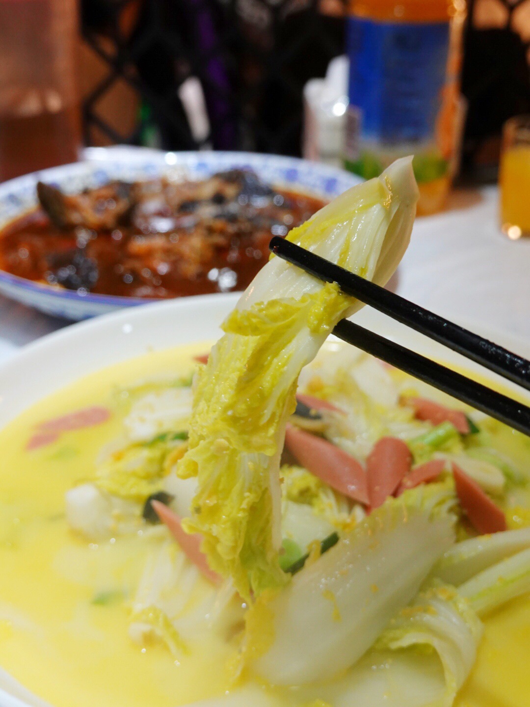 鲶鱼粉皮,堪称一绝,好吃到不行; 上汤娃娃菜,口感浓郁,香浓味美;南瓜馒头,新鲜出炉,还带着热气