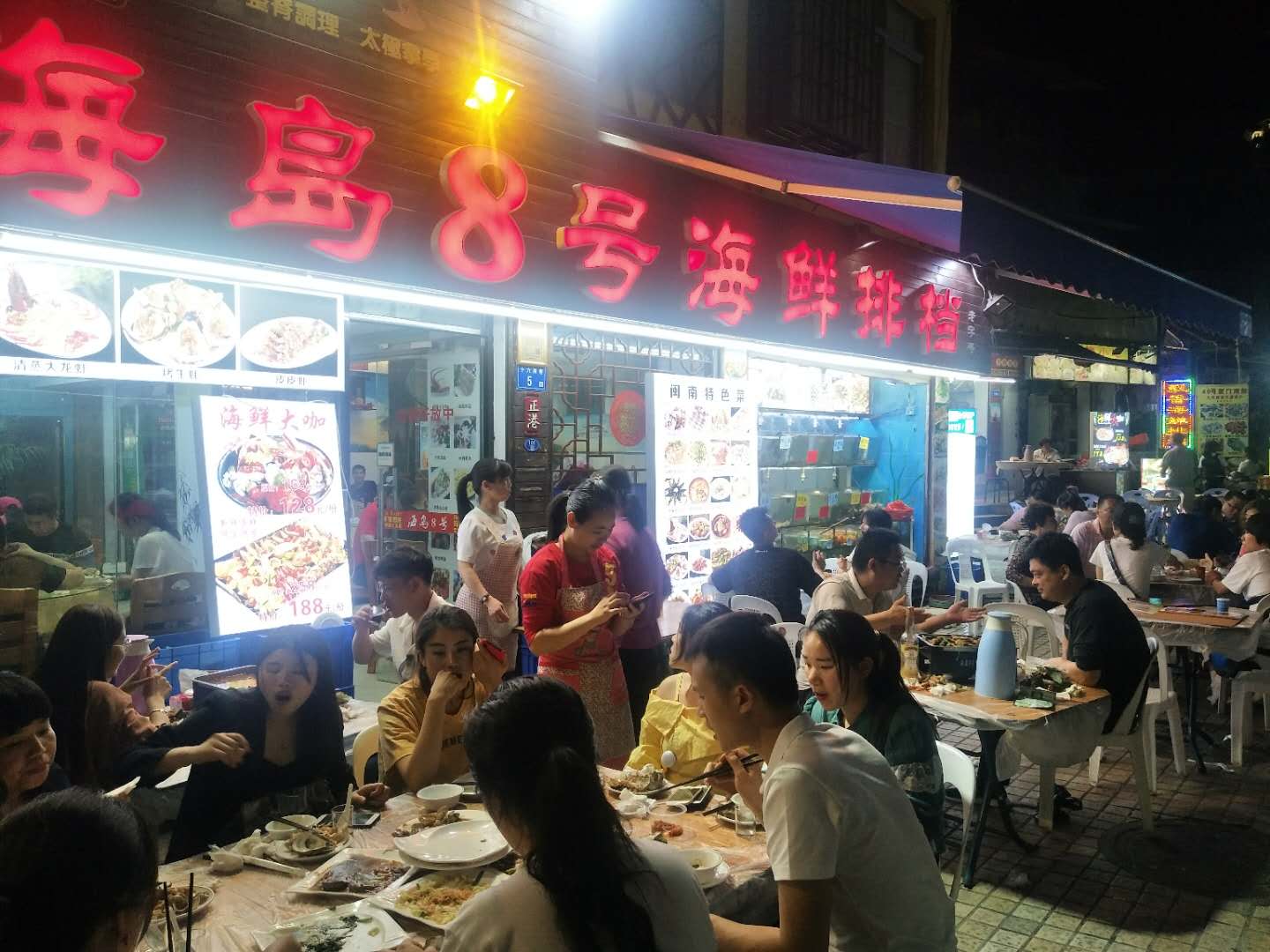 海岛8号海鲜大排档隐藏在中山路局口街,大半夜想去吃夜宵,没想到餐厅还有在营业,于是就选择这家。 餐厅以海鲜为主,这次点了螃蟹、鱼等海鲜,老板很热情,上菜速度也很快,我们吃的特别开心。 人均不到60元,挺合算的。