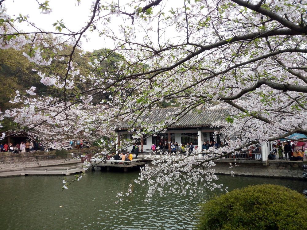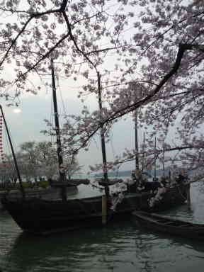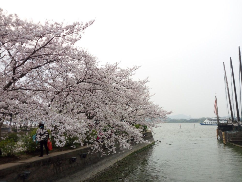 在长春桥边的一个景点,樱花节时期在樱花树岸边的一景。 太湖是水上文化浓厚,七桅帆船说是吴地船文化的一个缩影。据说这种帆船航行速度快,可做战船和渔船,被称为“渔船博物馆”。当然,现今无论渔船或战船都已经发展了,这种怀古的帆船只能供游客们拍照留念。 在鼋头渚有几艘这样的帆船,分布在太湖上,湖水、帆船、樱花、夕阳,满足大家的游览要求。
