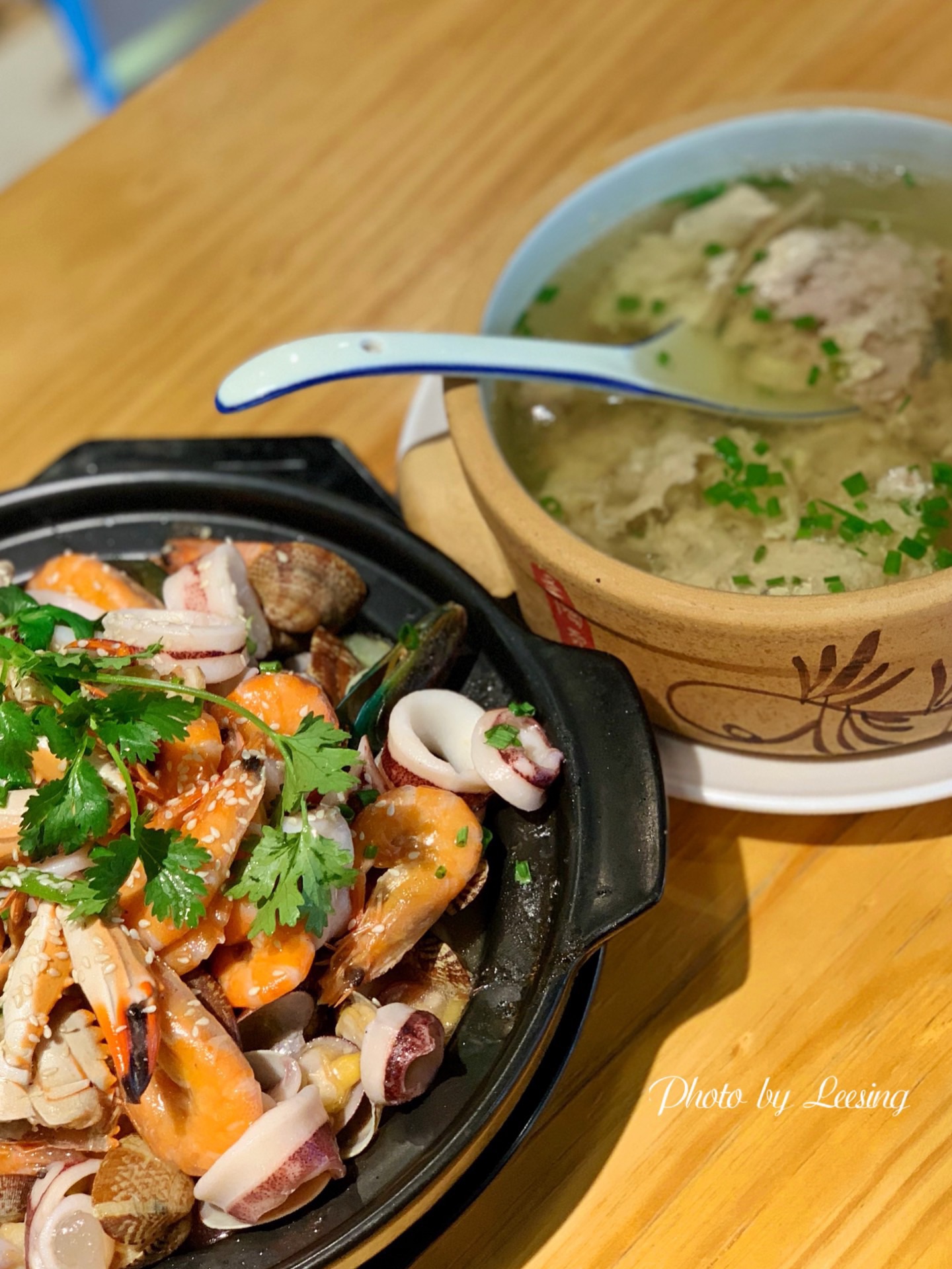 最近好像很多餐厅都做起了海鲜锅这样的菜品,大厨的餐厅也有这道菜品,也是店内的招牌菜品。 大厨的餐厅的大厨海鲜锅可以选择辣或者不辣,本地的推荐不辣噢,因为可以尝到海鲜自身的鲜味,外地游客可能不太习惯这样的鲜味不畏惧辣的也可以点辣的,辣的通常还是比较好吃的。 大厨海鲜锅,里面海鲜有石蟹、鱿鱼、鲜虾、花蛤、青口贝,素菜有花菜、莲藕、莴笋、土豆等等,份量还是很足的,海鲜也都特别新鲜,味道也挺好的,稍有一丢咸,另外素菜方面过于熟烂了口感上差了点。 龙岩土猪汤,也挺好喝的,参味挺重的,真材实料感觉,就也是稍微偏咸了点。 大厨的餐厅位置也很大,还有二楼三楼,也有包厢,可以容纳多人用餐。