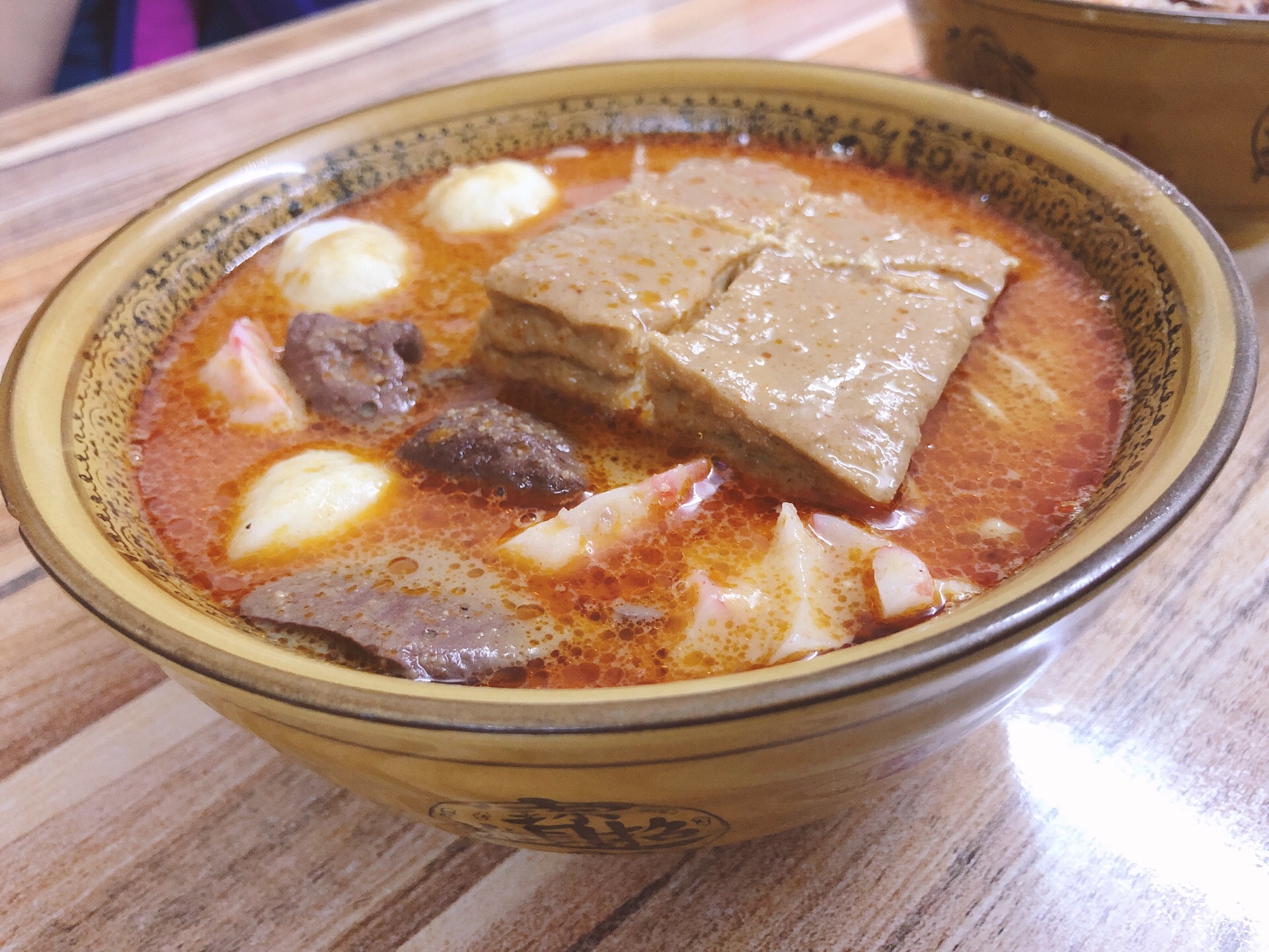 他家的沙茶面是我最爱的沙茶味道! 招牌沙茶面有经典的豆腐,鸭血,鱼丸,小肠等等