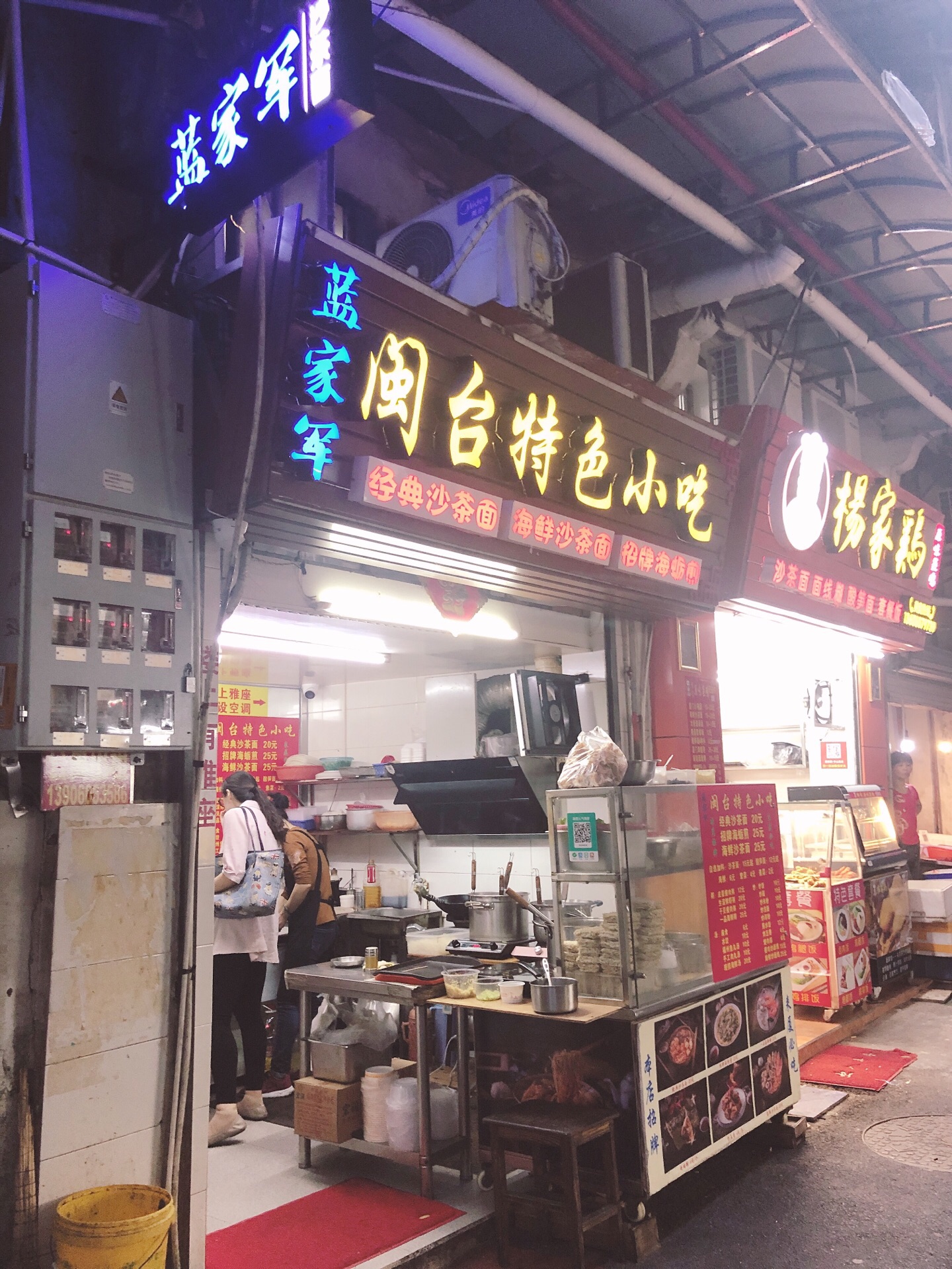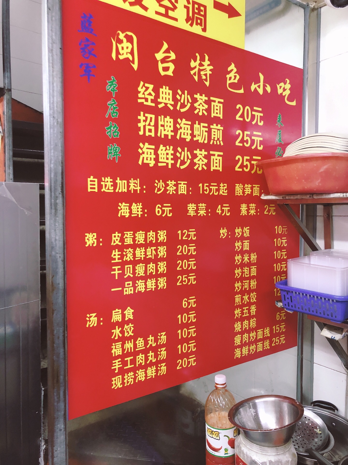 隐藏在小巷子里的沙茶面! 沙茶味道超级赞的[强][强][强] 蓝家军,应该是家老店了。 位置:钓仔路42号一楼(青芒便利店拐进来,近国际银行、新水仙旅社)。 旧旧小小的店面,座位不多,一楼几个单人座,二楼两个双人座,以前房屋窄小,楼梯也比较窄。 他家的沙茶面是我最爱的沙茶味道!选了招牌沙茶面和海鲜沙茶面。 招牌沙茶面有经典的豆腐,鸭血,鱼丸,小肠等等。 海鲜沙茶面有蛏,鱿鱼,鲜虾,花蛤,小海蛎等。 味道很赞,沙茶香浓,加入了蒜蓉碎,不怎么辣。除了环境破旧点外没有其他毛病,店家的服务态度很好,喜欢沙茶面的可以来试试~