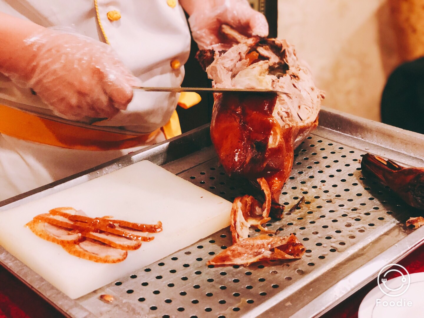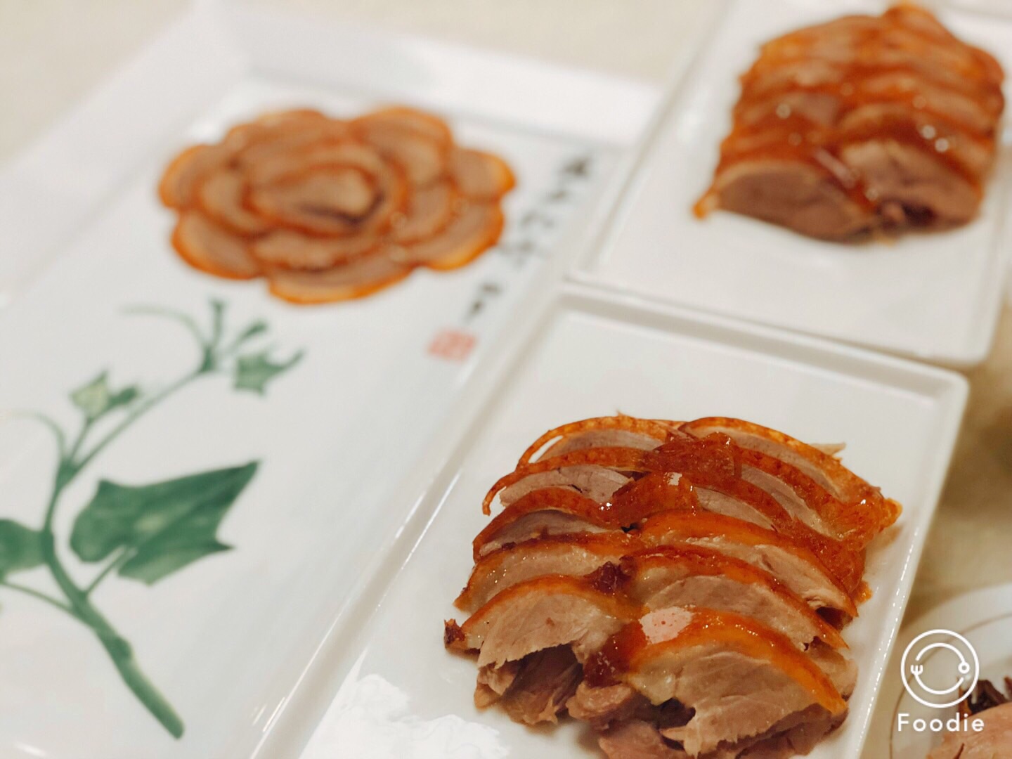 北京·全聚德方庄店 【二疯拔草记in北京】 说到吃烤鸭,还是喜欢全聚德,除了烤鸭之外其他的菜品也是很和胃口的;环境和服务也都很不错; 这次点的是牡丹烤鸭,是店里的招牌了,经过赏心悦目的片鸭表演之后,摆盘成牡丹花盛开的形状,色香味俱佳,也曾作为招待国宴上招待外宾的菜肴,可以选择夹在烧饼里或者用荷叶饼卷着吃,味道和口感依旧棒棒,唇齿留香; 盐水鸭肝和干炸小丸子作为开胃前菜也是肉食动物的最爱;老北京烤肉和菠萝虾满足了大口吃肉的愿望;主食里的山东煎饼和甜蜜蜜很是喜欢,尤其是甜蜜蜜,黄米年糕里夹着豆沙馅外面还包裹着红枣,口感软糯香甜,几乎都被我灭掉了呢~