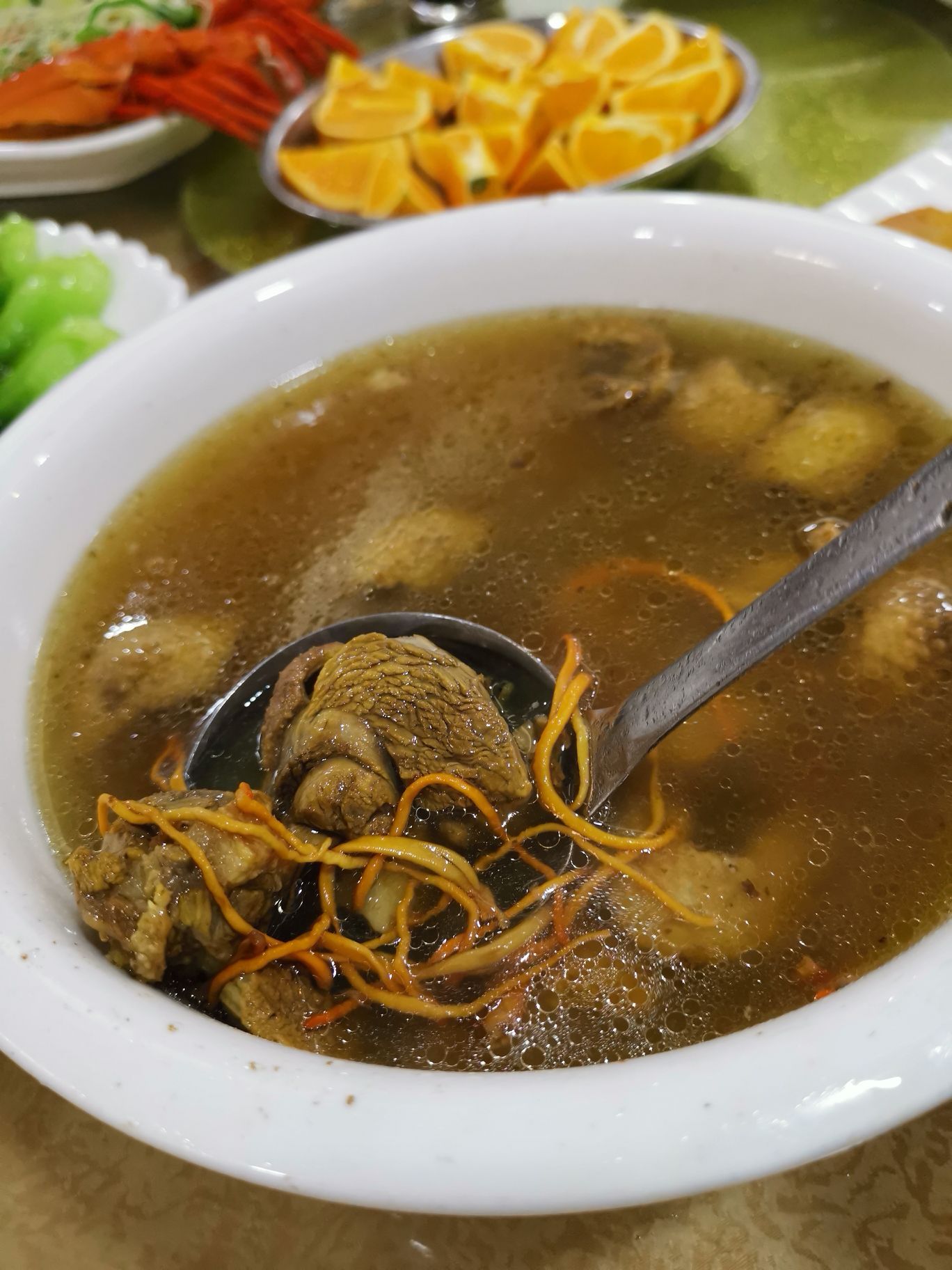 对于不懂点菜的人来说,有套餐选择真的是太方便了。六个人,598的套餐,人均不到一百,还有龙虾,聚餐非常划算了。 |豆豉蒸鳗鱼^鳗鱼是我的爱。肥嫩肥嫩的,一点点豆豉就很入味了。 |红烧鲍鱼^六人套餐刚好一人一个,不浪费。 |龙虾粉丝^个头不小哦。肉质很结实,新鲜。 其他都是套餐内的,味道都还可以,分量不用说,非常实在了。 最后单点了一份主食|糯米蒸膏蟹^。蟹膏很多!底下的糯米吸满了螃蟹的香味,吃了好多。