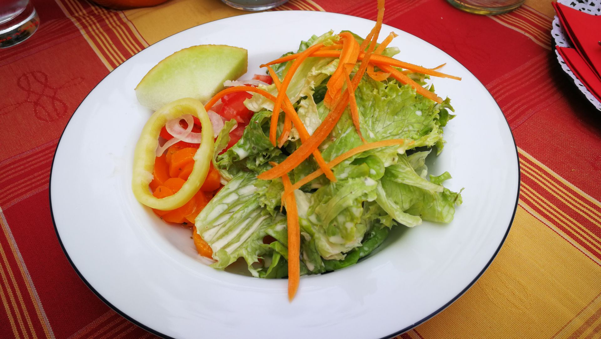 中午从Lahr的德国乐器工匠工作室出来,绕过皇冠峰赶到这里,村口车子靠边一停,就急不可耐坐下点菜