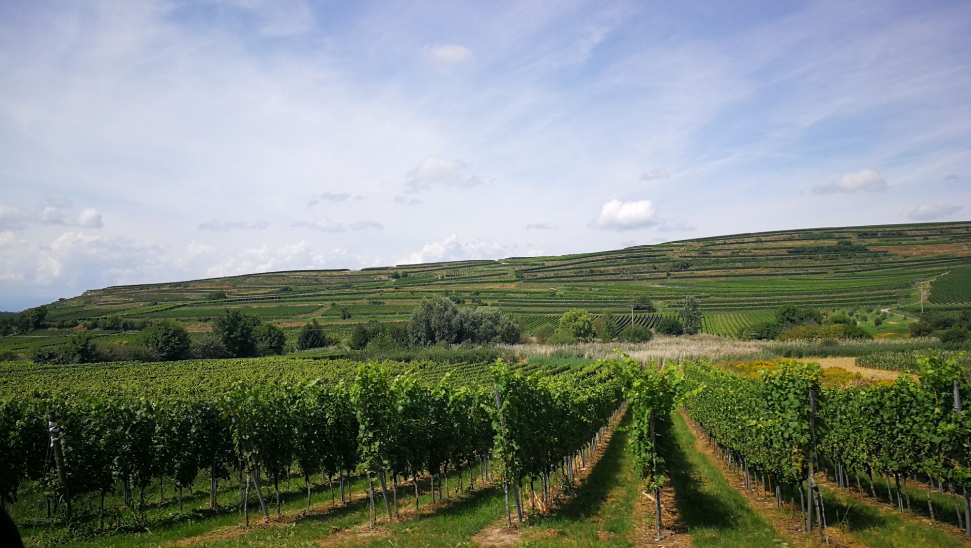 这家餐厅位置很乡村的,去过的人也少,即使在Trip Adviser上也只有寥寥几条点评,而且除了一条日文的其余都是德文。这里是德国最西南部的上莱茵地区,隔莱茵河与法国的阿尔萨斯-洛林相望,南下不远就是瑞士巴塞尔,是历来兵家必争之地。这里还是优质葡萄酒和香槟的产地,围绕着皇冠峰,一层层的梯田种植的绝大多数是葡萄。不过这儿算不得旅游景点,旅行手册上是根本查不到什么资料的,近年才开始有个别亚洲面孔出现。德国乡下的乡下,Vogtsburg小镇下面有7个更小的村散布在皇冠峰周围,Gasthaus zum Adler就坐落在Birkheim村口。中午从Lahr的德国乐器工匠工作室出来,绕过皇冠峰赶到这里,村口车子靠边一停,就急不可耐坐下点菜。室外花园的空间不算很大,乡土气息浓厚,天气晴朗,也没人愿意坐在室内,就只有老板娘在忙,上菜速度稍慢,不过这里的乡村生活就是慢悠悠的