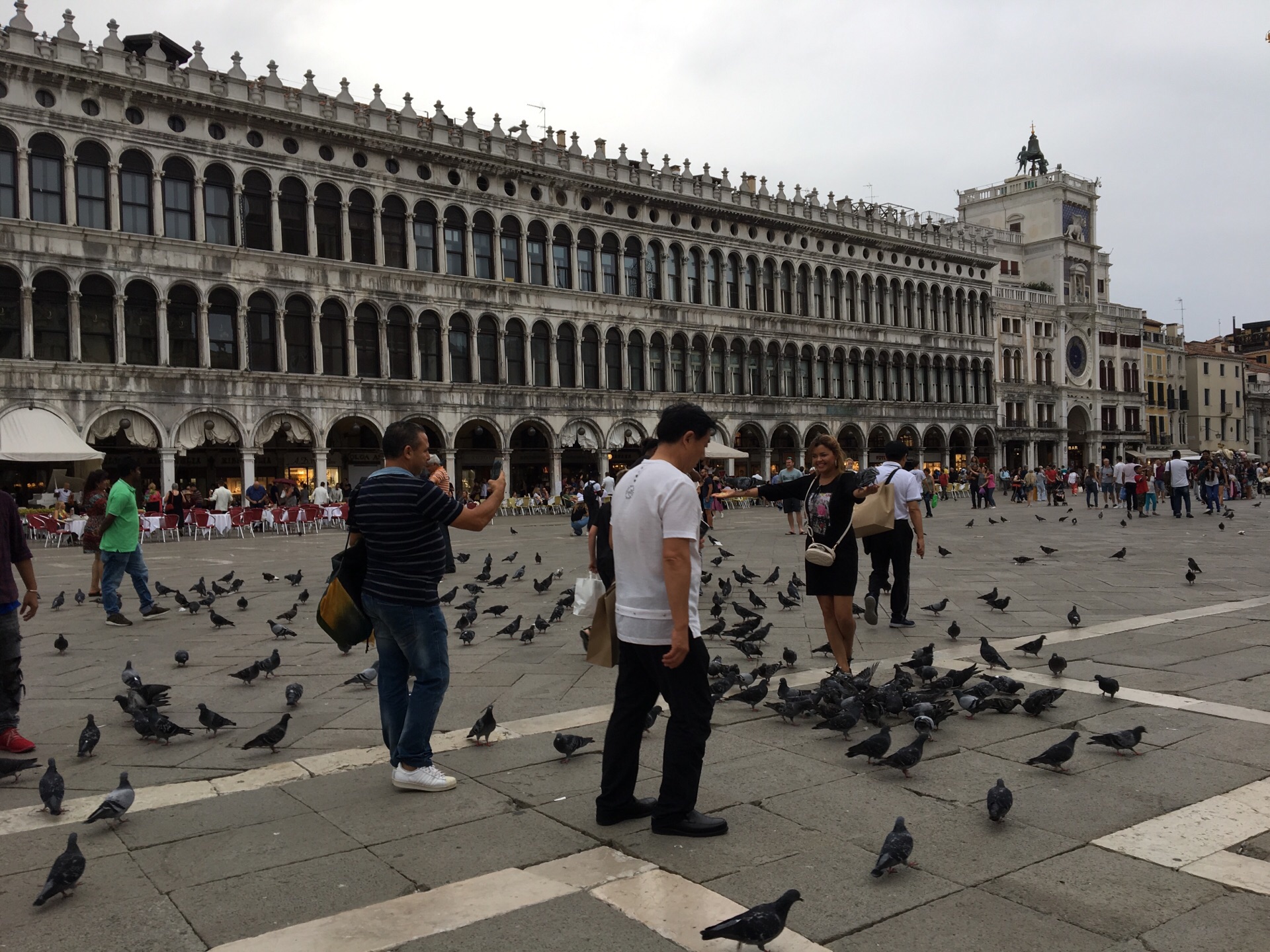 弗洛里安咖啡馆也叫做花神咖啡馆,应该是威尼斯名气最大的一家咖啡馆了吧。1720年就开始营业,至今已经有快300年的历史了。他就在号称世界上最美的会客厅的圣马可广场的旁边,咖啡厅会将桌椅都摆出来在广场旁边,不过当天天气很阴,随时下雨的感觉,好在也可以坐在长廊下边,既躲雨又看风景。不过这里的消费不低,我们就是路过看看风景而已。