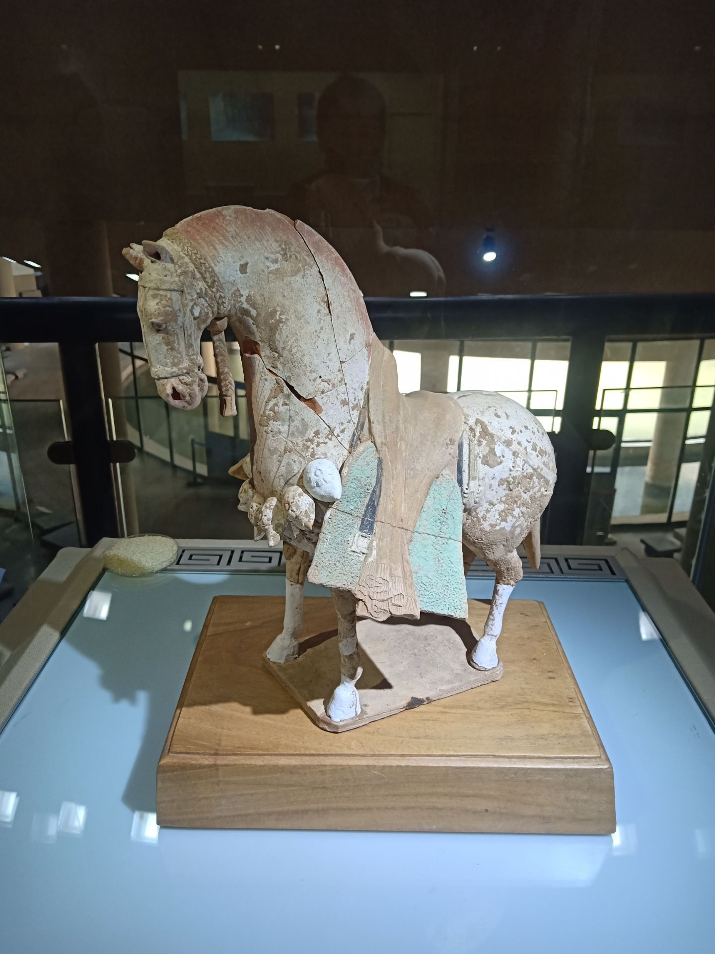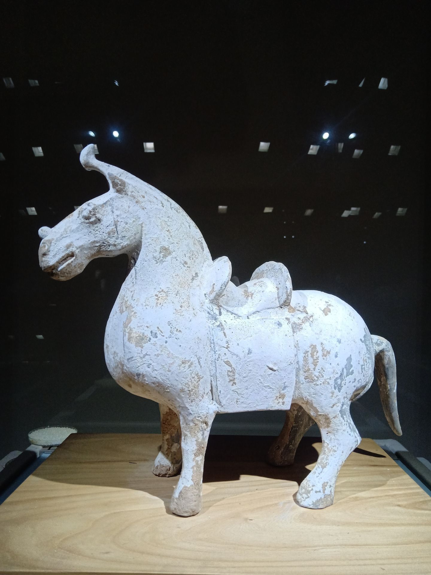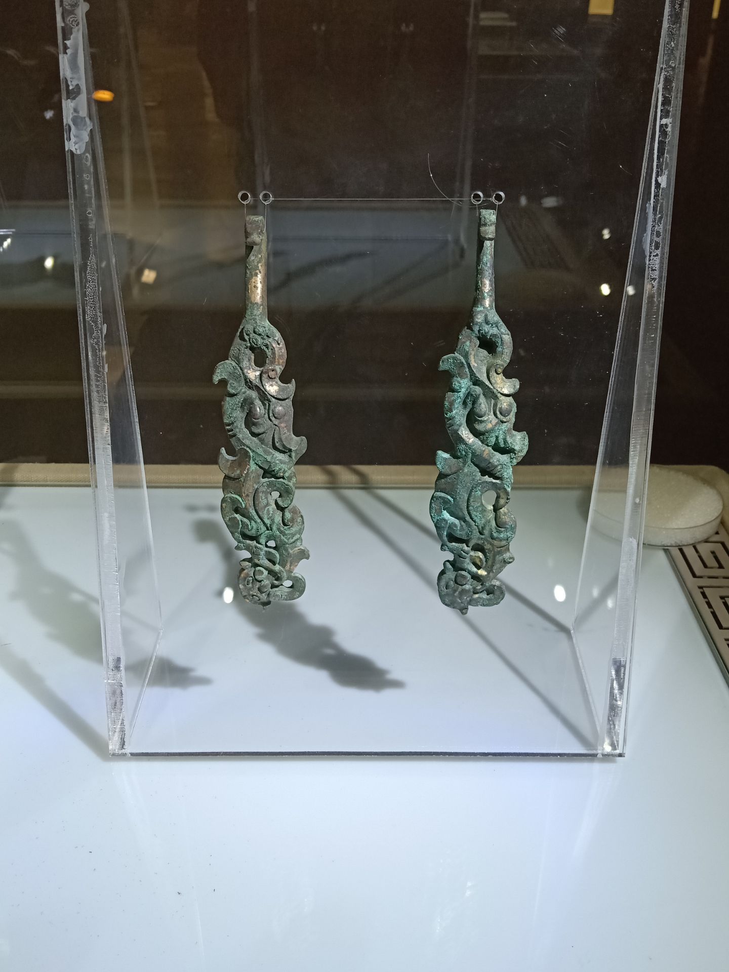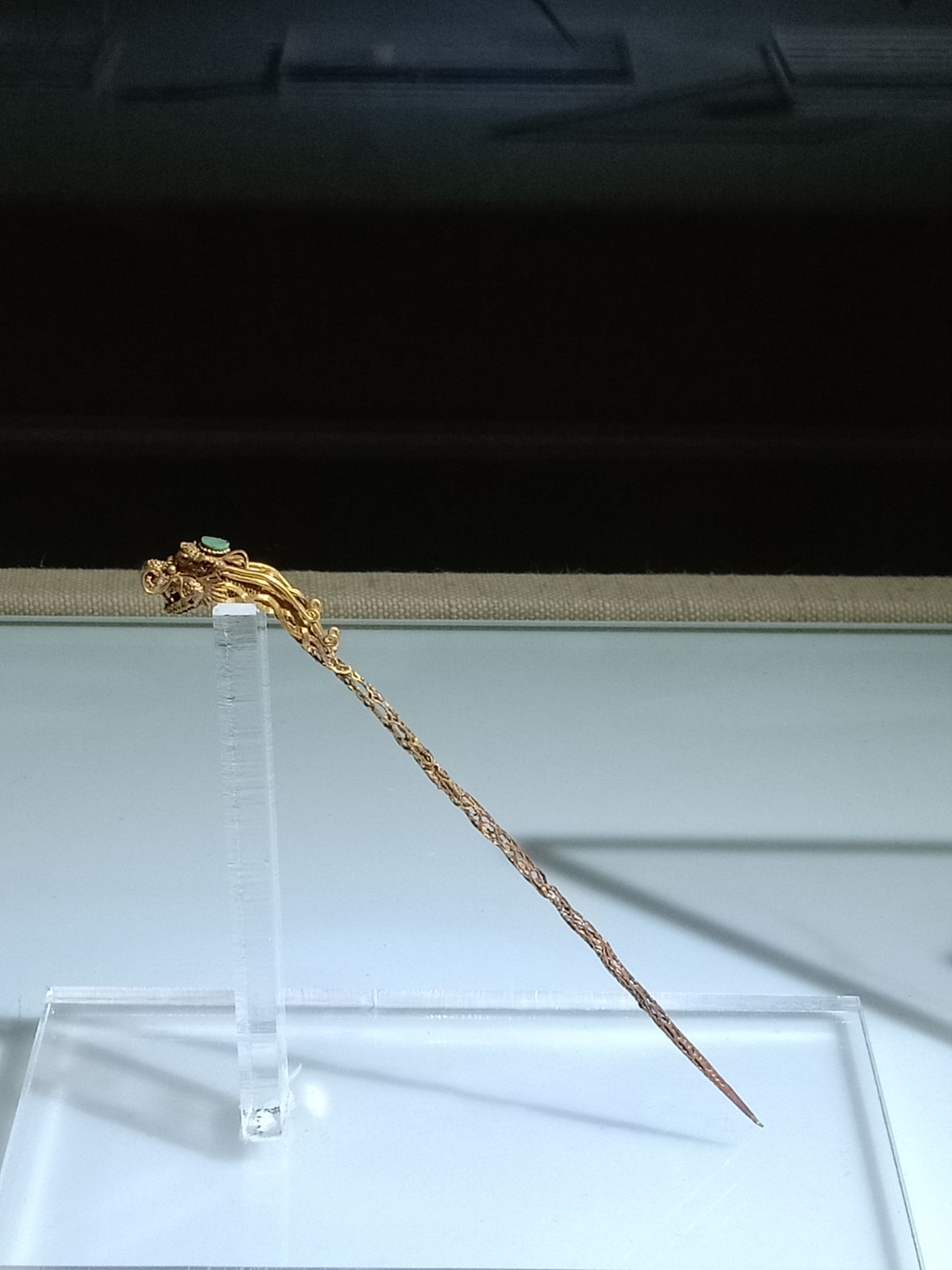 龙门石窟,是洛阳旅游的首选,也是摩崖石刻和碑刻的首选,在这样一块风水宝地上,修建龙门博物馆,难免为人诟病,有班门弄斧之嫌。所以,博物馆在建筑造型,参观路线规划及展厅设计,展品摆放等方面,都凝结了足够的匠心与智慧,令人耳目一新。博物馆里,常规展品,有一级文物‘春秋宝剑及鞘’,剑不甚稀奇,带鞘的剑可就少见不由得多怪了 。龙尾凤首簪,雕功细腻,浑然天成,也算是上品了。最喜男俑雕刻,相貌俊美,表情虚静,细微之处的塑造亦用心备至,从其隐约隆起的头顶中间的脊线可见一斑,由此思及大唐盛世的民俗风情,在那样一个物华天宝人杰地灵的时代里,即便是寻常百姓,也在不断追求理想的进程中,高洁的思想高尚的行为将日常琐屑生活变得十分惬意舒适,香花,美器,音乐,还有茶道,香道等生活的艺术,无一不映射出人类内心深处无限的追求与愿境,这才是真正的盛世华章啊!