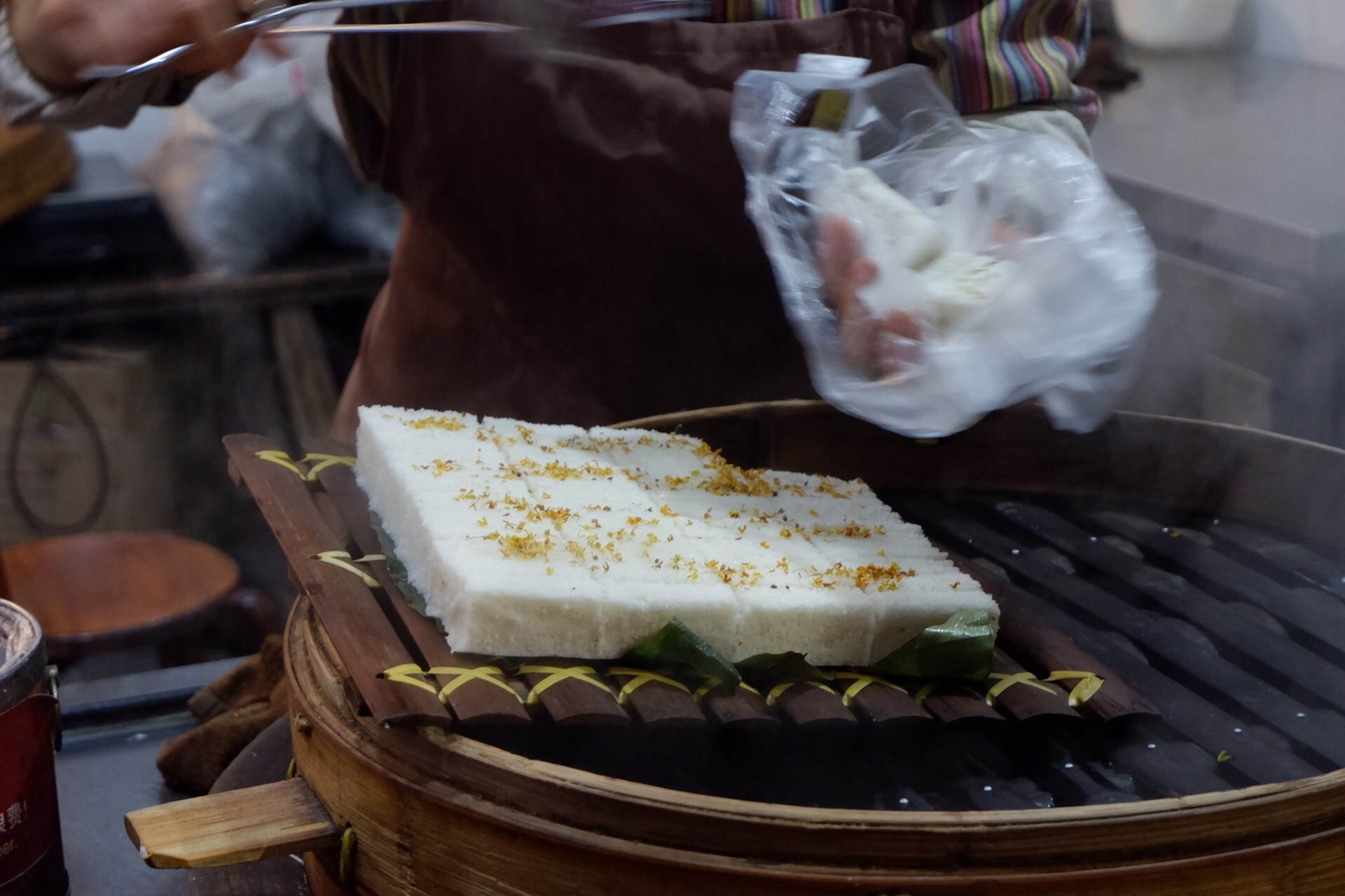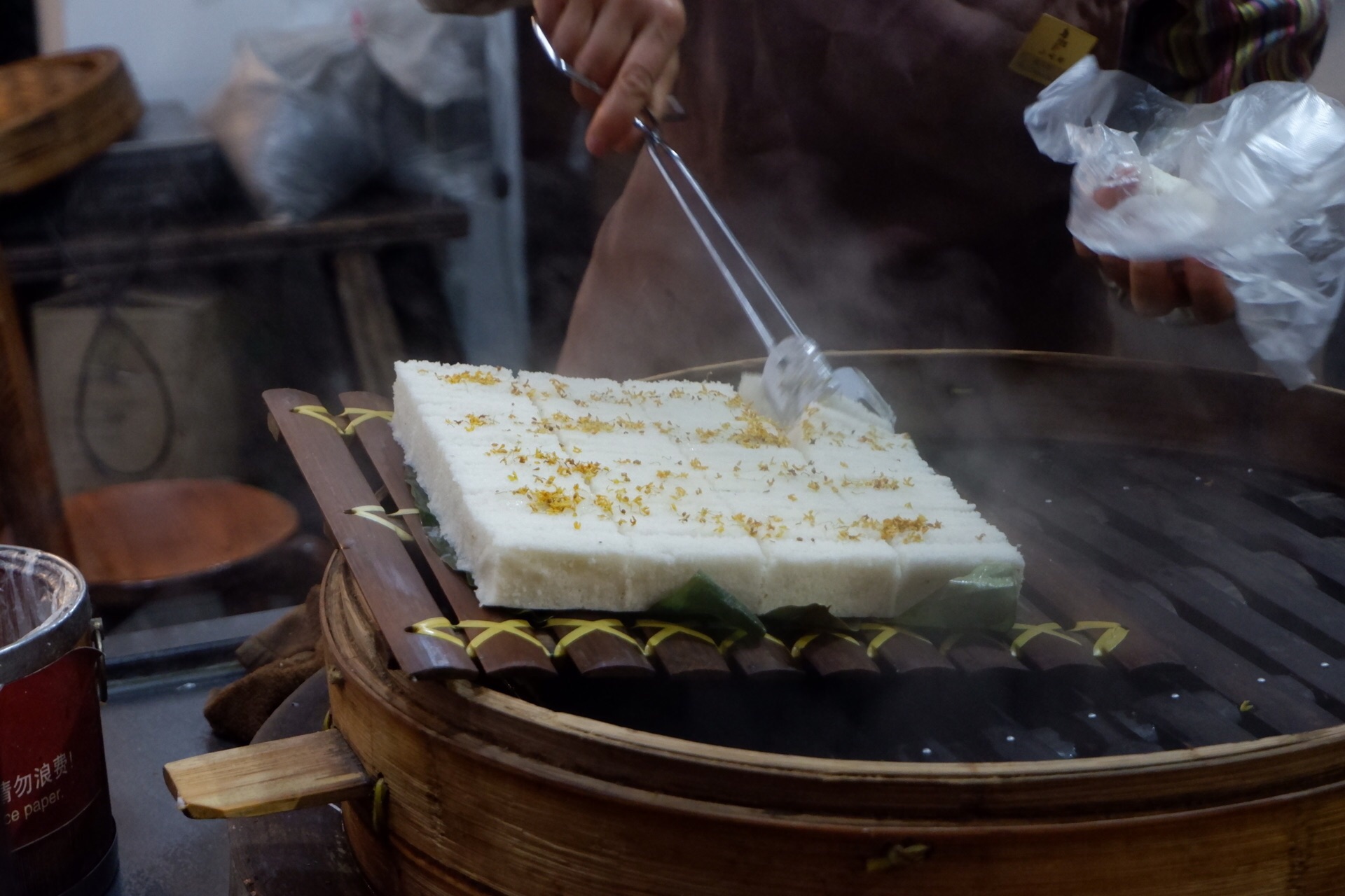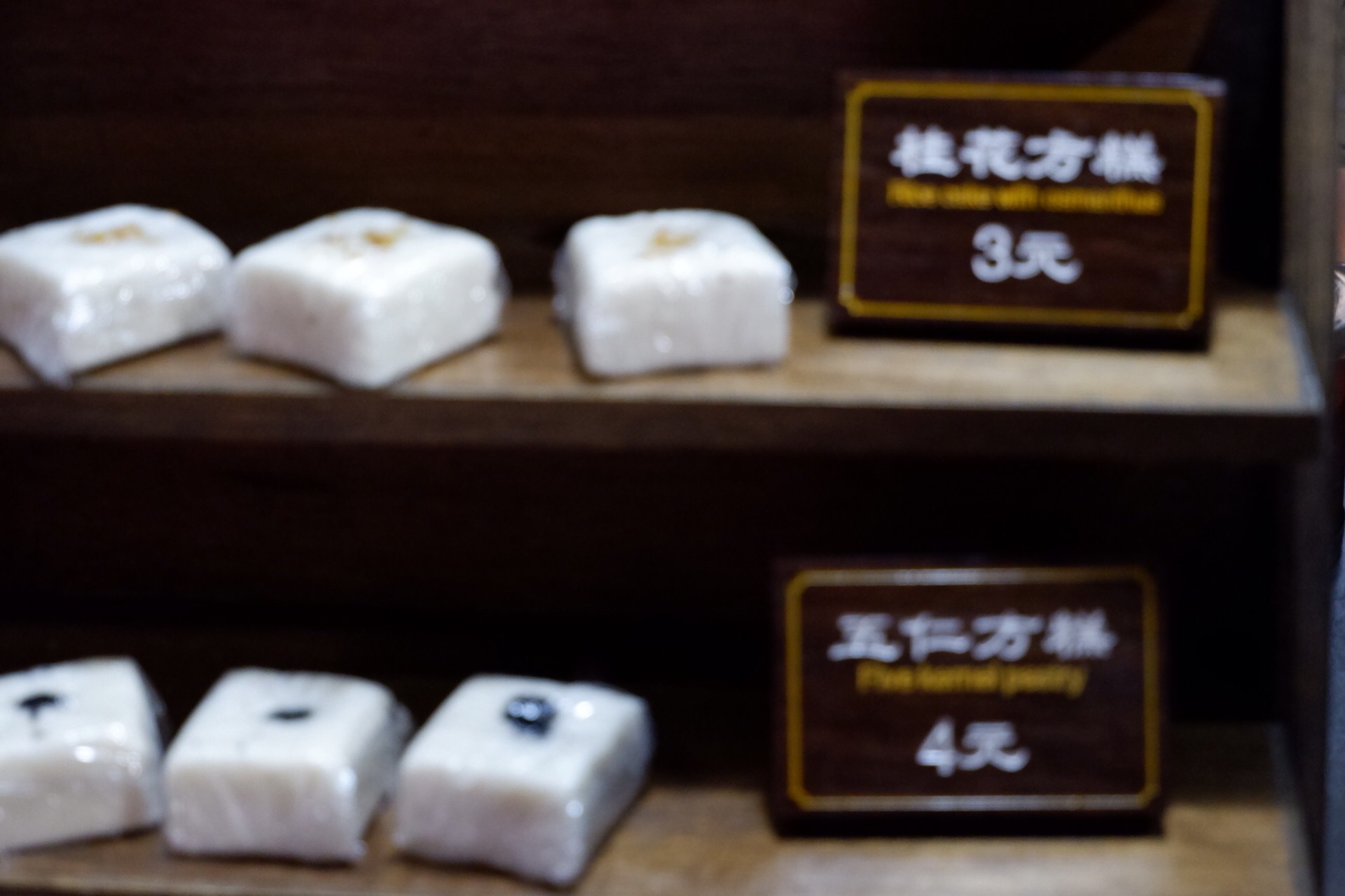 永平粉团铺(乌镇西栅) 坐标-西栅大街上,这个如果担心找不到,可以找到萝卜丝饼和乌梅青号,这个粉团铺就是在这两家店铺之间。 环境-这个店铺吧,不算很大,就是一个小小的店铺,里面出售的只有糕点,而且还是同一个类型的。 菜品-都是糕 桂花方糕¥3.00 这个就有点类似于原味的糕点上面撒了桂花,看着就是有一点点糙,不过这种搞点钱不就是这样么…… 还有其他的口味:五仁啊,肉啊,等等很多,价格3-5元不等,买一个尝试一下还是不错的,就是稍微糙了点。