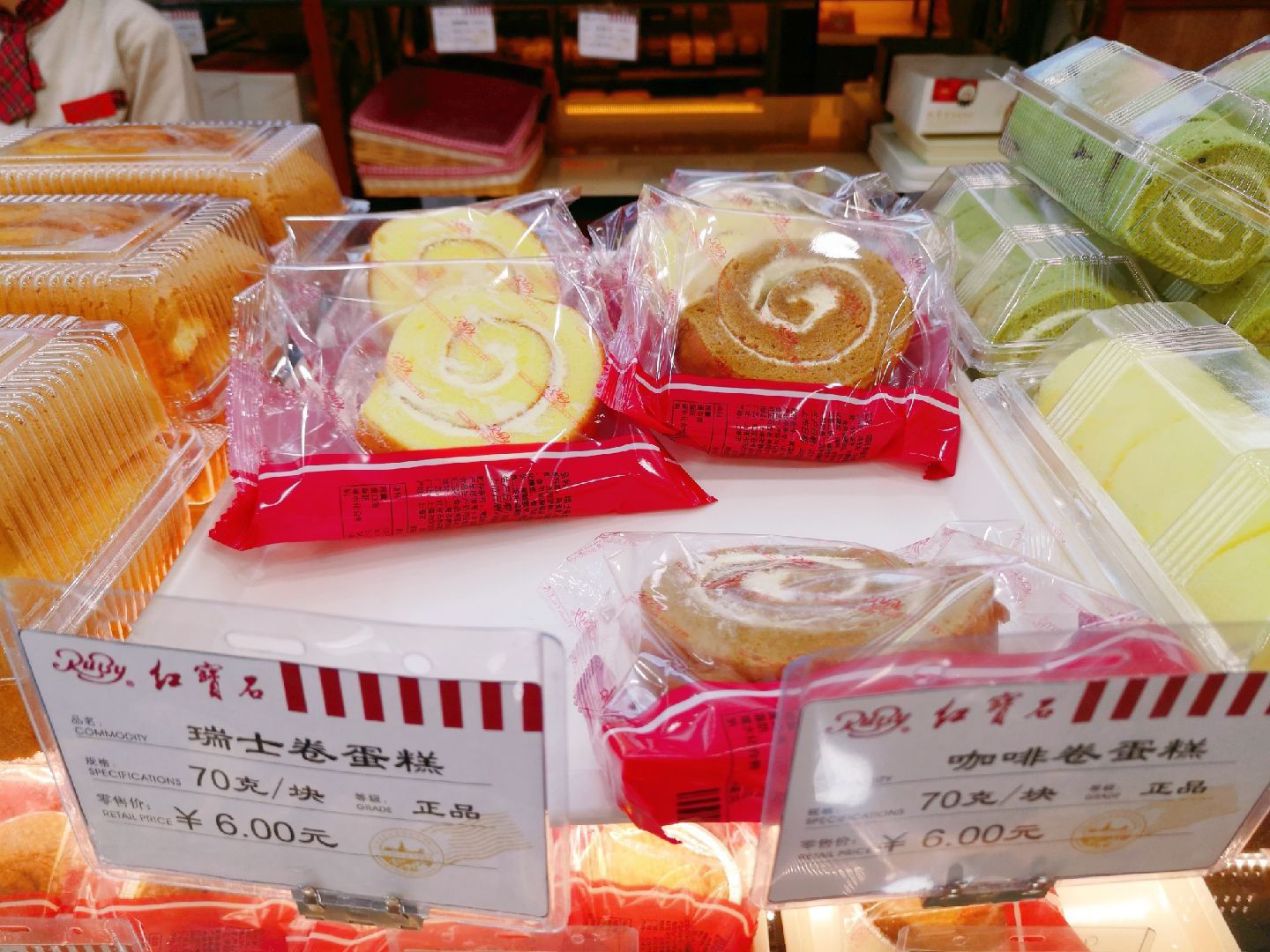前一阶段瑞金路上的红宝石装修,现在终于又开业了,生日当天买几块蛋糕给闺蜜品尝一下。 [环境]离淮海路很近的红宝石瑞金店门面其实不大,这次装修后其实整体变化并不是很大,就是感觉更明亮整洁了,进门两个蛋糕展示柜原本分开现在紧挨在一起,更方便顾客选择了。 [服务]还是上海阿姨,红格子围巾扎头,态度一般。 |鲜奶小方蛋糕^从小吃到大的鲜奶小方蛋糕价钱是年年涨,上面一层鲜奶油越来越薄,里面菠萝粒还有,味道还是原来的,就是块头变小了。 |原味葡萄卷蛋糕^也涨价了,这一卷有5片,性价比还算高。奶油轻薄,蛋糕绵软,里面镶嵌的提子是家里小侄女的专利,吃之前让伊一只只抠掉,我只能吃纯蛋糕了,买了给全家当早餐。 |枕头蛋糕^就是清蛋糕,回家切片吃,我欢喜的。 这个老牌子蛋糕一直是记忆中不可缺少的味道,过来购买也就是满足自己的怀旧情怀,看着红包石蛋糕店能从1986年至今仍在上海滩屹立不倒,也在于企业在保持传统产品还开发了不少新品,让新老顾客都各需所求,这样在市场竞争中才能做常青树呀。
