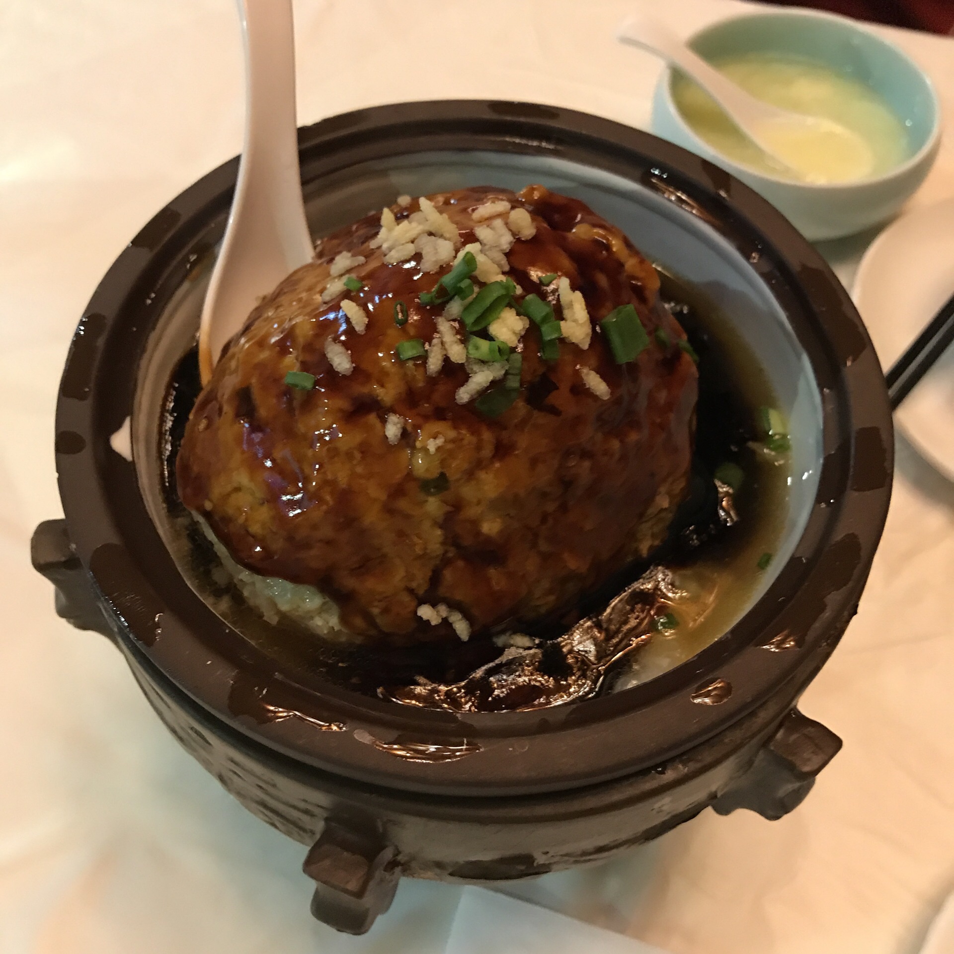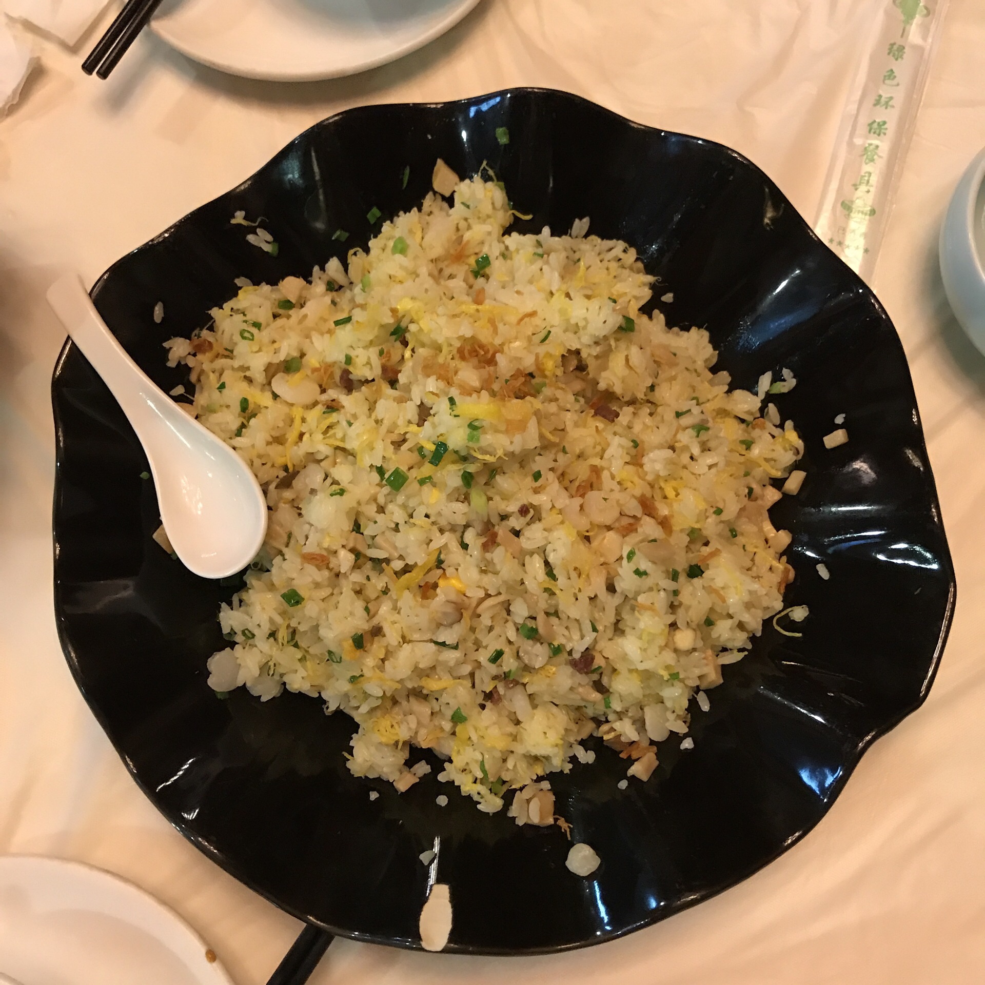 住在瘦西湖边所以到了附近的狮子楼,文思豆腐羹刀功精细味道好,扬州炒饭好吃,极品狮子头很大一个,两个人吃不完。里面装修很漂亮,就是不知道为什么桌椅却是用很普通的桌椅,还包上白布和一次性桌布,档次一下子掉了几级。