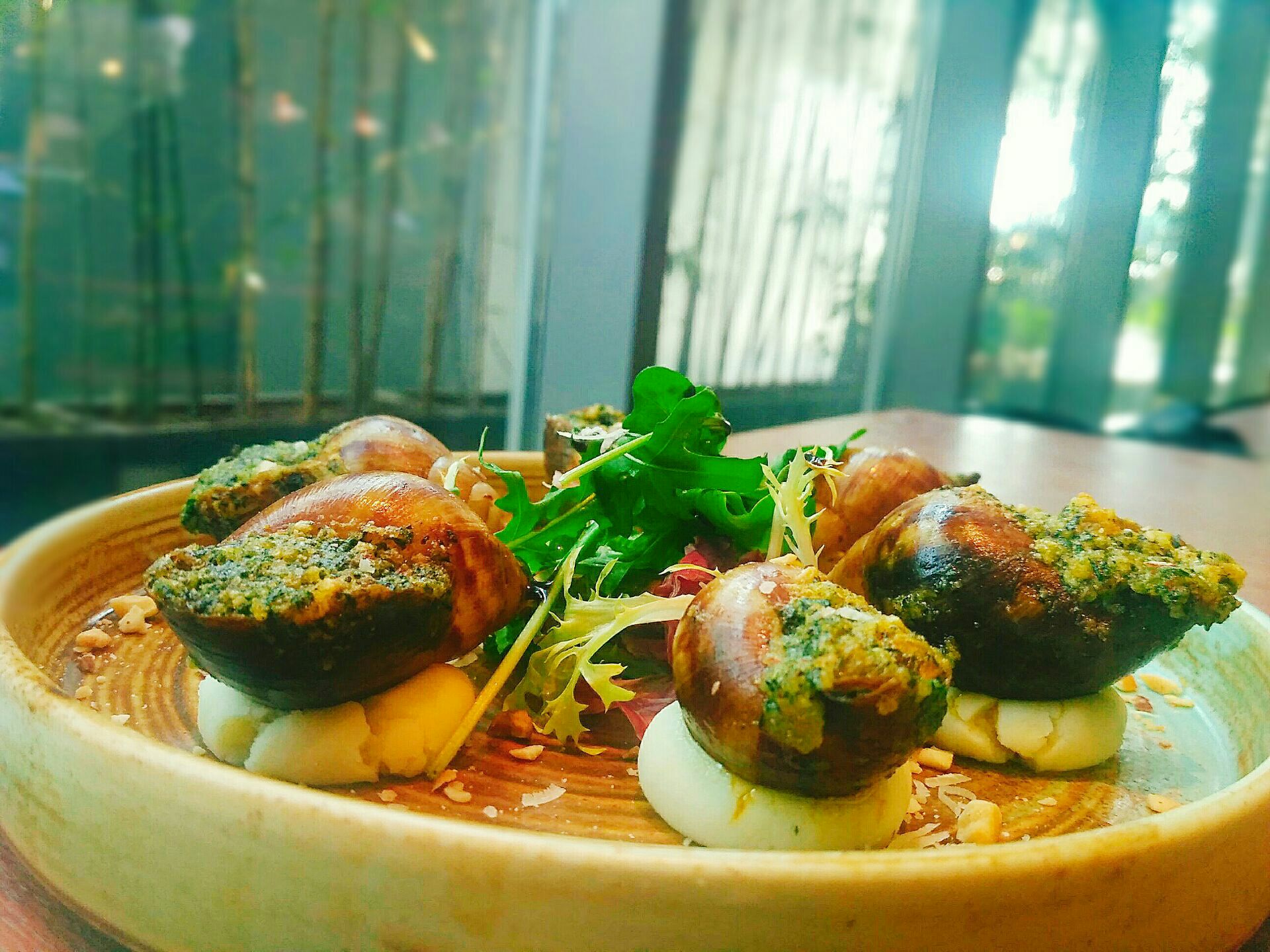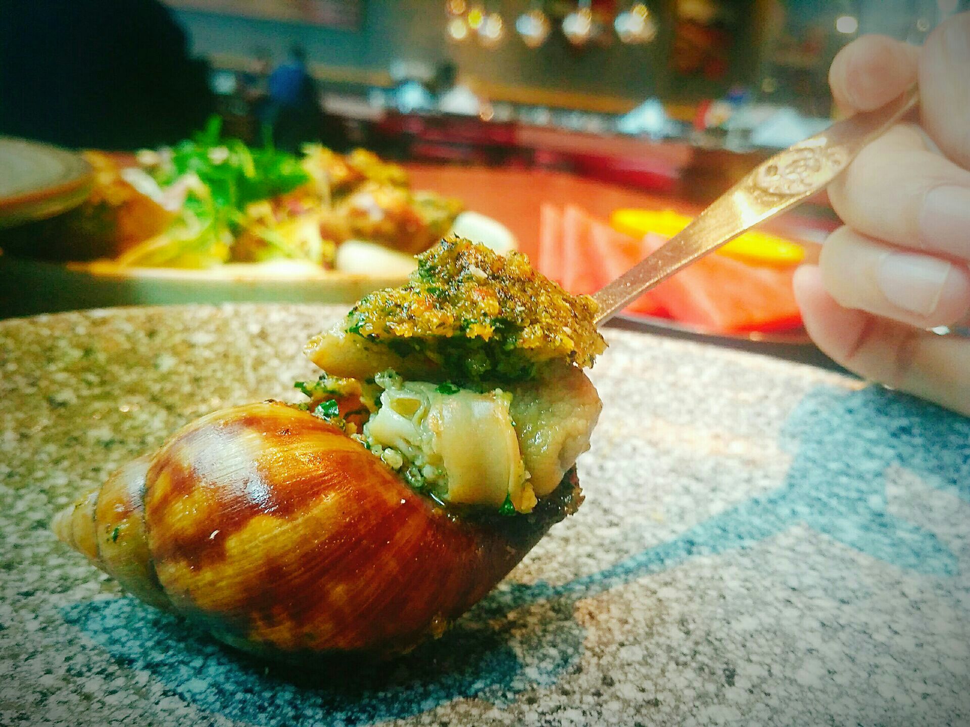 【法式香辣焗蜗牛】用小叉子挑出来,刚好一口一个,味道香浓,肉质鲜嫩Q弹,回味无穷,真的好好吃哦