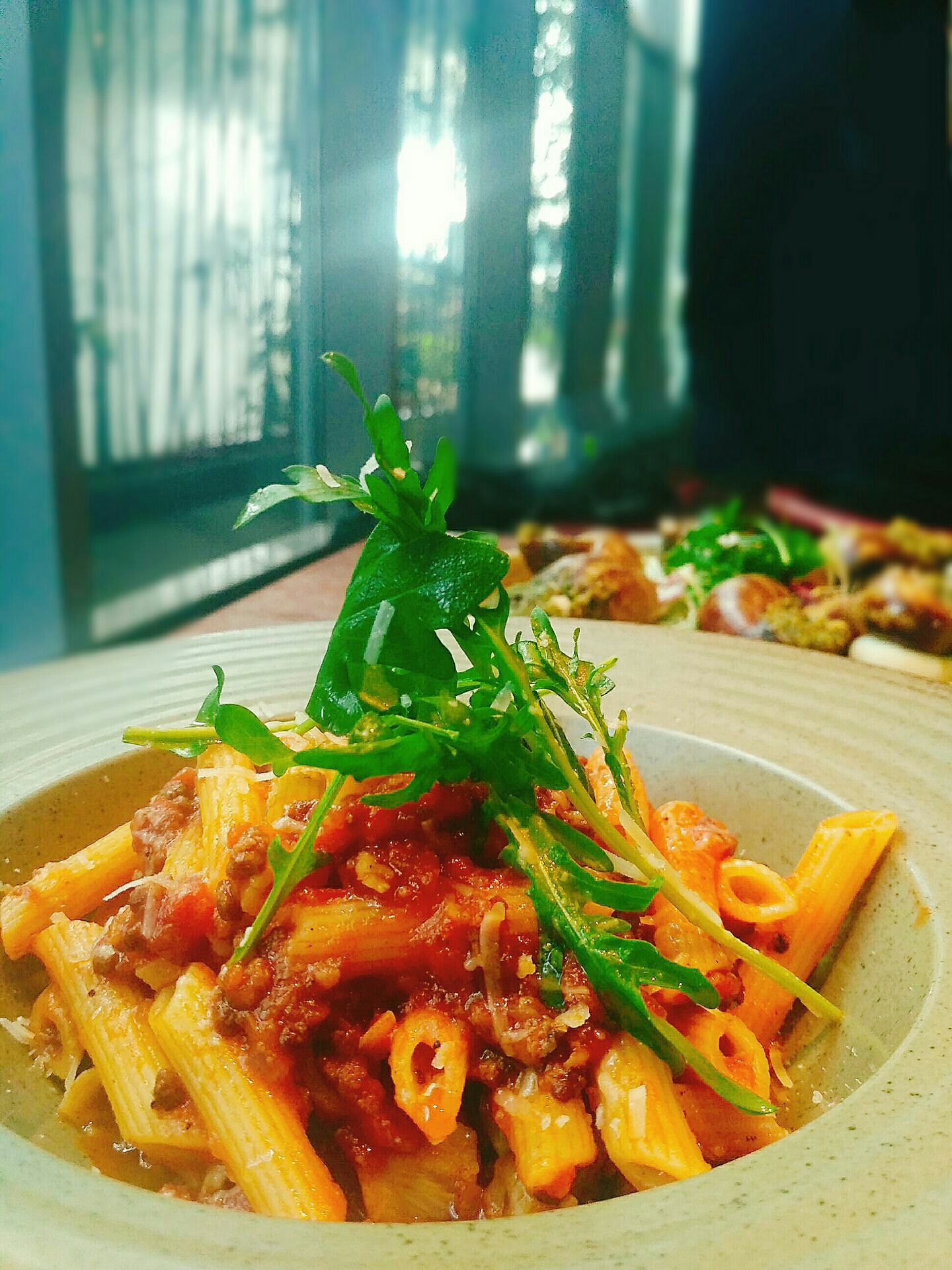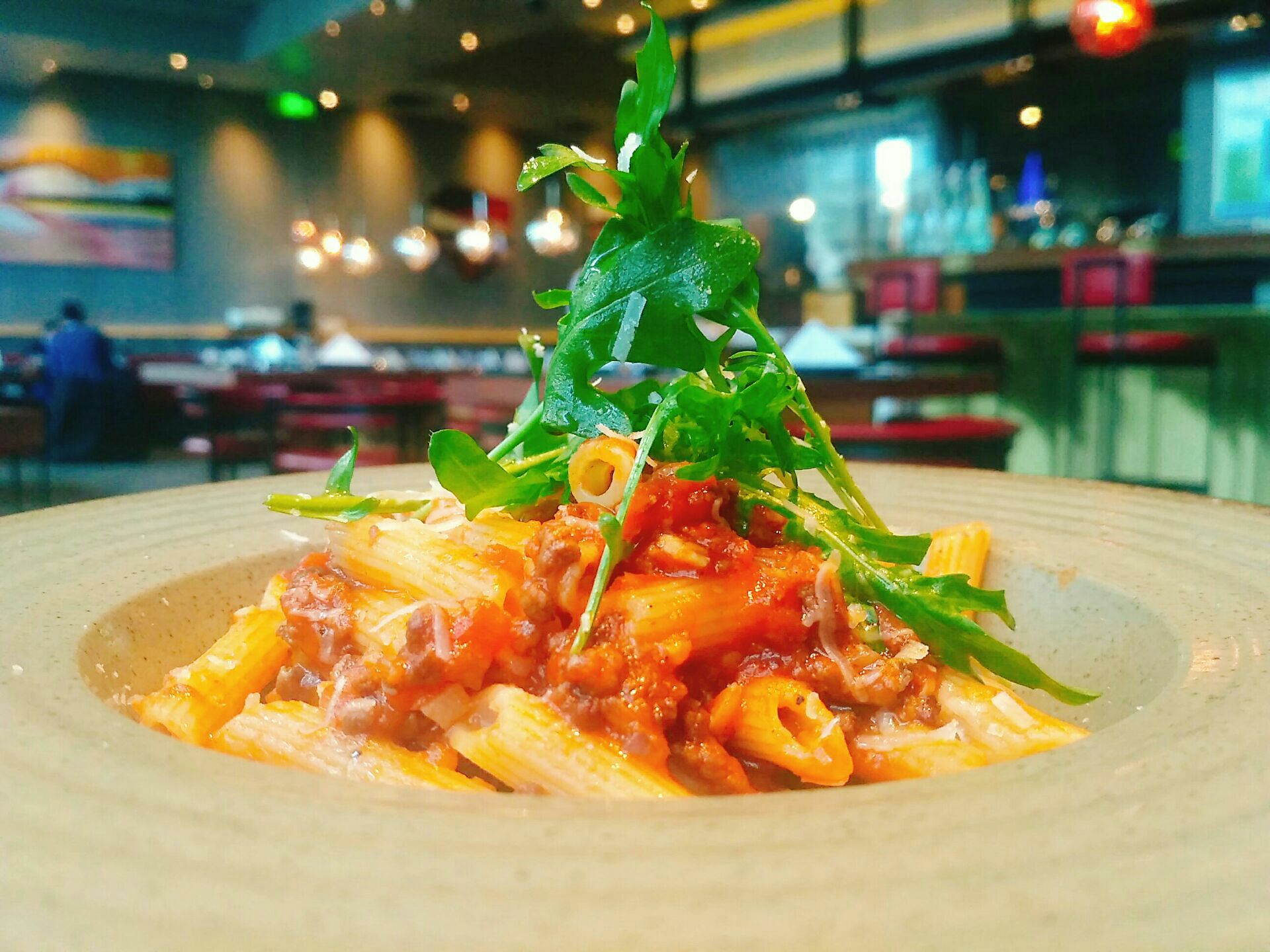 NIUNIUPARK和牛螃蟹(滨江龙湖天街店) 这家西餐厅位置在滨江龙湖天街七楼,天台上,风景如画视野开阔。 环境雅致静谧,服务生态度特别好,彬彬有礼! 【餐前水果】蛮大一份的,火龙果,橙子,西瓜都是很新鲜的 【餐前面包】两块酥脆扎实的硬欧包。 【法式香辣焗蜗牛】用小叉子挑出来,刚好一口一个,味道香浓,肉质鲜嫩Q弹,回味无穷,真的好好吃哦! 【澳洲和牛肉酱意面】肉酱浓郁,肉香四溢,带有番茄酸微辣。面条可以选了通心粉,有弹性有嚼劲。
