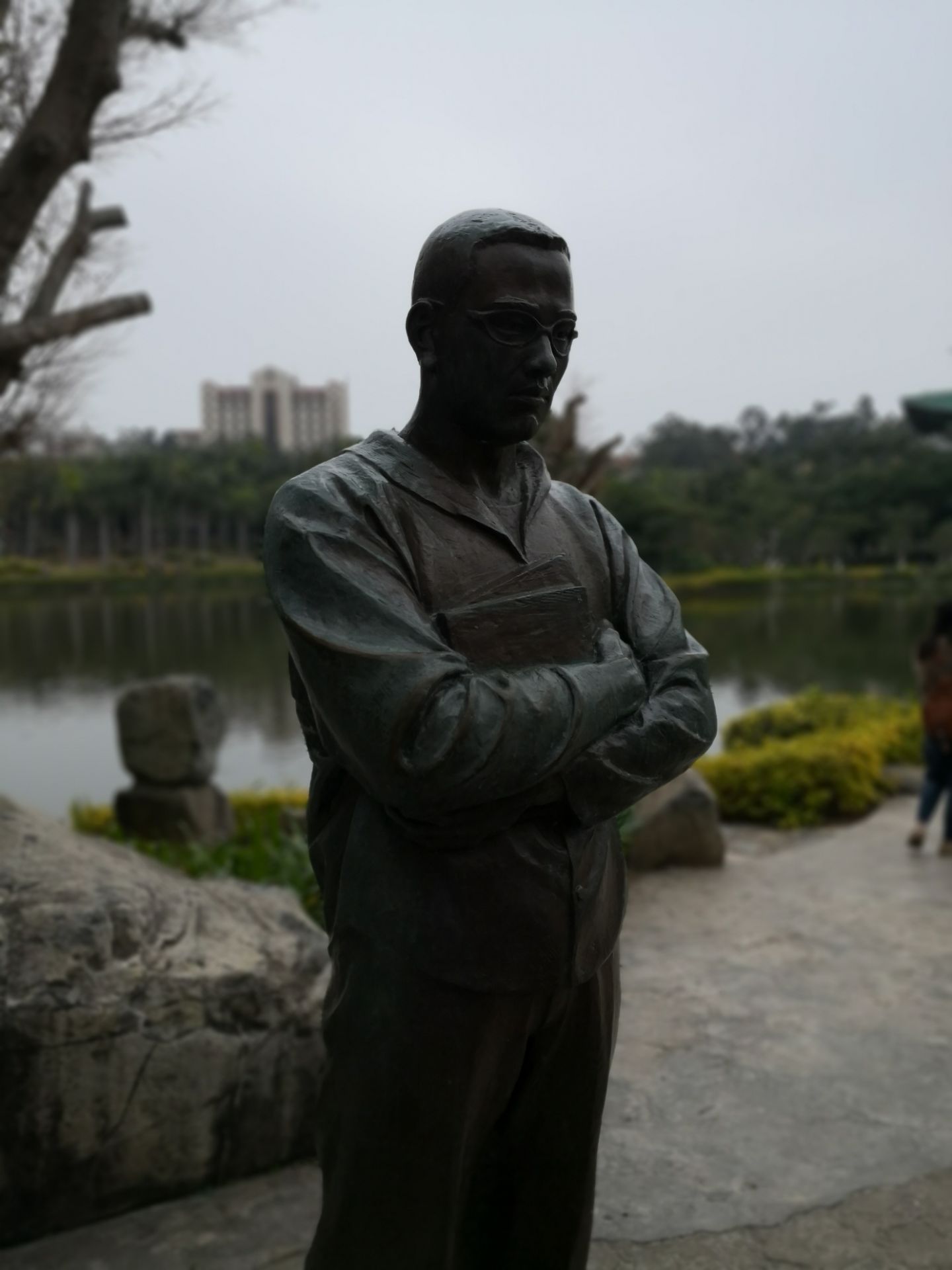 他这个纪念胜地呢,就在厦门大学的这个芙蓉湖里边,嗯,应该准确的讲到芙蓉湖的边上吧,有这么一小块...他这个纪念胜地呢,就在厦门大学的这个芙蓉湖里边,嗯,应该准确的讲到芙蓉湖的边上吧,有这么一小块地方,有他的这个一些头像啊,还要跟青年学生探讨问题的一些东西,感觉还是值得一看吧。