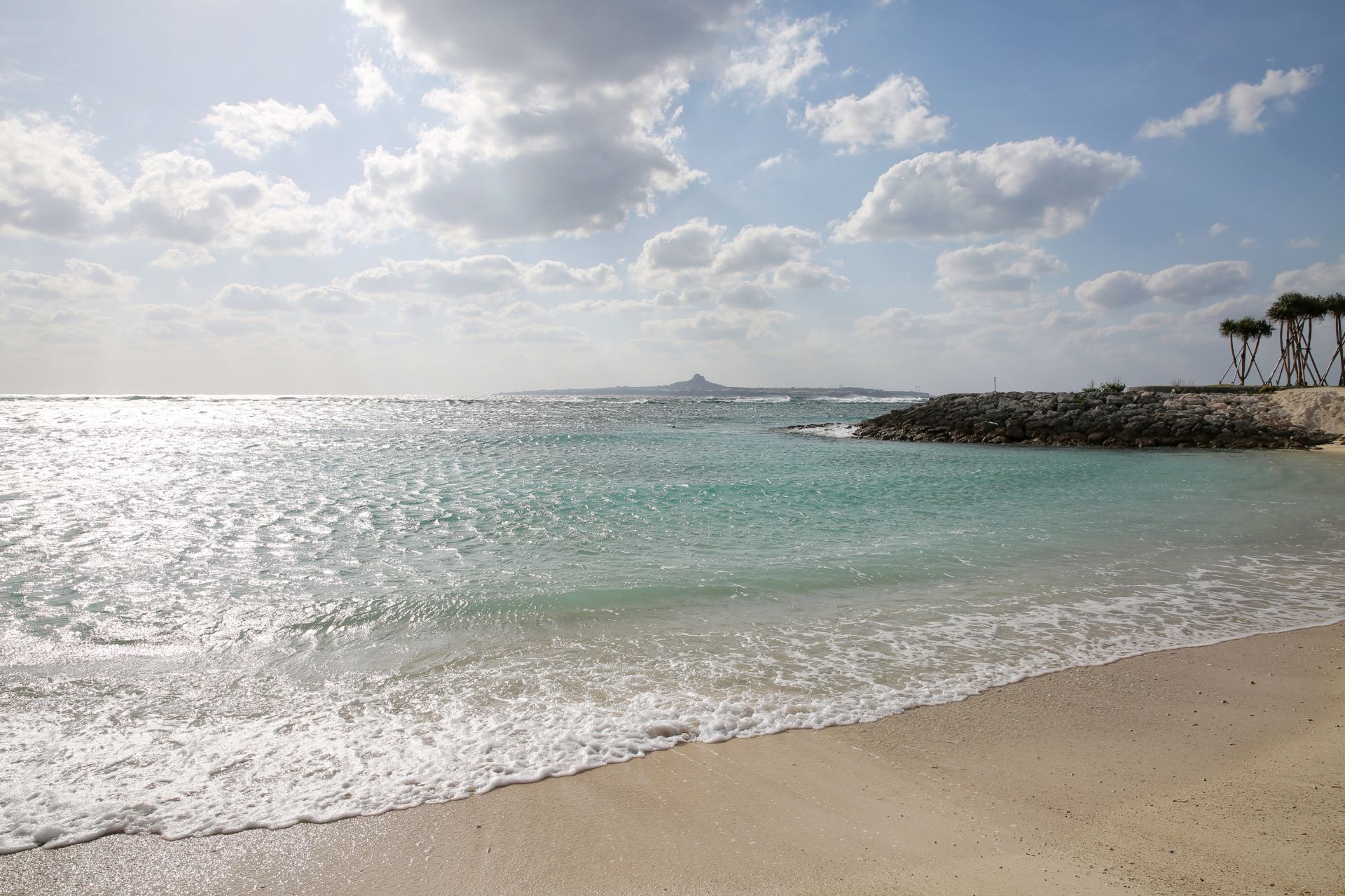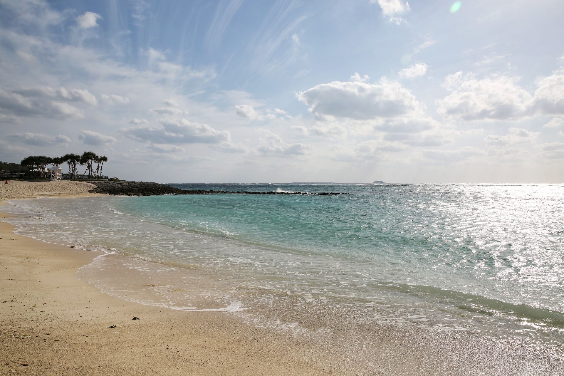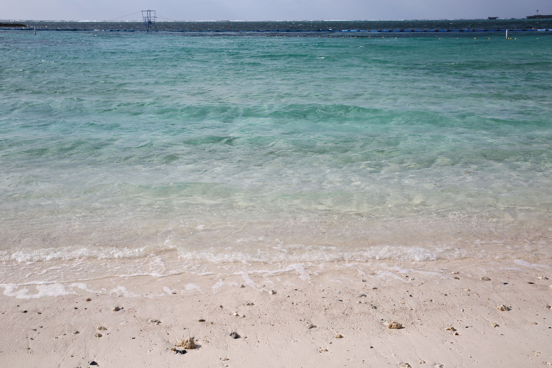 沙子细腻度:★★★ 海水清澈度:★★★★★ 出太阳的时候尤其好看。 海面由远及近变换着颜色。 真的是果冻海。 翡翠海滩属于海洋博。 每年4月1日才开放下海+有救生员巡逻。 然而我们的4月1日,海边风大到可以吹跑眼镜。 冻死了。 娃儿挖个沙全吹进老妈眼里。 站下风口我一定是智商被风吹走了。 海滩有海面围栏的,所以拍照可能会打折扣。 但是小孩喜欢~