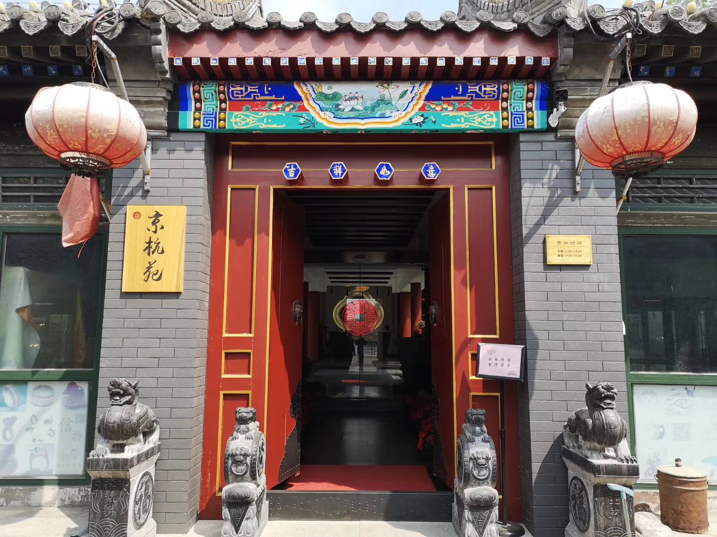 【徒步看北京】藏在漕运码头里的京杭苑 [微笑] 每年都要来通州大运河的漕运码头很多次 但今天刚刚发现在这漕运码头里竟藏着一家古色古香的餐厅。这就是隐藏在两家非物质文化遗产门店之间的京杭苑。 京杭苑看着门脸不大,但是一走进餐厅,你就会被这里浓郁的文化环境所吸引,这里既有北京文化的大气,又有江南文化的精致 行走通州大运河 看繁华尽往,唯有高朋满座美酒珍馐,才不负这跨越千年的良辰美景
