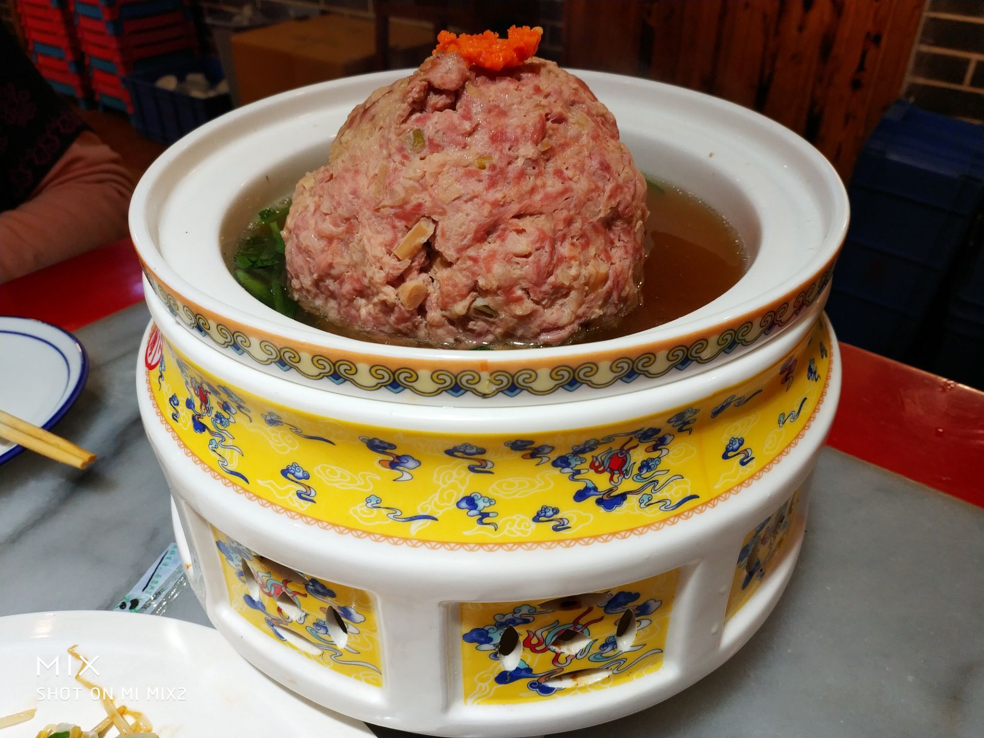 导航过来找到这家品牌餐厅,在其他分店吃过,感觉很不错,有好感。这家也是一样的门面和气氛,有雅间和大堂,台面较大不显得局促感。中式布置风格,大红灯笼、漆红椅子有喜庆感。他家的主打菜狮子头应该必点,需要品尝一下。菜品种类不少,以本地天津菜为主,菜量巨大,真的少点些。还有就是性价比是很不错的,能在老旧小区生存出知名度,靠的就是菜好价低很实惠,老百姓偏爱啊。上菜速度还蛮快,就是有点忘性,点的热饮居然忘了,不提醒恐怕是上不来的。冰柜要通电了,里面饮料不凉客人感受不好,拼的都是都是细节但真的影响体验,另外吃饭口最好不要催单结账,这很不礼貌。其他都还不错,吃的非常满意,给你家点赞!也推荐此店!