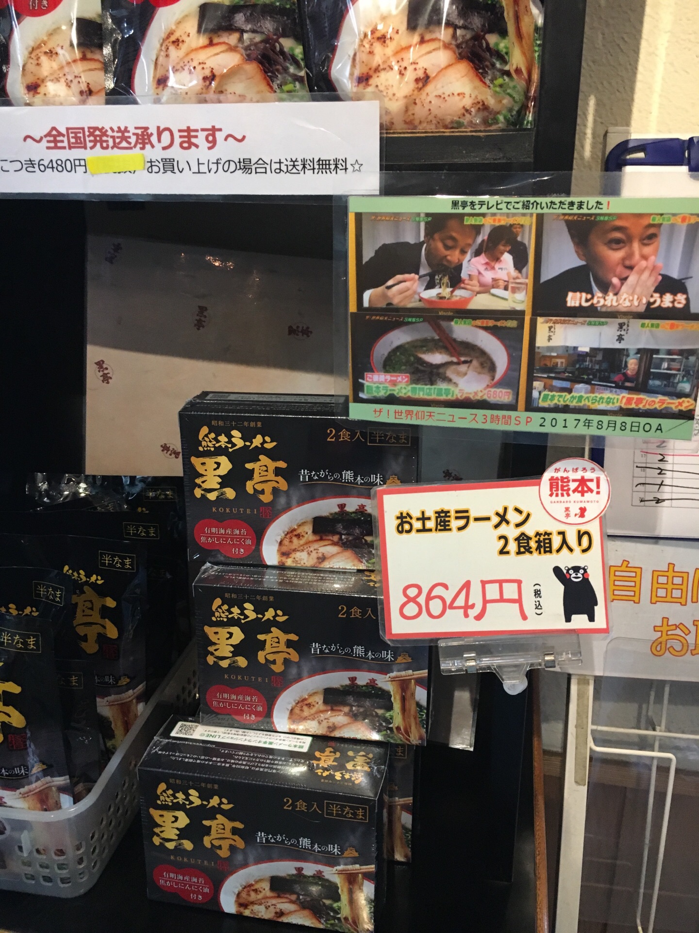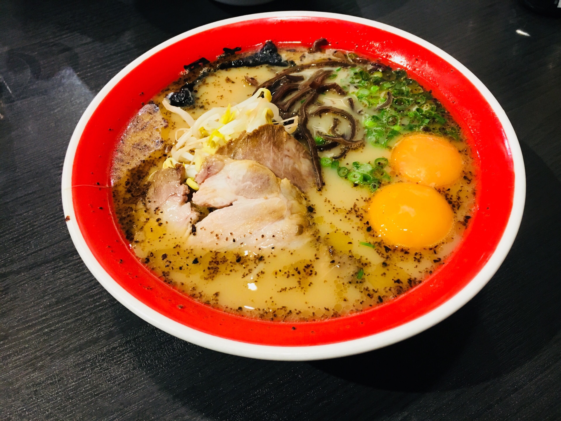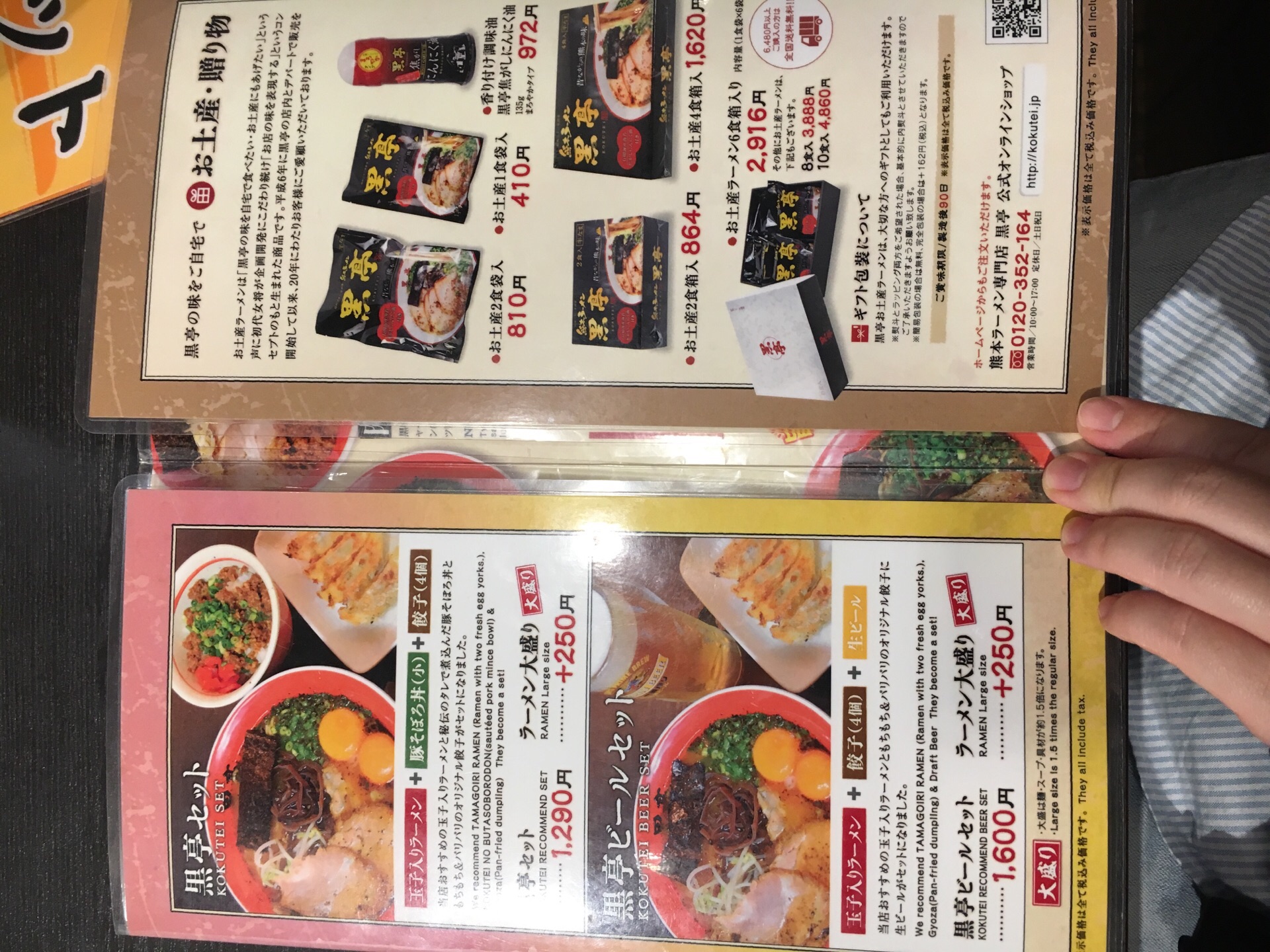 熊本JR站可步行10分钟左右到达 下午4点半过到店里只有两三桌客人 拉面均价1000日元左右一碗,招牌套餐1290日元包含一碗招牌玉子拉面+一碗肉燥饭+4个煎饺 玉子拉面有2个鸡蛋,可以选择生鸡蛋或者半生熟的 煎饺中规中矩,拉面分量可以的,上面飘的黑色的沫沫是黑蒜是黑亭的特色,实际味道不浓郁不影响的 拉面很劲道,汤很浓正确来说是味道浓郁的咸,因为之前几顿一直很咸大概这边特色就是那么咸吧 肉燥饭到是不错的,虽然比较小碗但是肉沫很细很入味好下饭 总之熊本拉面虽然是当地特色但是口味太重不太喜欢