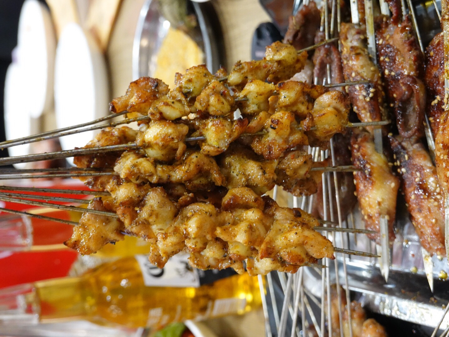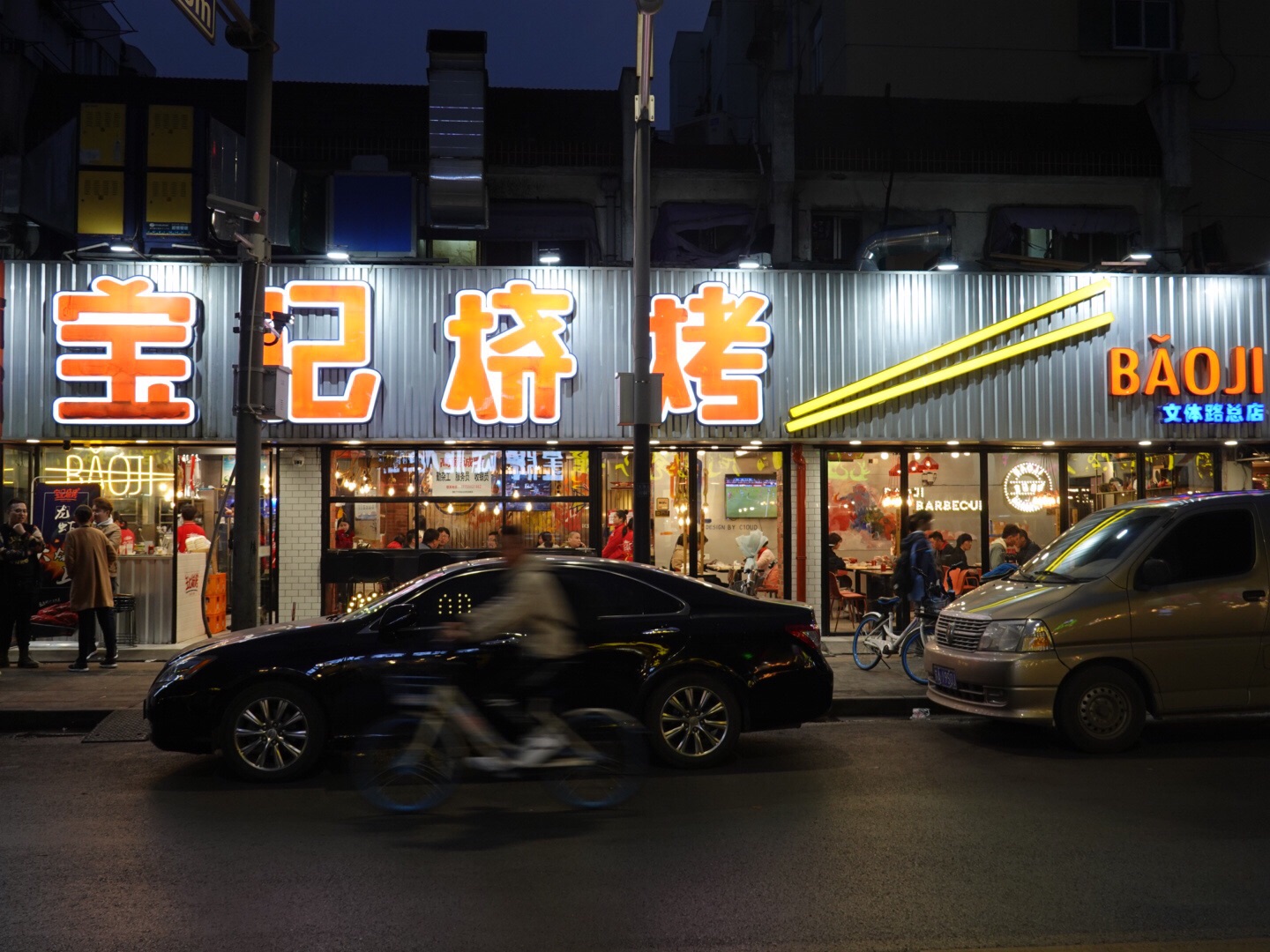 宝记烧烤,骨灰级吃货的最爱! 春渐逝,夏将来,南京的夜晚少不了啤酒 、烧烤、小龙虾。 宝记烧烤,店内爆满的人就已说明其口味好,无需过度的宣传! 营业到深夜,外面依旧坐满人,人声鼎沸,热闹极了! 蜜汁鸡翅,鲜嫩多汁;温莎鸡爪,外脆内软;大羊肉串,肉块超大! 大虾,活虾烤制,肉质细嫩又有韧性;掌中宝,超级Q;蒜泥龙虾不错! 炭烤生蚝,个大肉饱满,烤香蕉真的很黑暗,但异常超好吃,酸甜可口。 花菜被烘干水分,加以佐料别有一番风味;烤吐司,撒满了芝麻,又香甜又柔软。