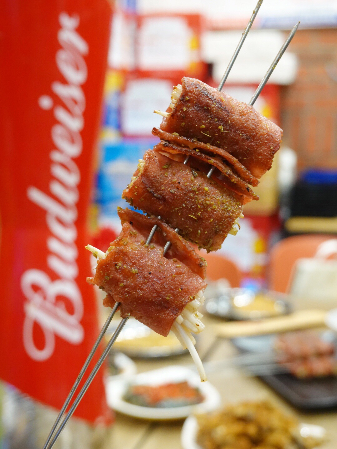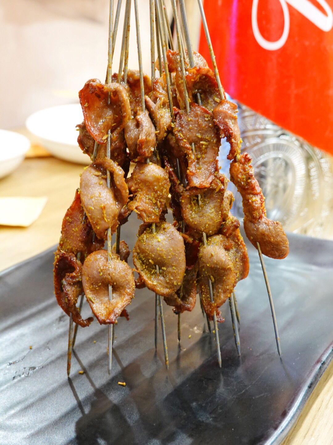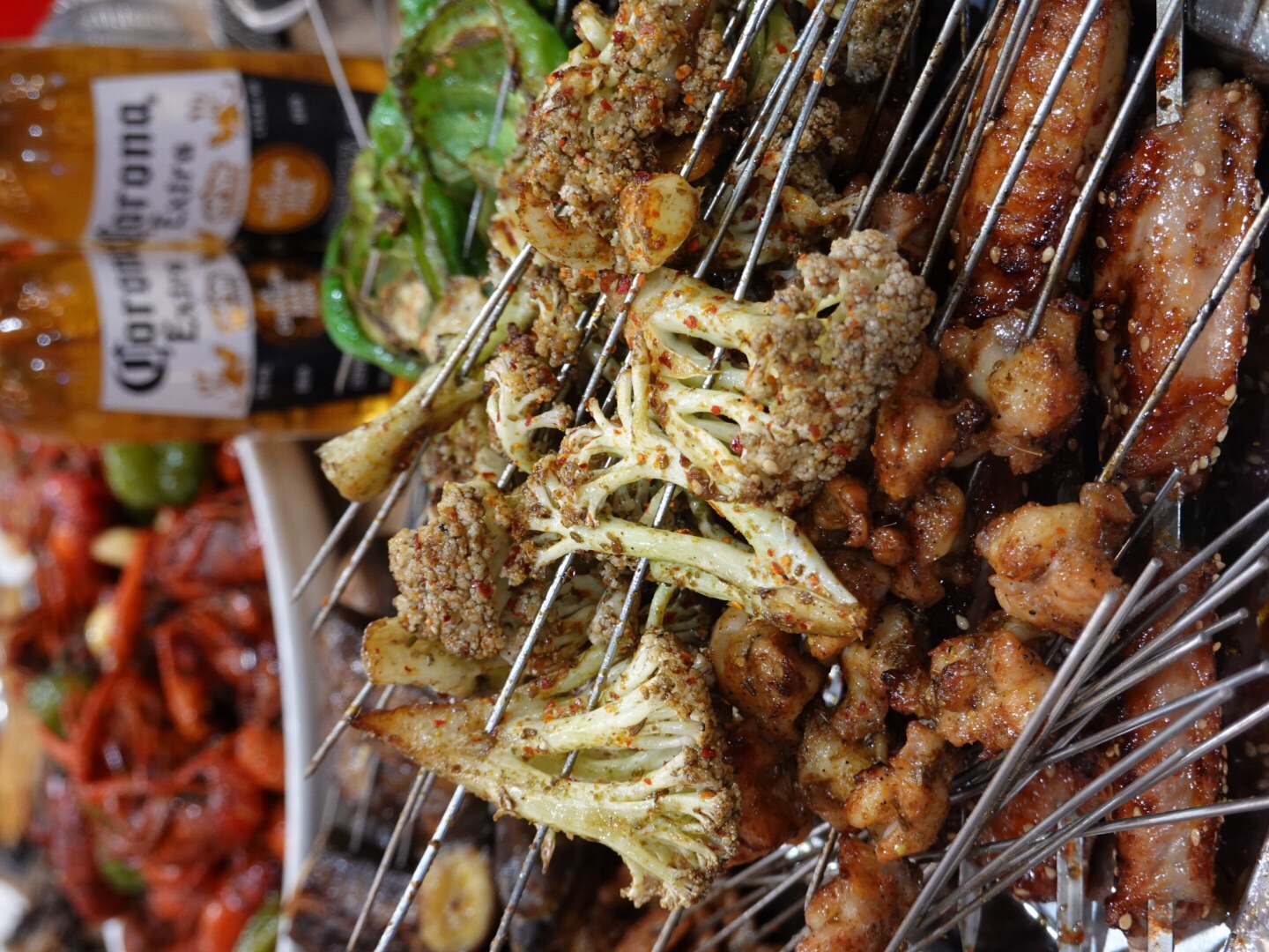 营业到深夜,外面依旧坐满人,人声鼎沸,热闹极了! 大虾,活虾烤制,肉质细嫩又有韧性;掌中宝,超级Q