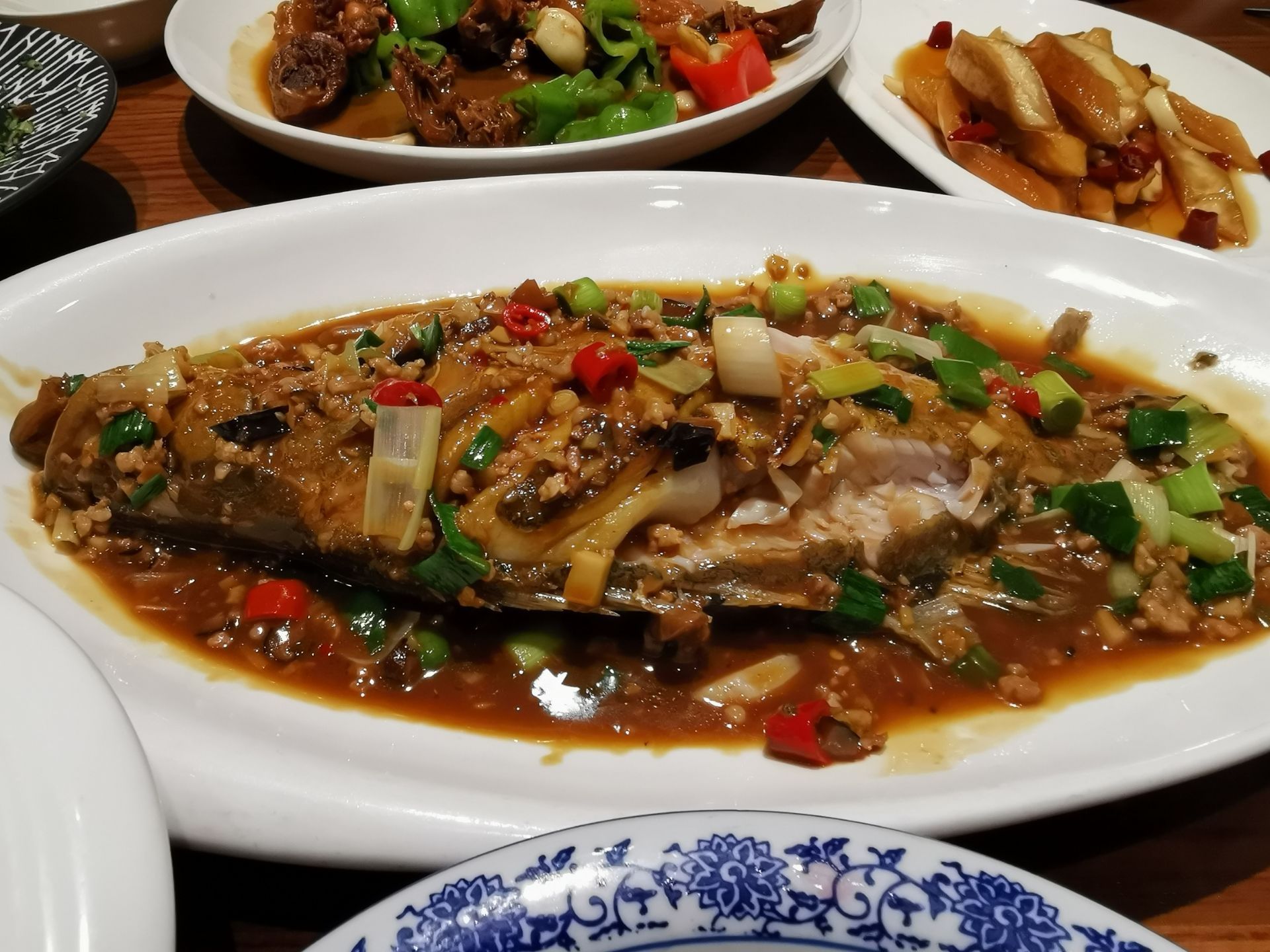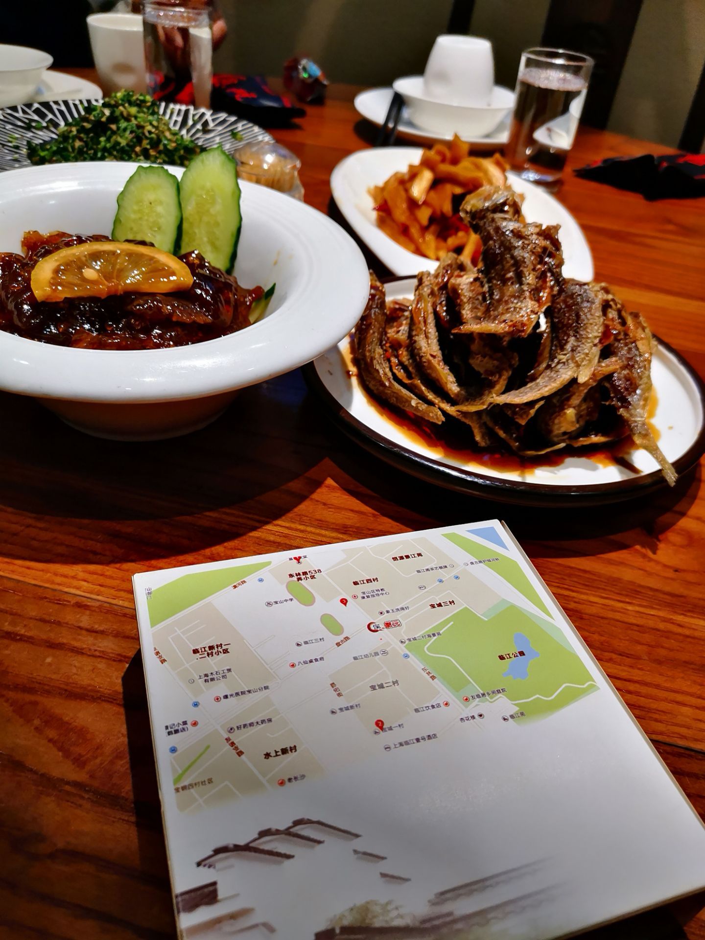 徽沅饭店也是新开的,在旁边是棋牌室,正好配套。上了二楼,饭店场面很宏大。大厅人满为患,包房不好定。是徽菜为主,凉菜也有一些是本帮特色的,是来到上海口味做了一些改良。它家特色是臭桂鱼,是从皖南运来的,鱼很新鲜肉很弹性十足。可能是供应量太大,腌制时间稍显不足,臭鳜鱼的肉一块一块的栗子状好喜欢。毛豆腐有铁板煎,也有油炸,感觉还是油炸的更香。皖南土鸡红烧确实好吃,是一只小公鸡,不肥不柴,好久没有吃到了。由于靠近东林路停车位有点紧张,可以对应的马路对面的小区