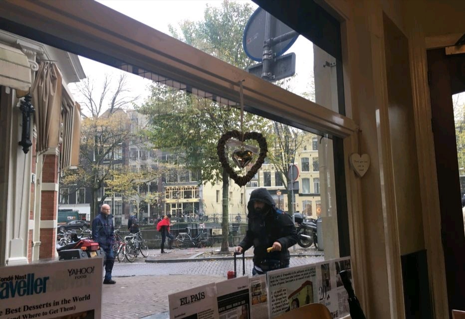 咖啡配上一个小面包,我吃的比较快,老外喜欢一边吃一遍看看报纸,喝个咖啡,阿姆斯特丹是一个慢节奏的城市在这里吃了一个早餐,咖啡配上一个小面包,我吃的比较快,老外喜欢一边吃一遍看看报纸,喝个咖啡,阿姆斯特丹是一个慢节奏的城市。