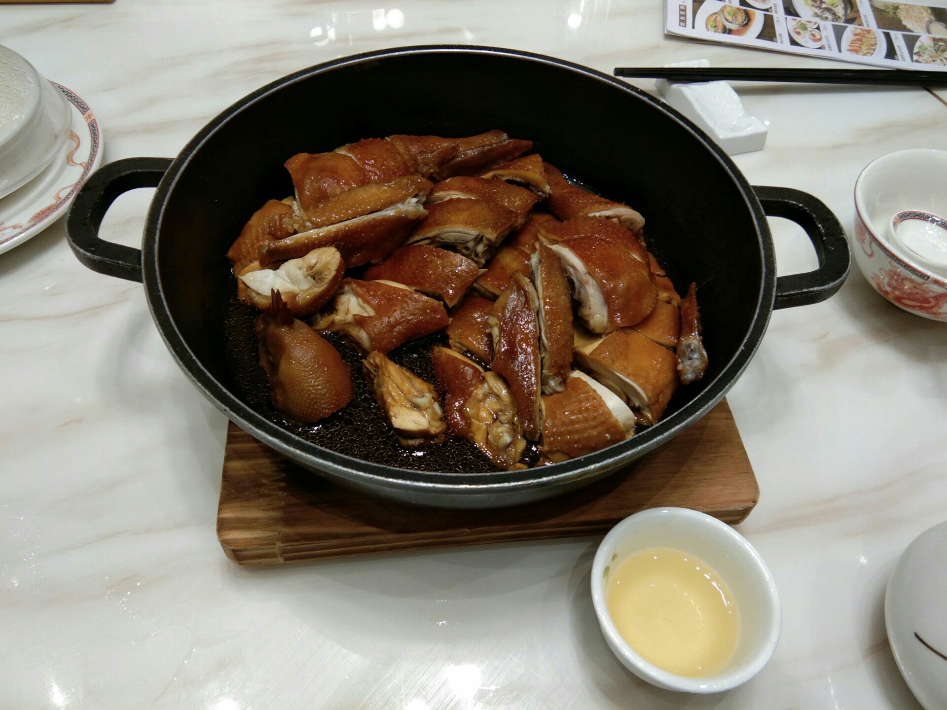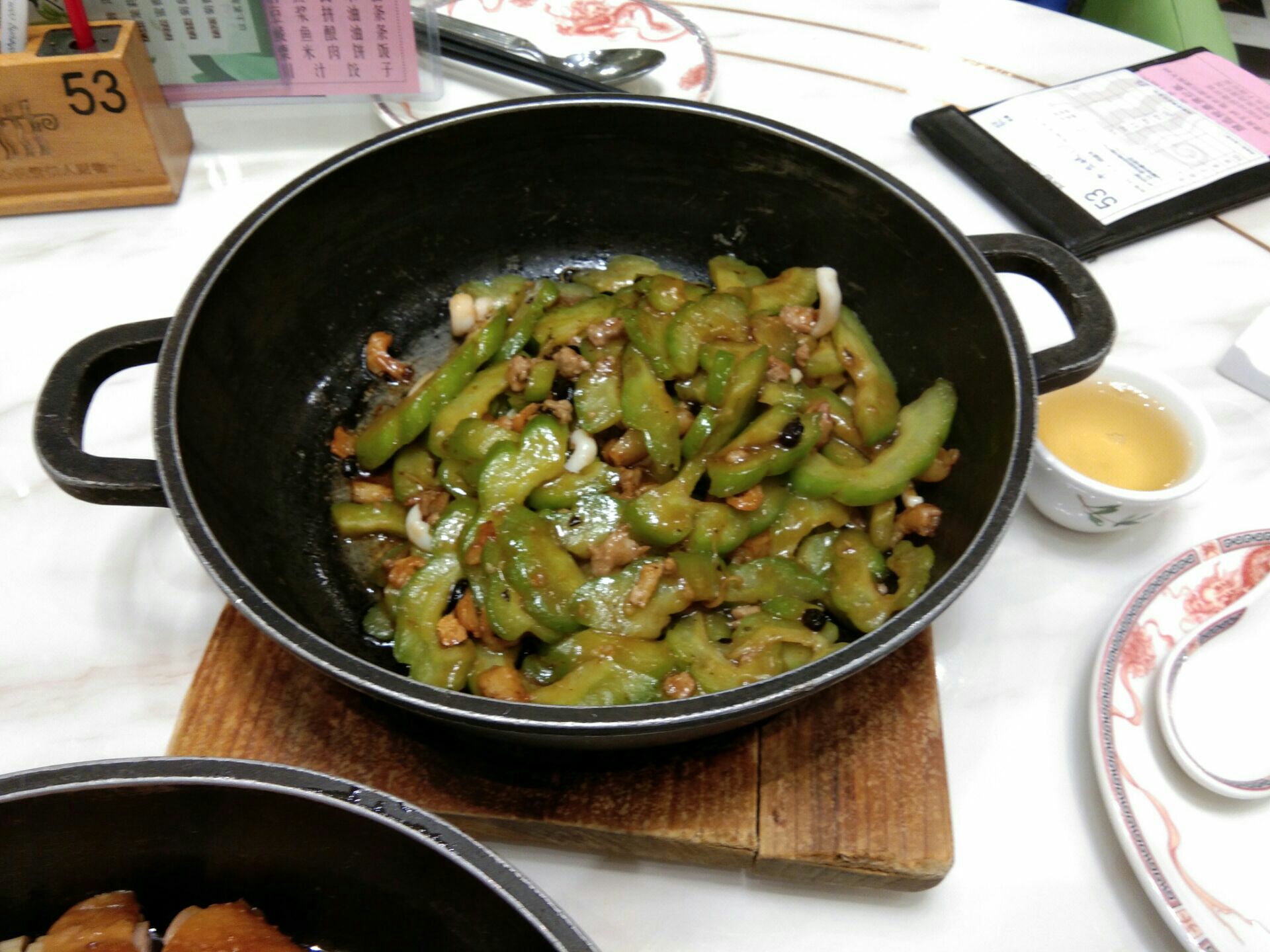 第N次勇闯土豪餐厅――大都是意想不到的比大排档更优惠!当然也是有备而来。五星级高档连锁正宗粤菜餐厅――稻香酒家,团购特价38元购100代金券!可恶仅限晚市,否则午餐路过时就想吃,不用特意坐公交回来。特价菜只能点32元一只豉油鸡,其余需正价,啫啫海味凉瓜(鱿鱼丝虾米)48元,枣泥糕11元,米饭5元,终于凑够101元!茶位5元另付。等于自费49元!味道挺不错的,份量也比较足。服务员态度热情。