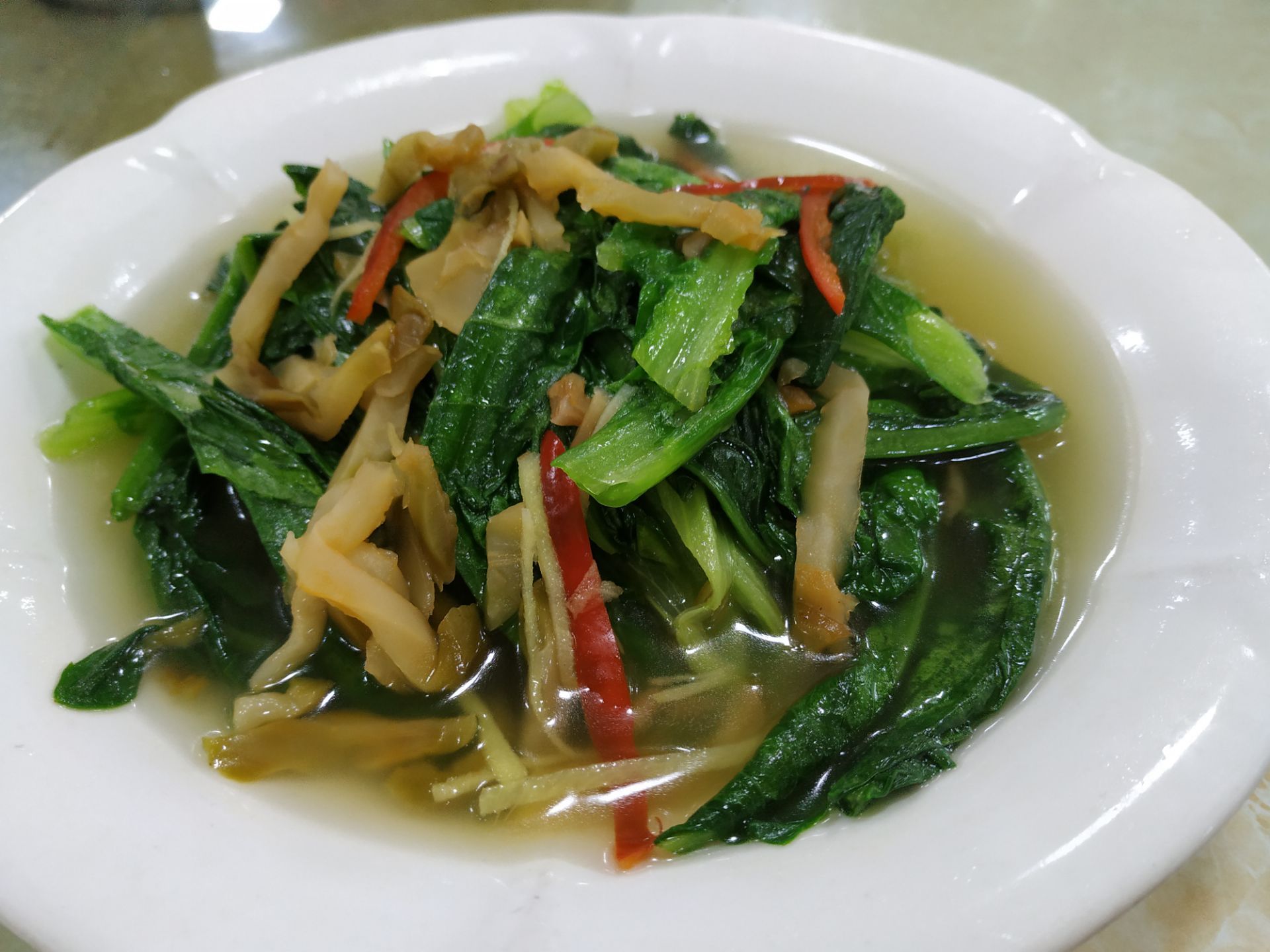 盐水时蔬,是油麦菜加了点榨菜和红椒丝,菜新鲜,好吃。【2019-04-15】午餐:龙泉山庄