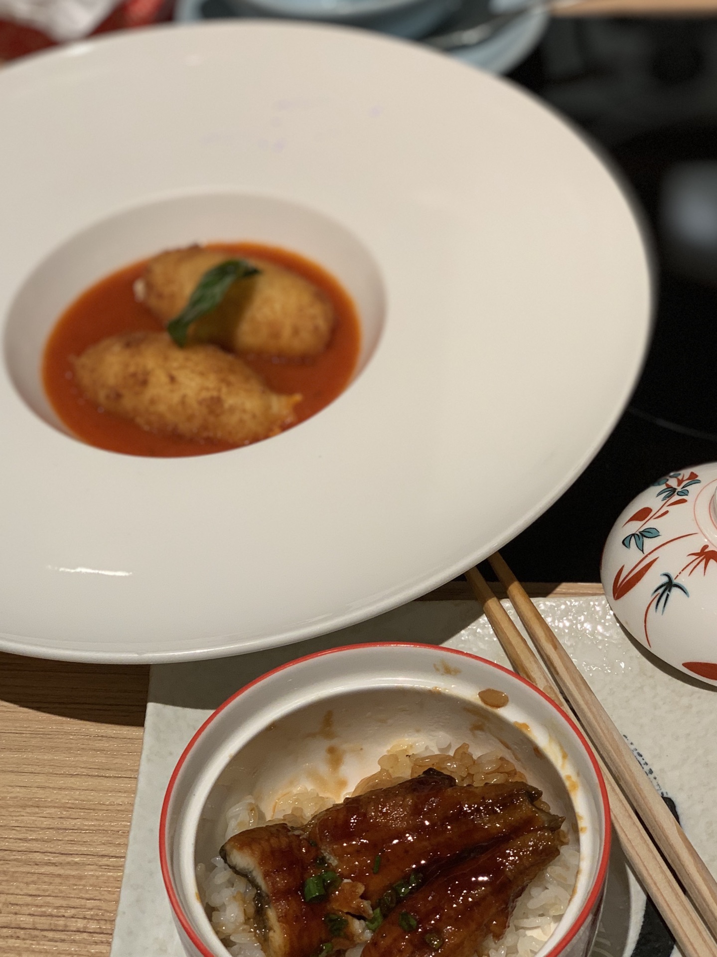 从最初一人食的寂寞 到现在享受一人“食光” 孤独有时候是种狂欢 华中路562号 绿地缤纷城1F 一人也要好好吃饭呀[羞嗒嗒] 鳗鱼饭单人套餐 同样享有刺身、雪蟹制成的&炖蛋[笑哈哈] 餐后一定要吃双拼北海道